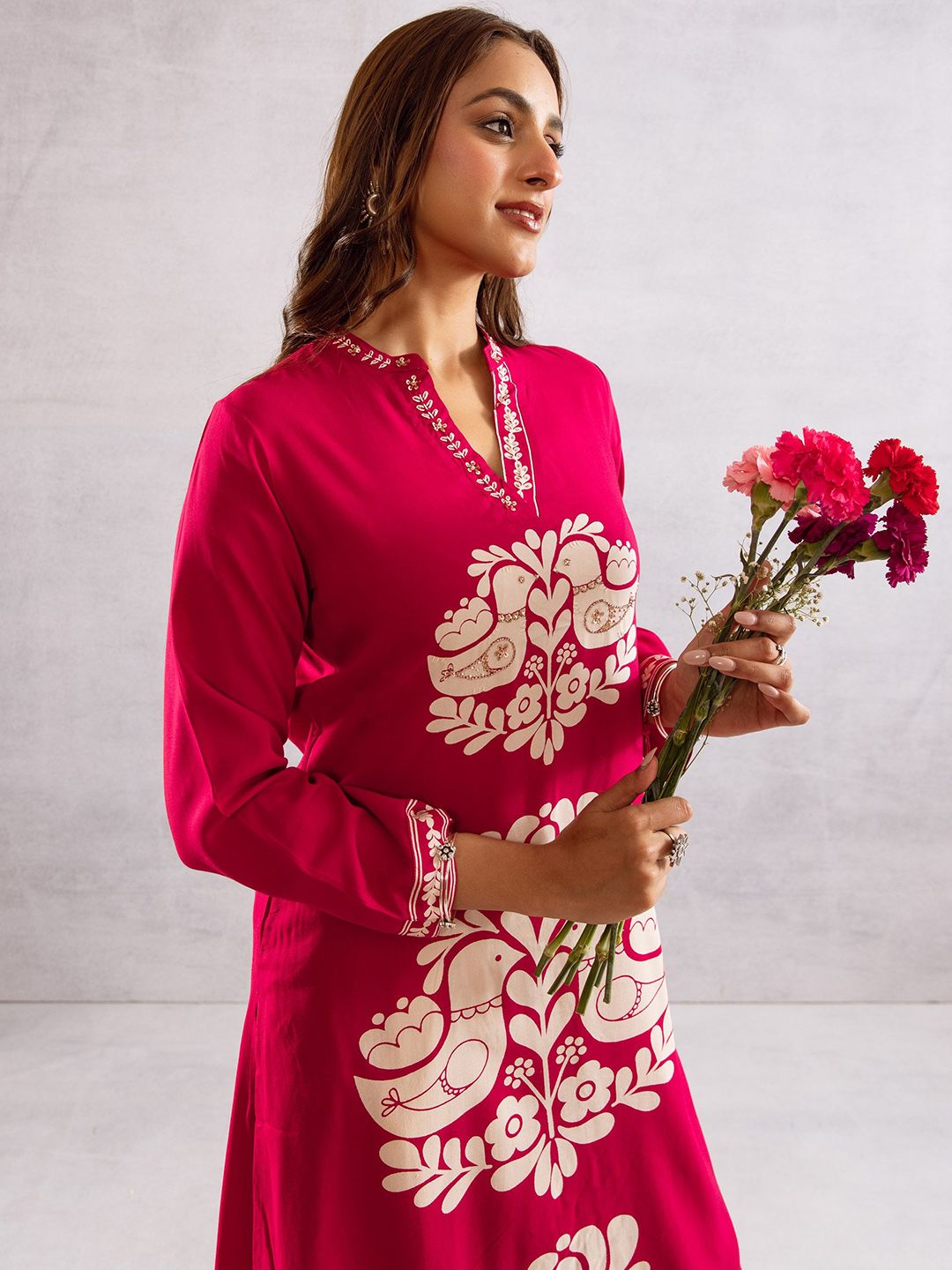 Buy this stylish Sangria Ethnic Motifs Printed Mandarin Collar Straight Kurta With Palazzos at Marincart Nepal. This product offers great quality and value. Perfect for those looking for the latest trends in fashion. Get yours now at unbeatable prices.