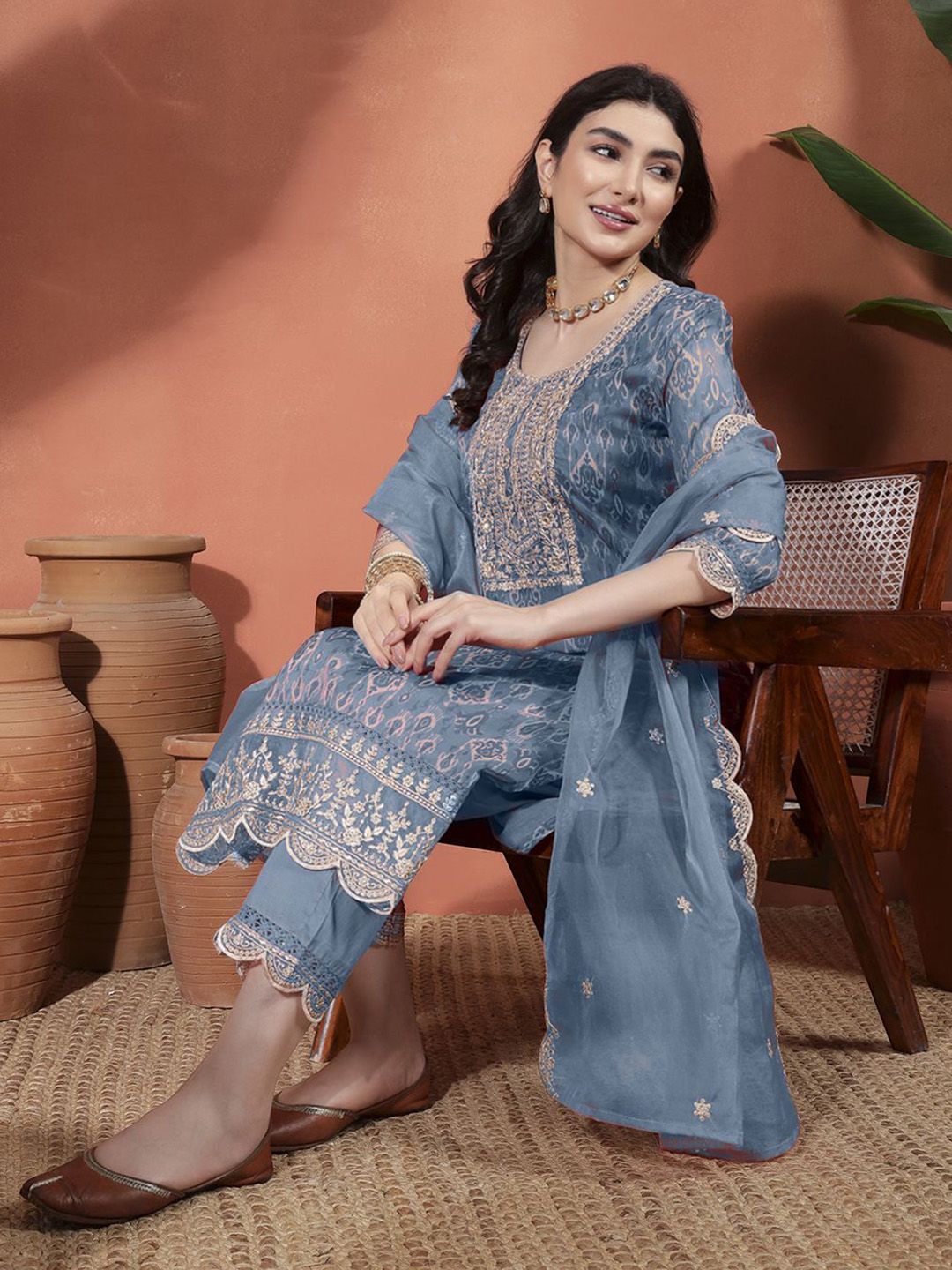 Buy this stylish Sangria Ethnic Motifs Printed Round Neck Sequinned Straight Kurta With Trousers & Dupatta at Marincart Nepal. This product offers great quality and value. Perfect for those looking for the latest trends in fashion. Get yours now at unbeatable prices.