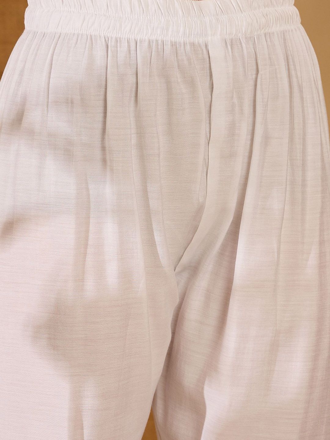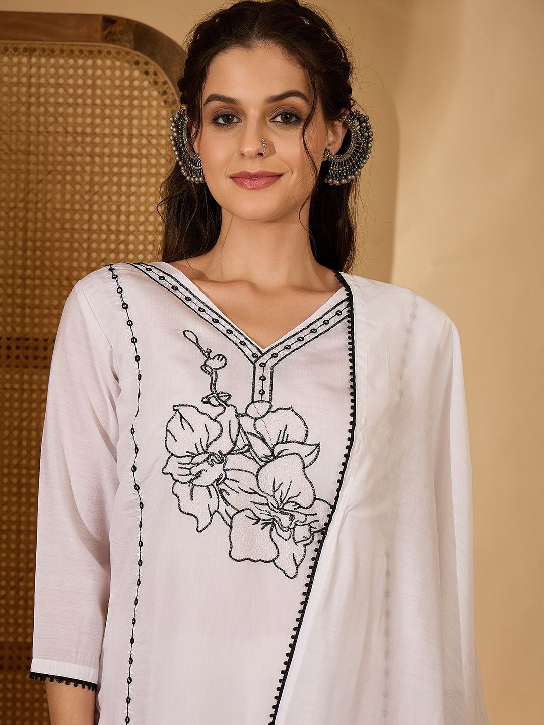 Sangria Floral Embroidered Thread Work Pure Silk Straight Kurta & Trousers With Dupatta