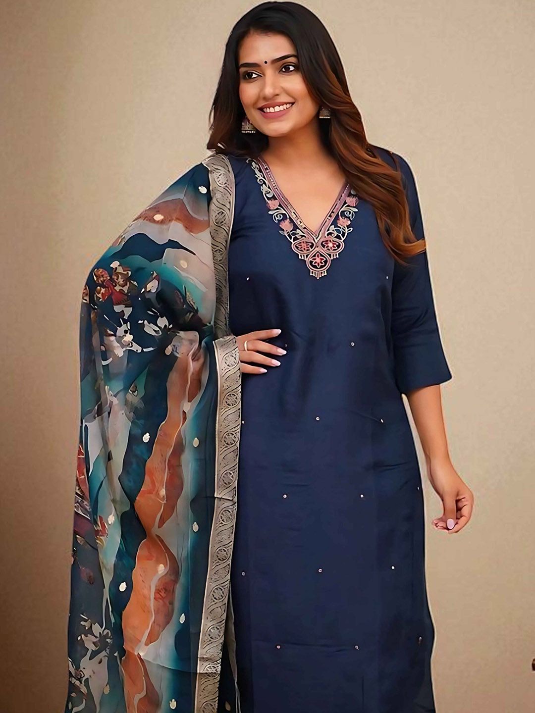 Buy this stylish Sangria Floral Embroidered Thread Work V Neck Straight Kurta With Trouser And Dupatta at Marincart Nepal. This product offers great quality and value. Perfect for those looking for the latest trends in fashion. Get yours now at unbeatable prices.