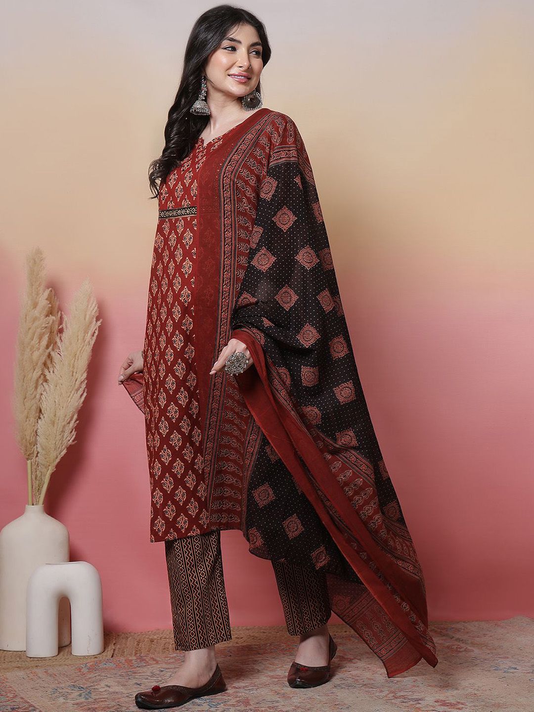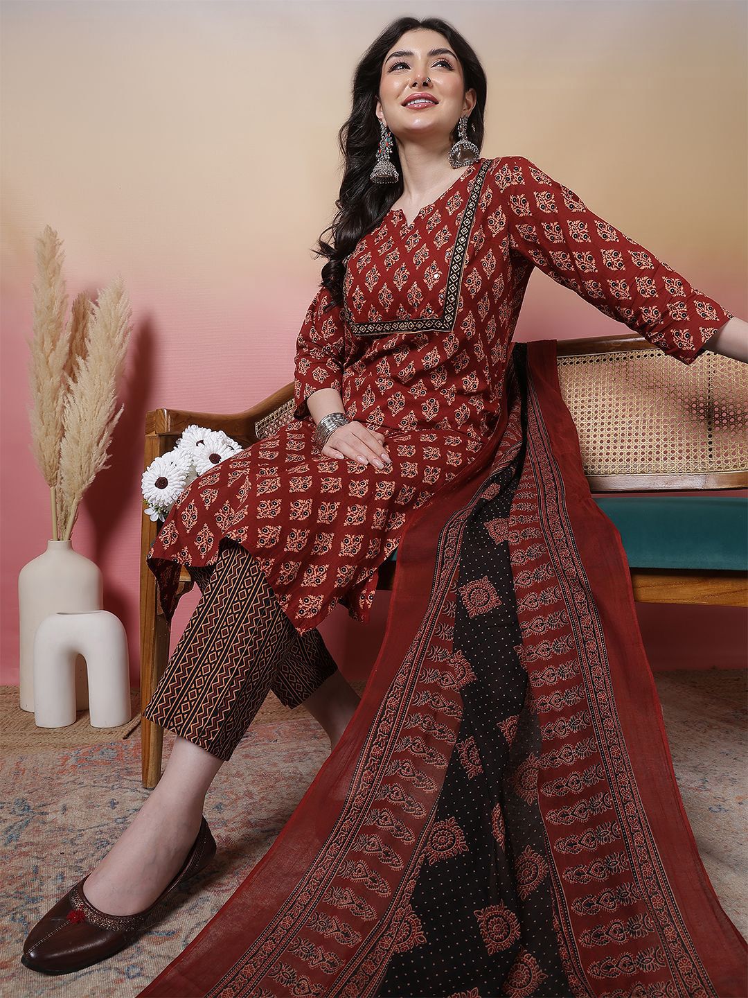 Buy this stylish Sangria Floral Printed Notch Neck Pure Cotton Straight Kurta With Trouser & Dupatta at Marincart Nepal. This product offers great quality and value. Perfect for those looking for the latest trends in fashion. Get yours now at unbeatable prices.