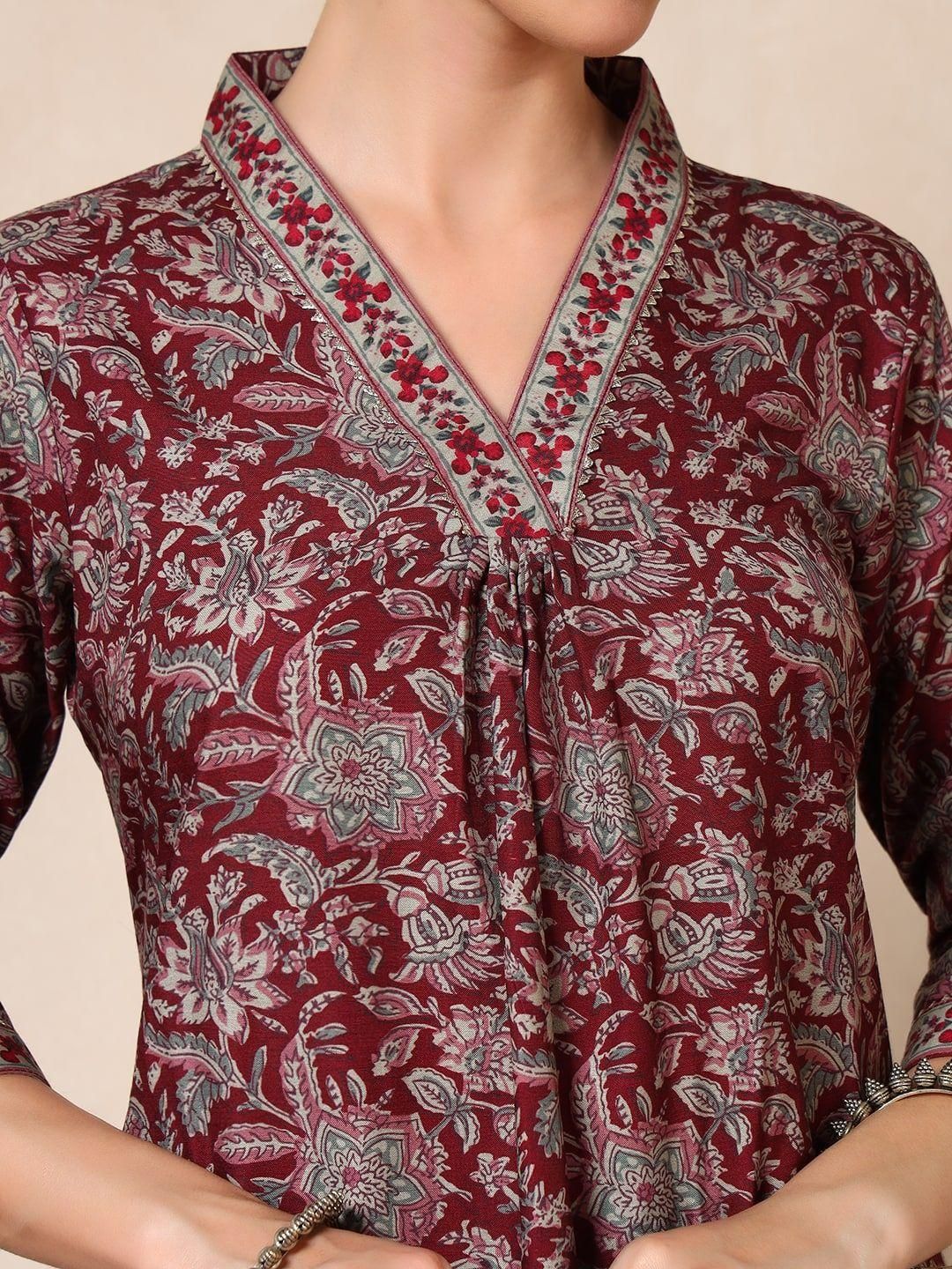 Buy this stylish Sangria Floral Printed Pleated Thread Work Straight Kurta with Trouser & Dupatta at Marincart Nepal. This product offers great quality and value. Perfect for those looking for the latest trends in fashion. Get yours now at unbeatable prices.