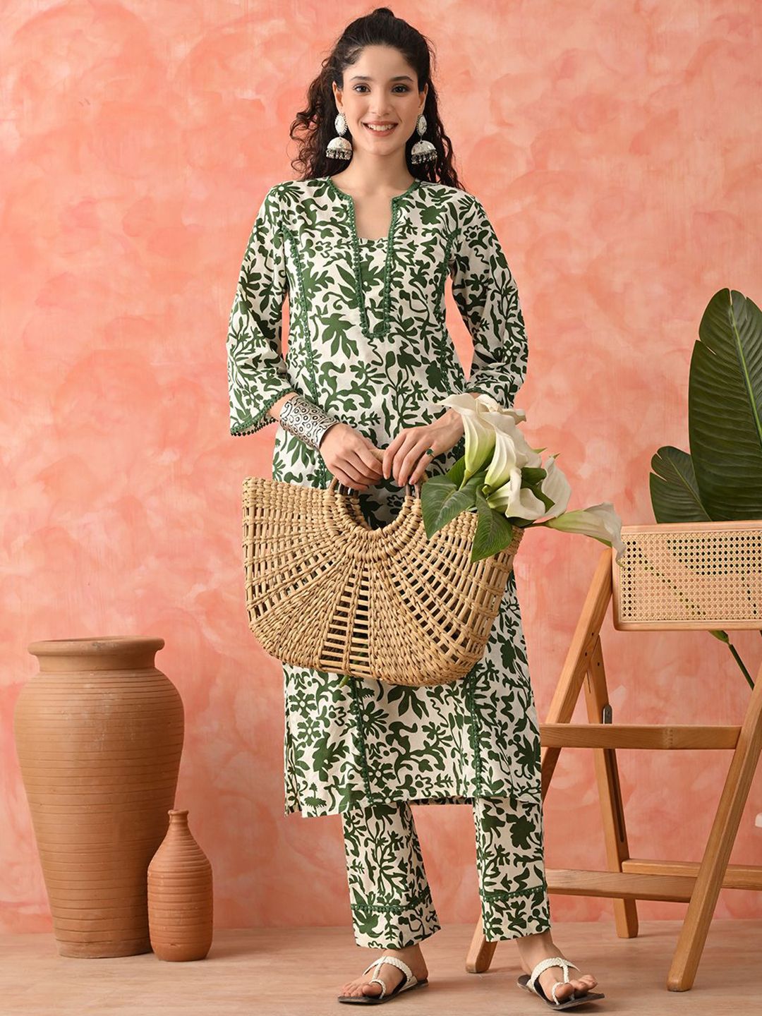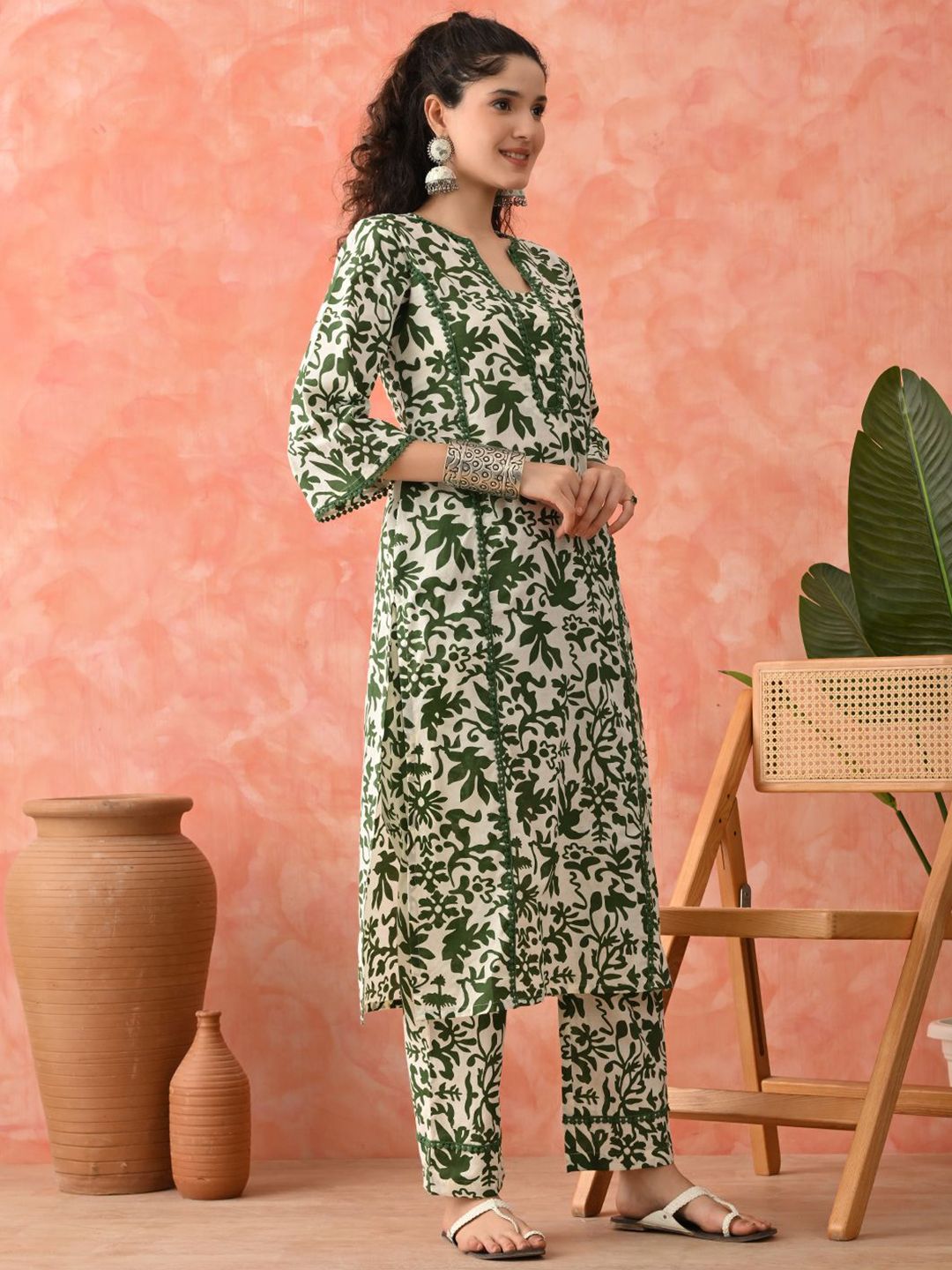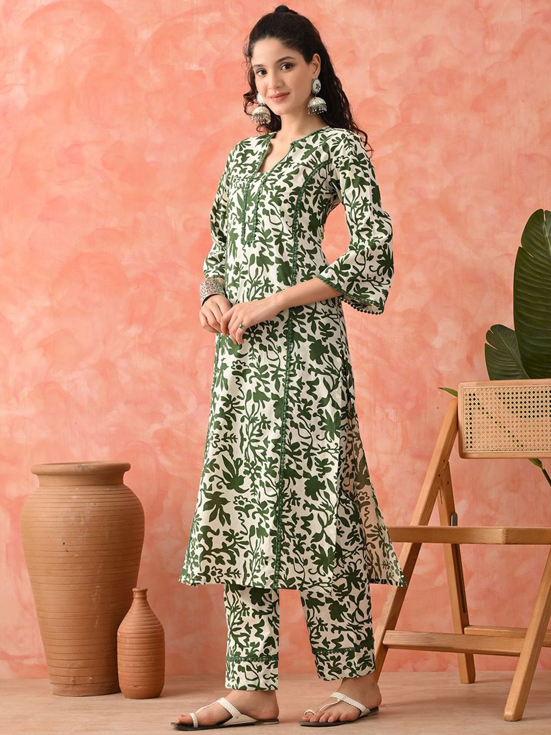 Sangria Floral Printed Pure Cotton A-Line Kurta & Palazzo