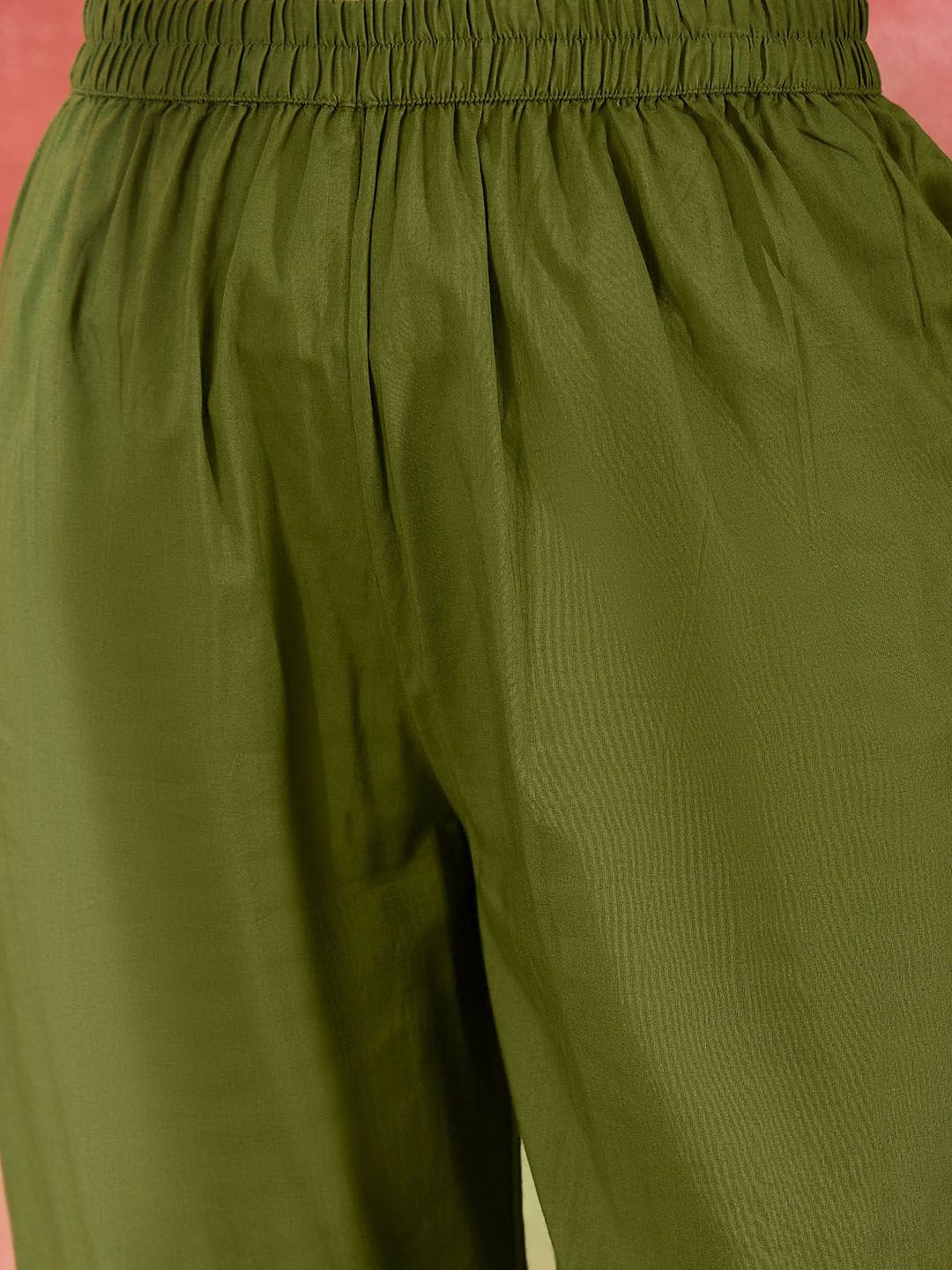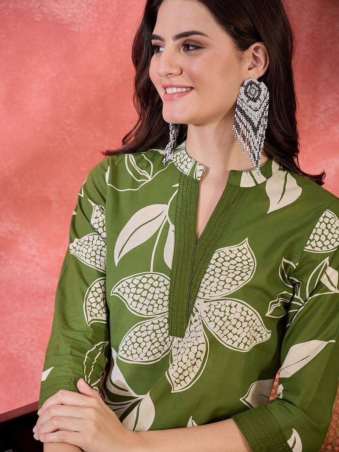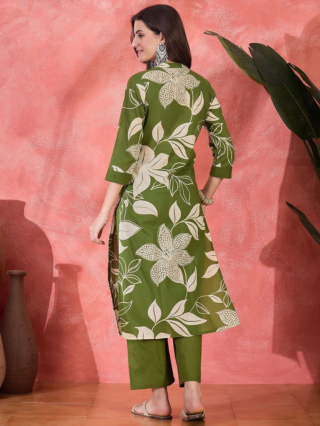 Sangria Floral Printed Pure Cotton Mandarin Collar Straight Kurta & Trousers