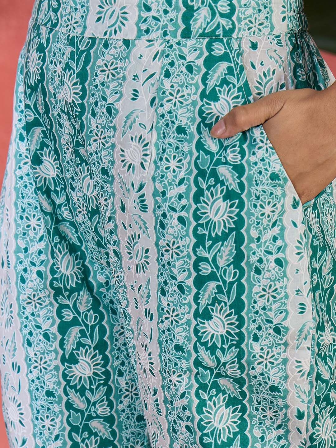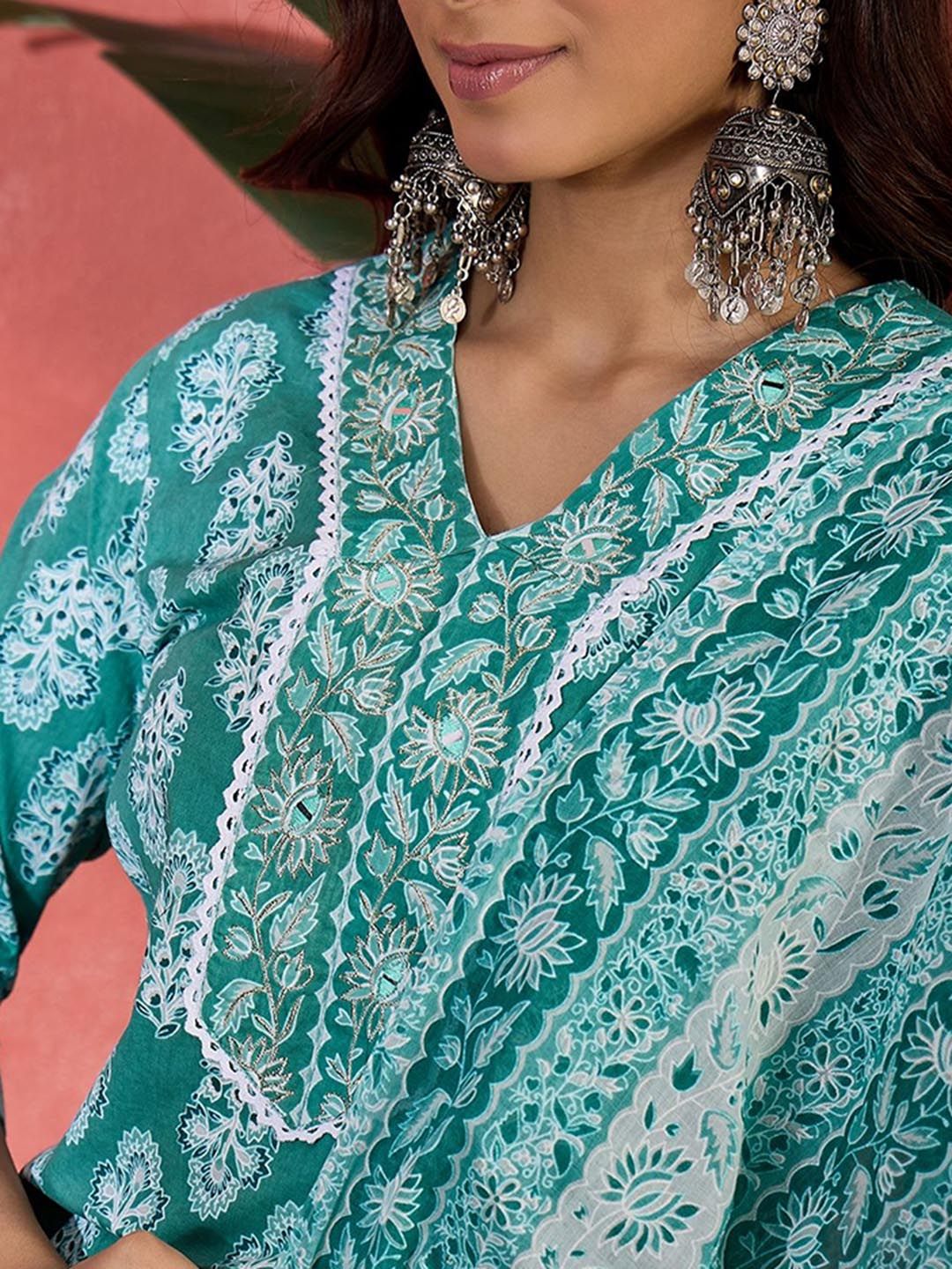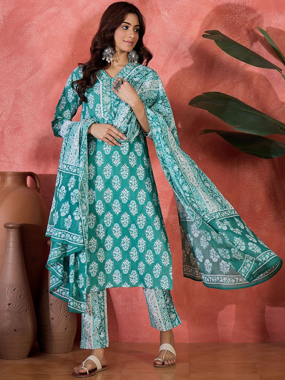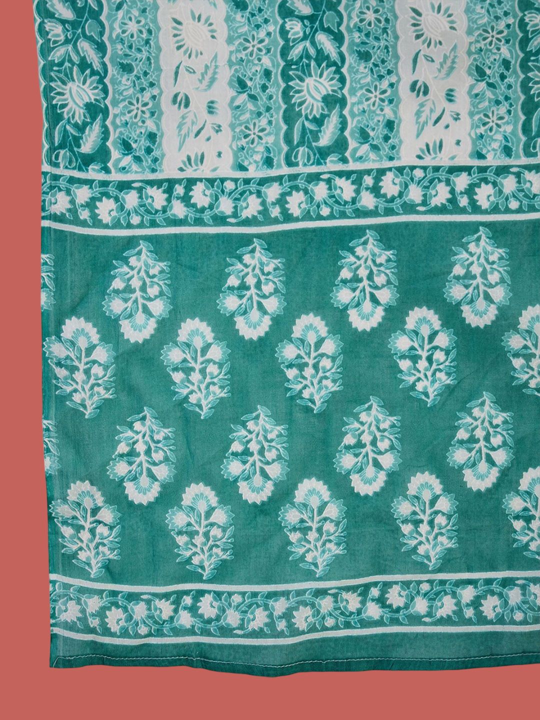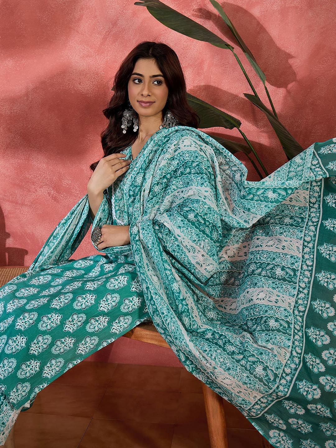 Sangria Floral Printed Pure Cotton Straight Kurta With Trousers & Dupatta
