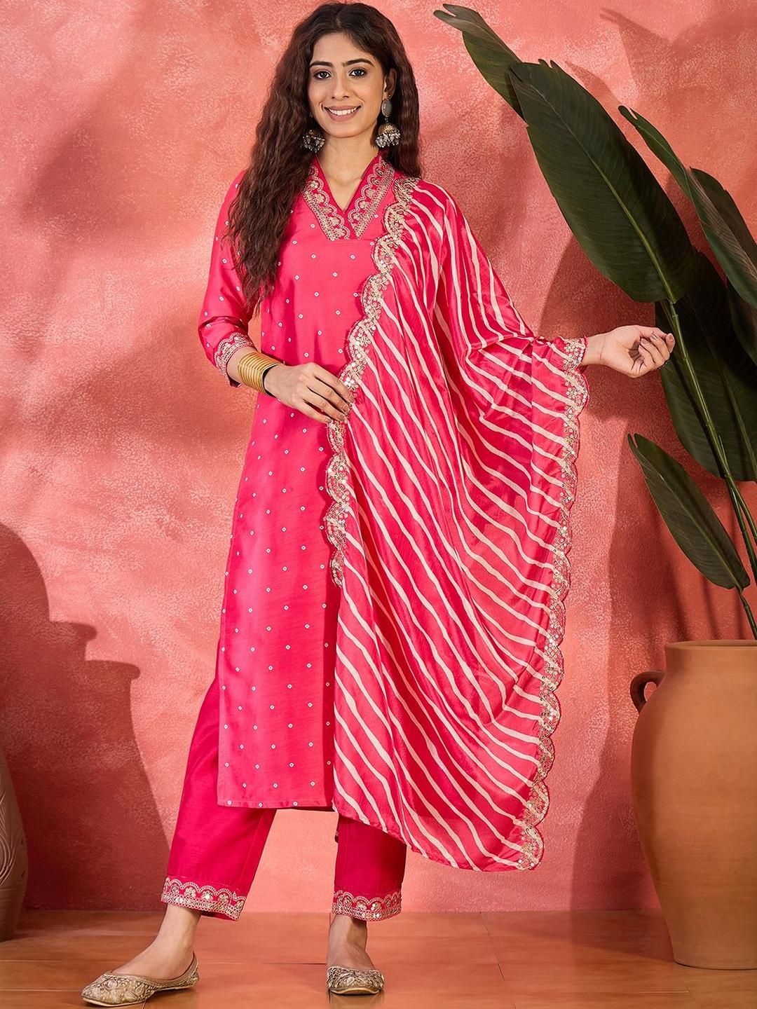 Buy this stylish Sangria Geometric Printed V-Neck Zari Straight Kurta With Trouser And Dupatta at Marincart Nepal. This product offers great quality and value. Perfect for those looking for the latest trends in fashion. Get yours now at unbeatable prices.