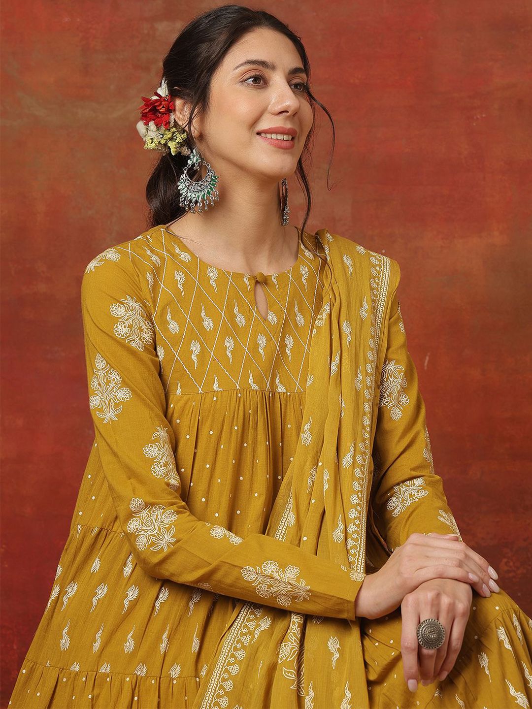 Buy this stylish Sangria Printed Pure Cotton Key Hole-Neck Anarkali Kurta & Trousers With Dupatta at Marincart Nepal. This product offers great quality and value. Perfect for those looking for the latest trends in fashion. Get yours now at unbeatable prices.