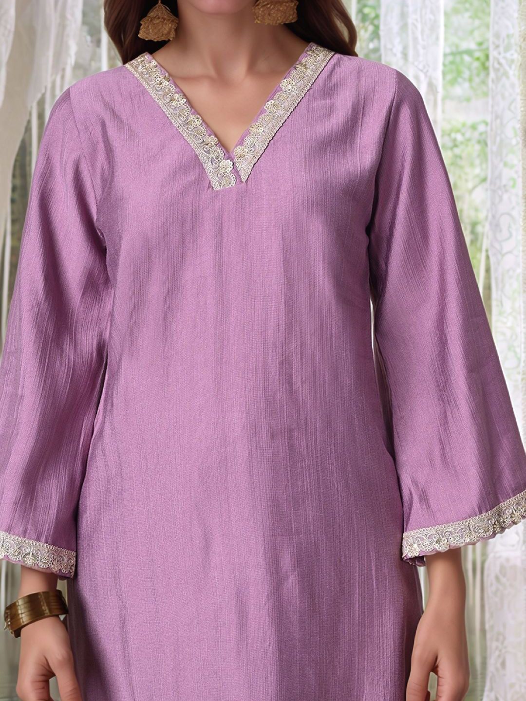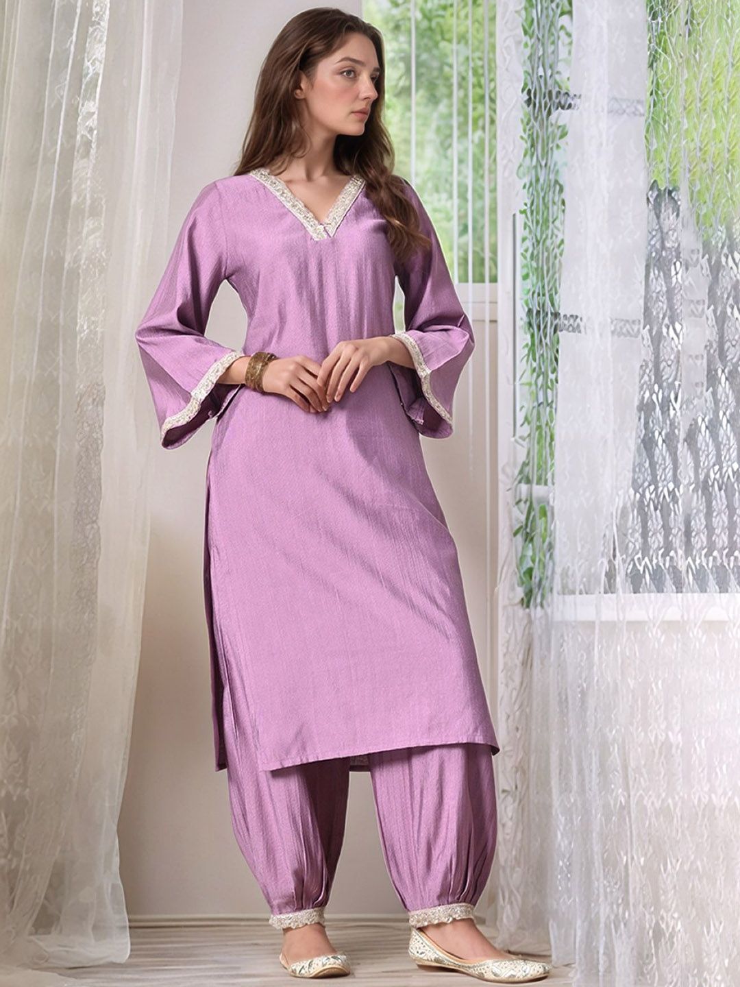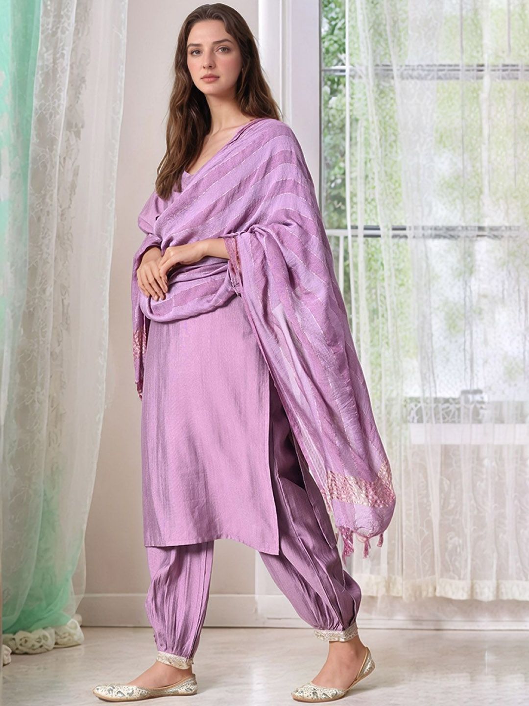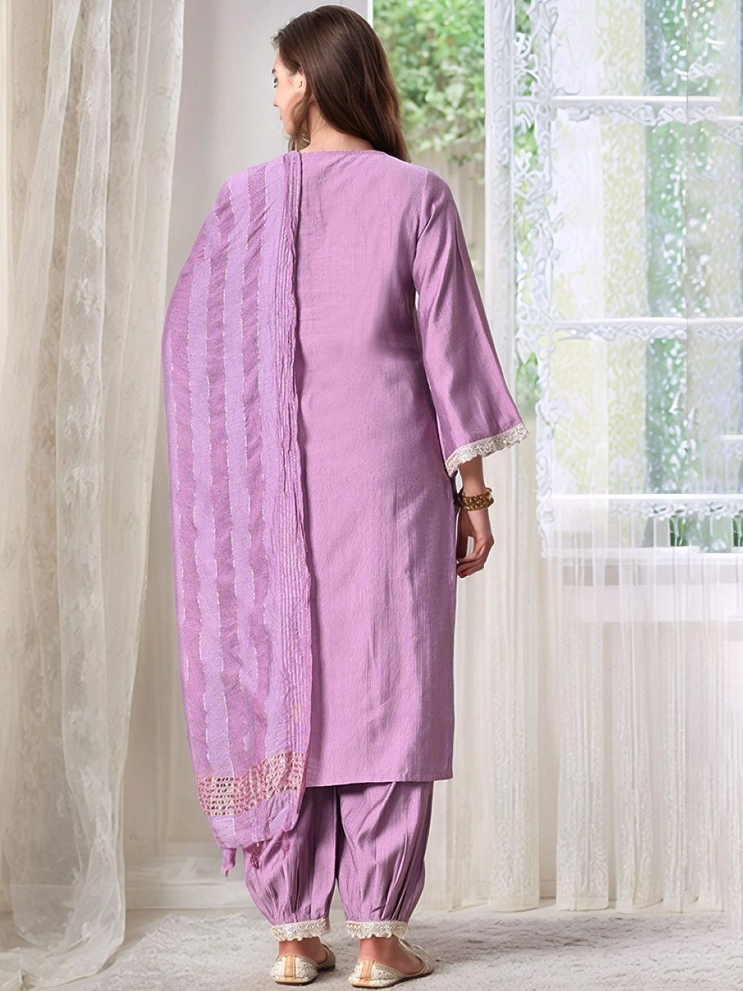 Sangria V Neck A-Line Kurta With Salwar & Dupatta
