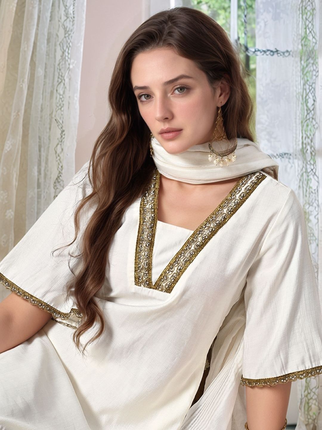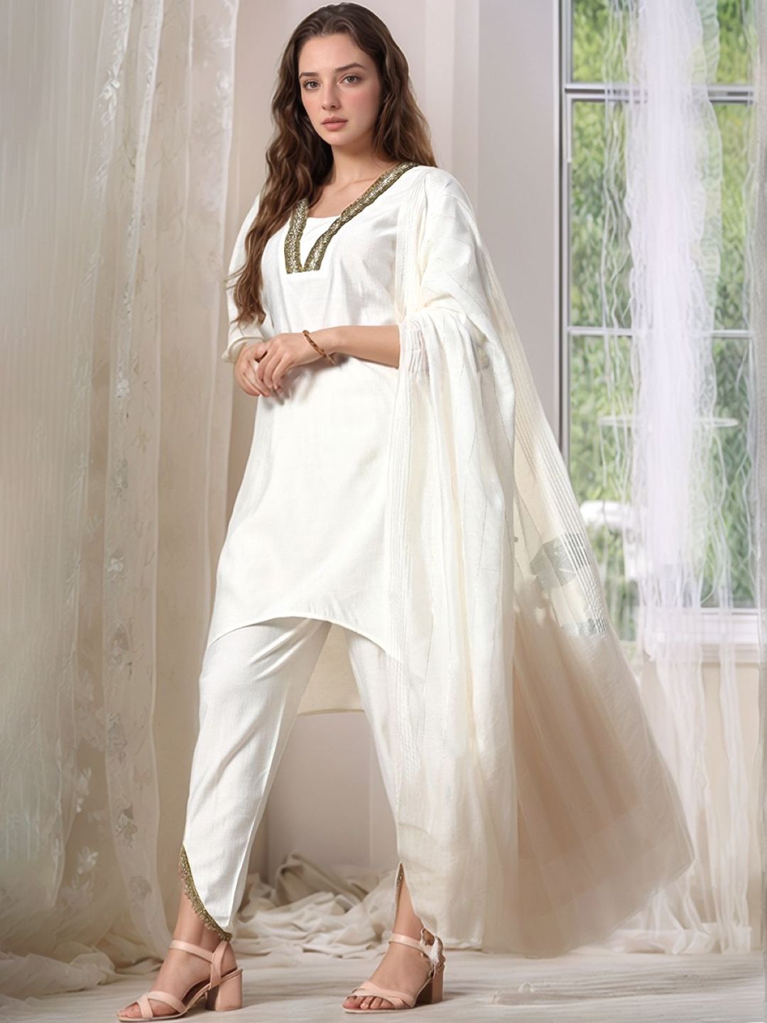 Buy this stylish Sangria V-Neck Beads & Stone Work A-Line Kurta With Dhoti Pants & Dupatta at Marincart Nepal. This product offers great quality and value. Perfect for those looking for the latest trends in fashion. Get yours now at unbeatable prices.
