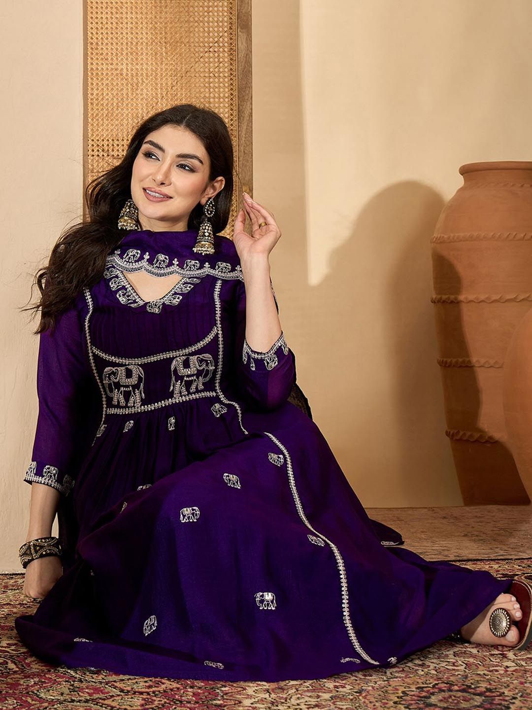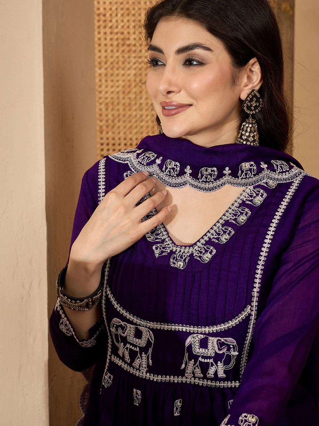 Sangria Women Embroidered Kurta With Trouser & Dupatta