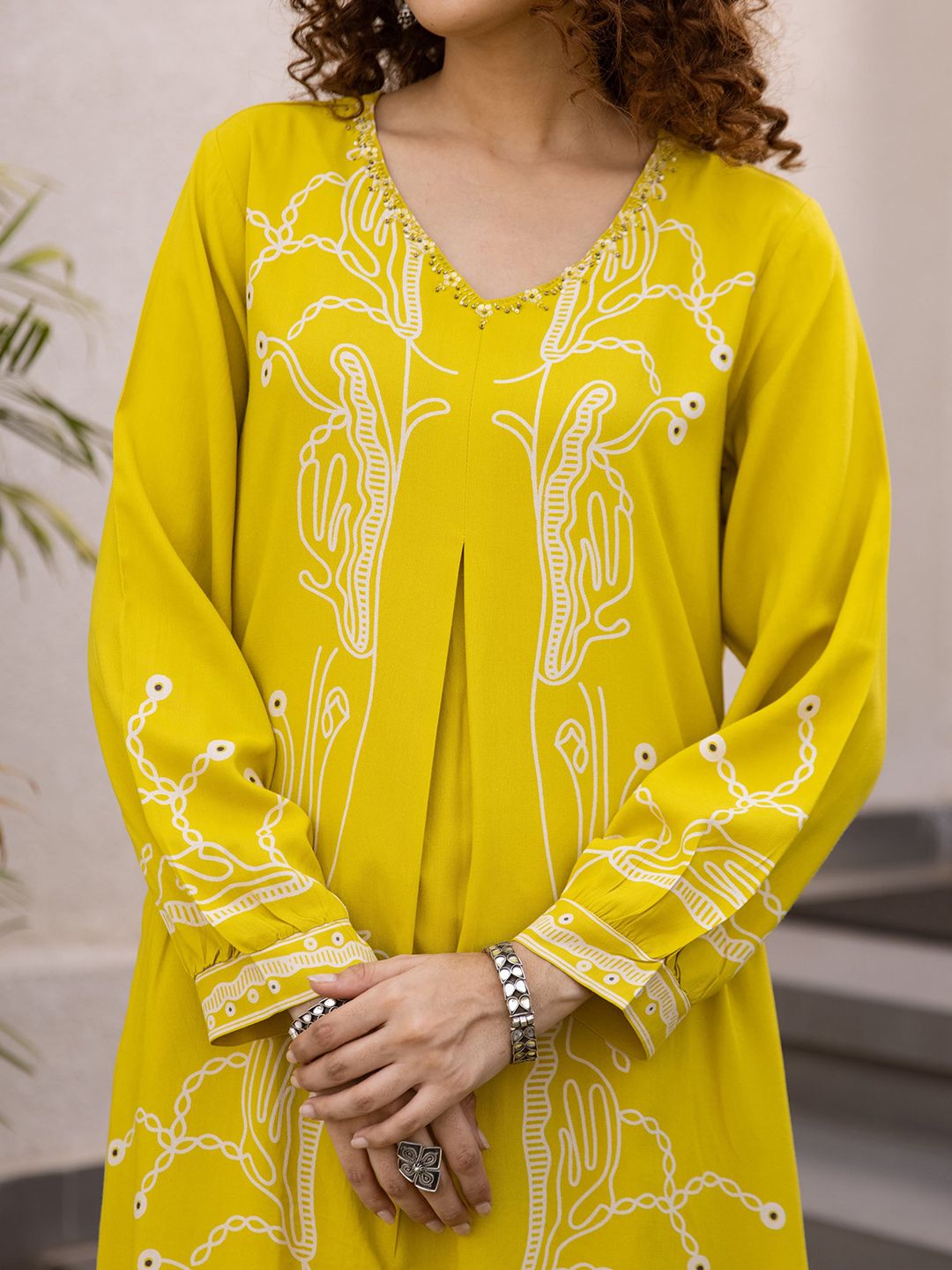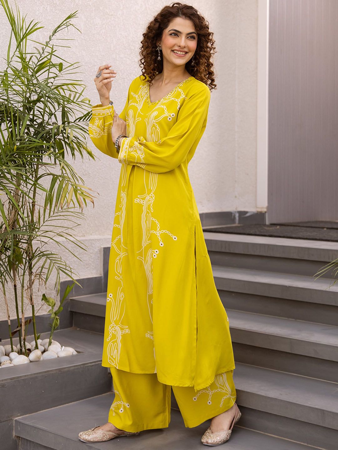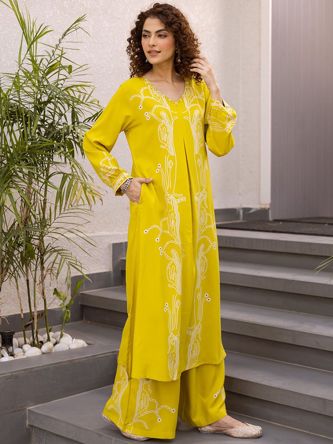 Sangria Women Abstract Printed A-Line Kurta & Palazzos