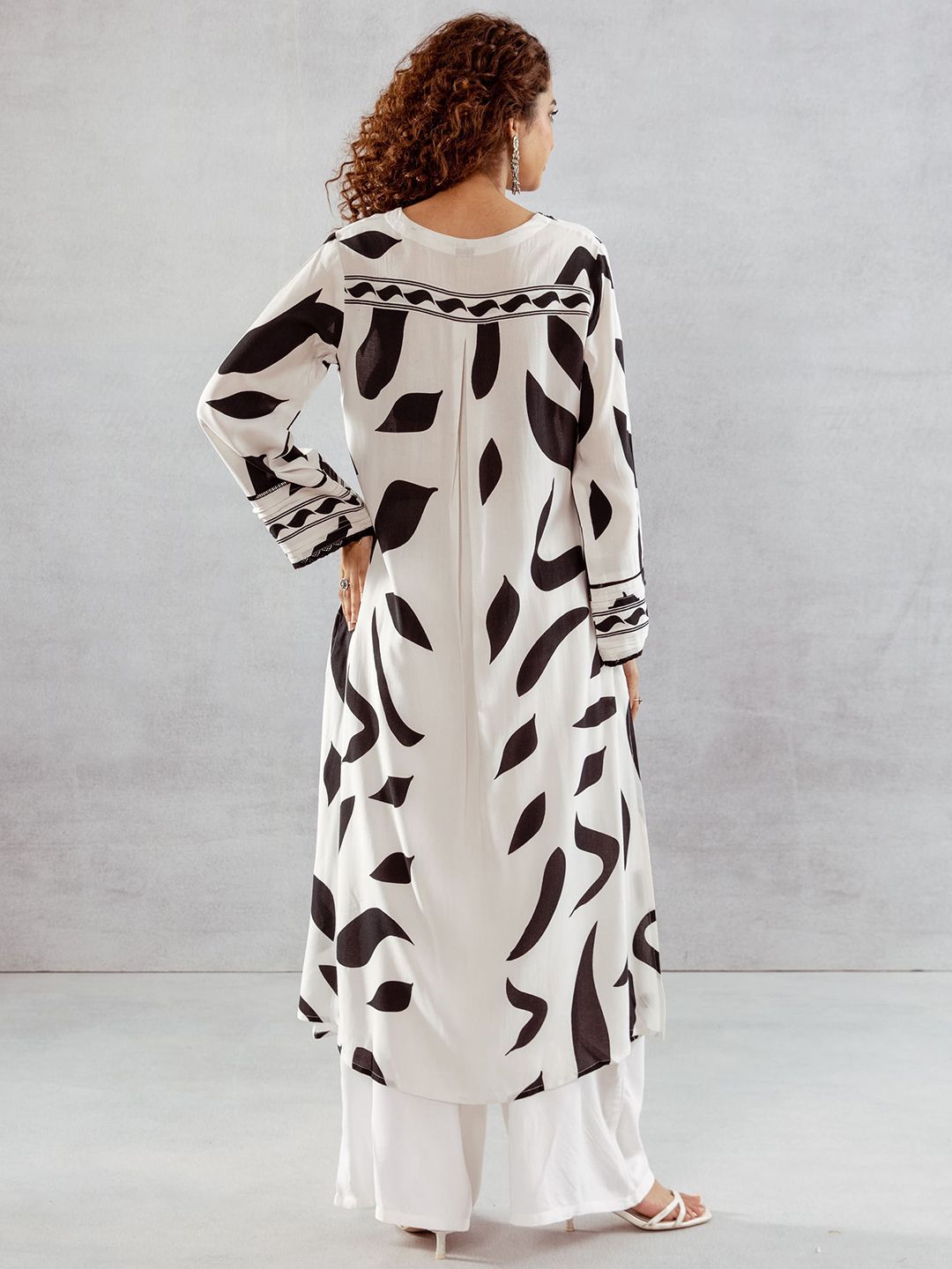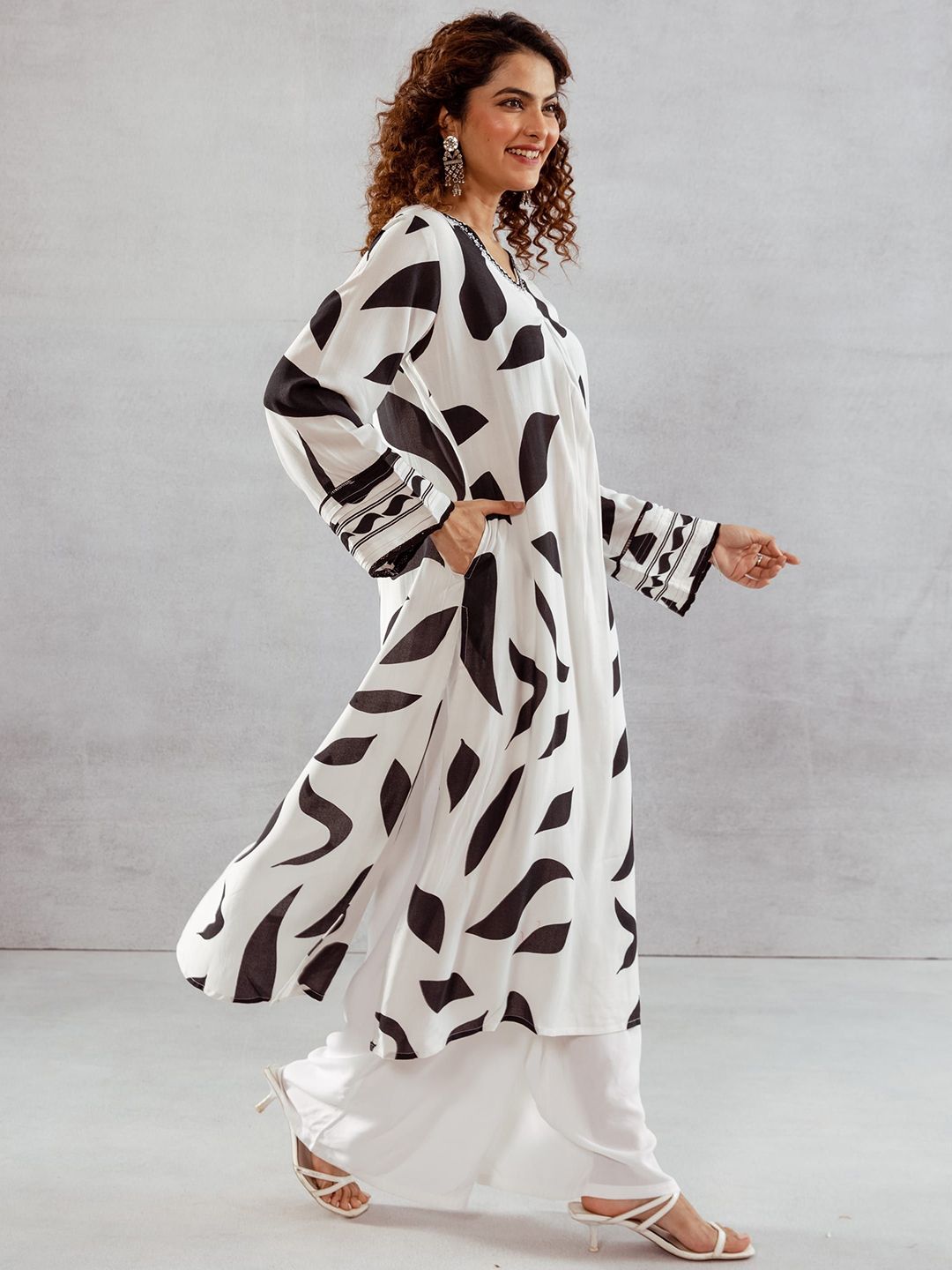 Sangria Women Abstract Printed Beads and Stones A-Line Kurta with Palazzos Set