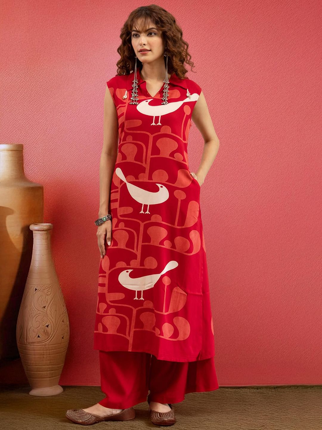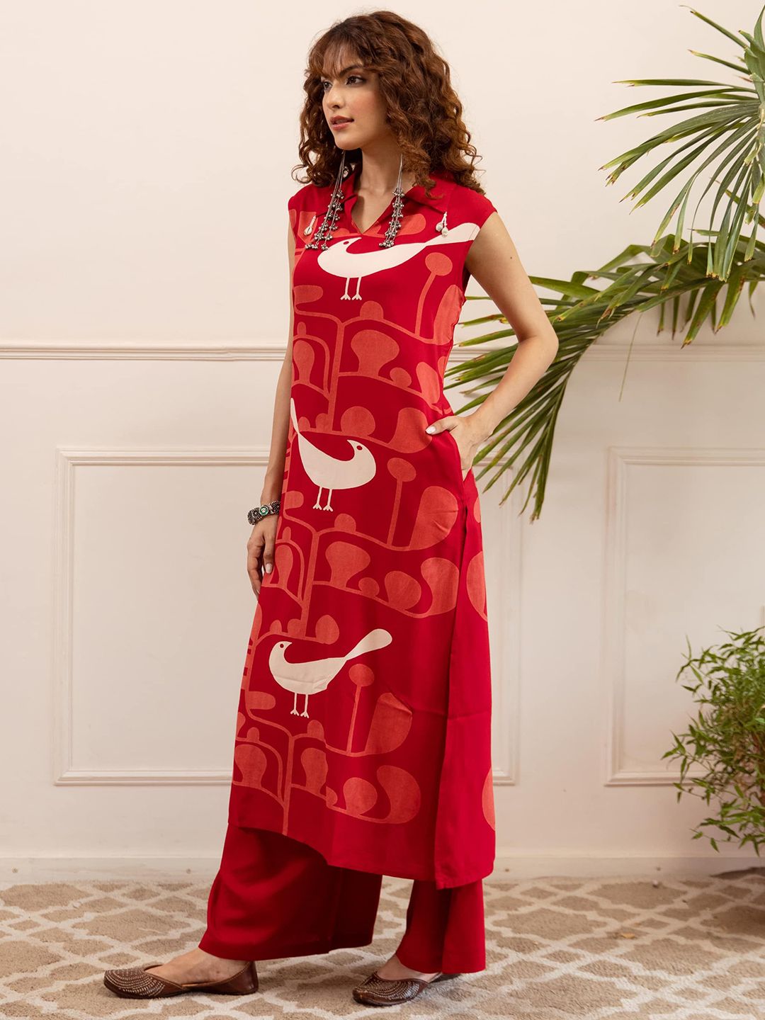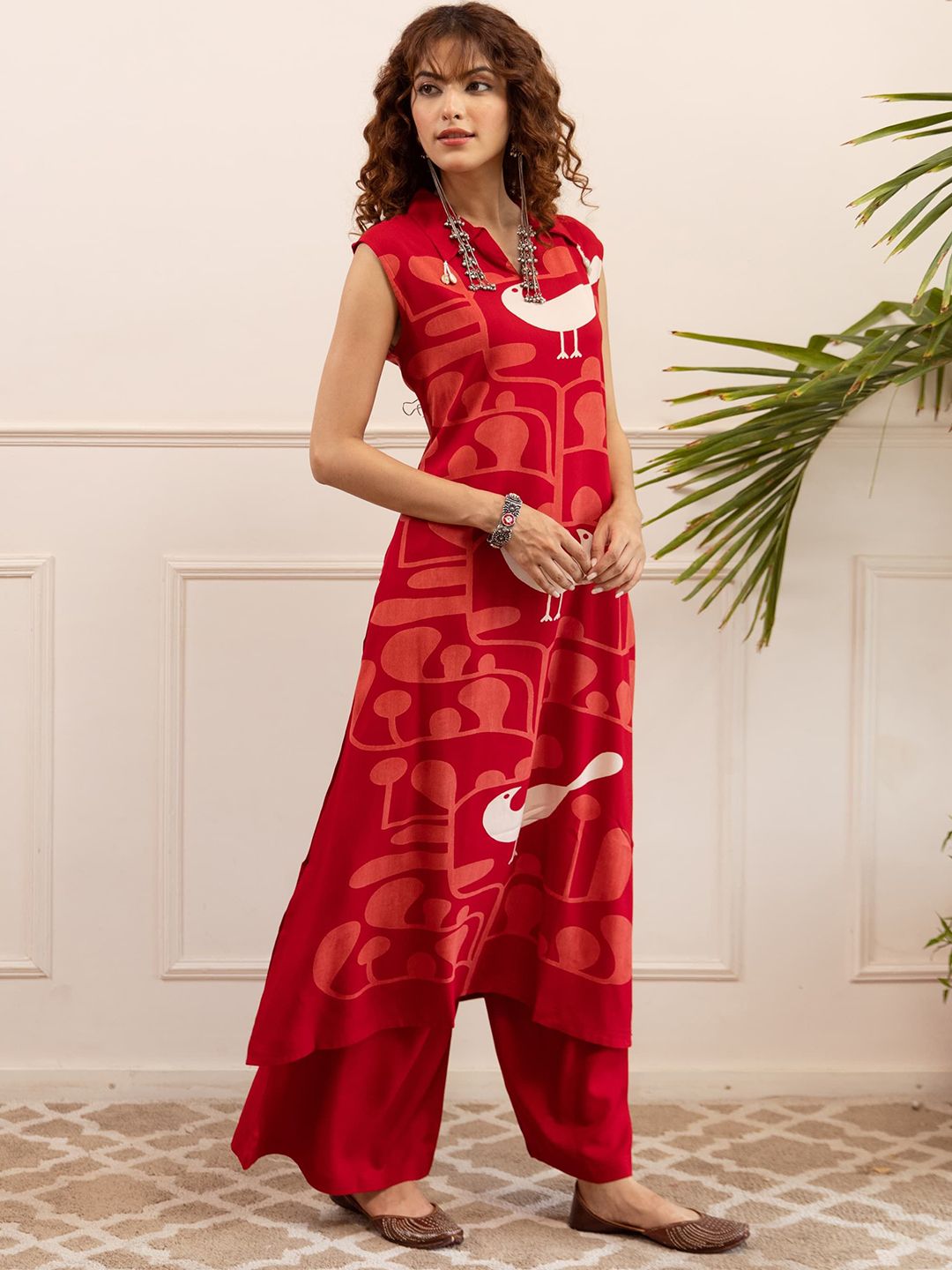 Sangria Women Abstract Printed Pure Cotton Kurta with Palazzo