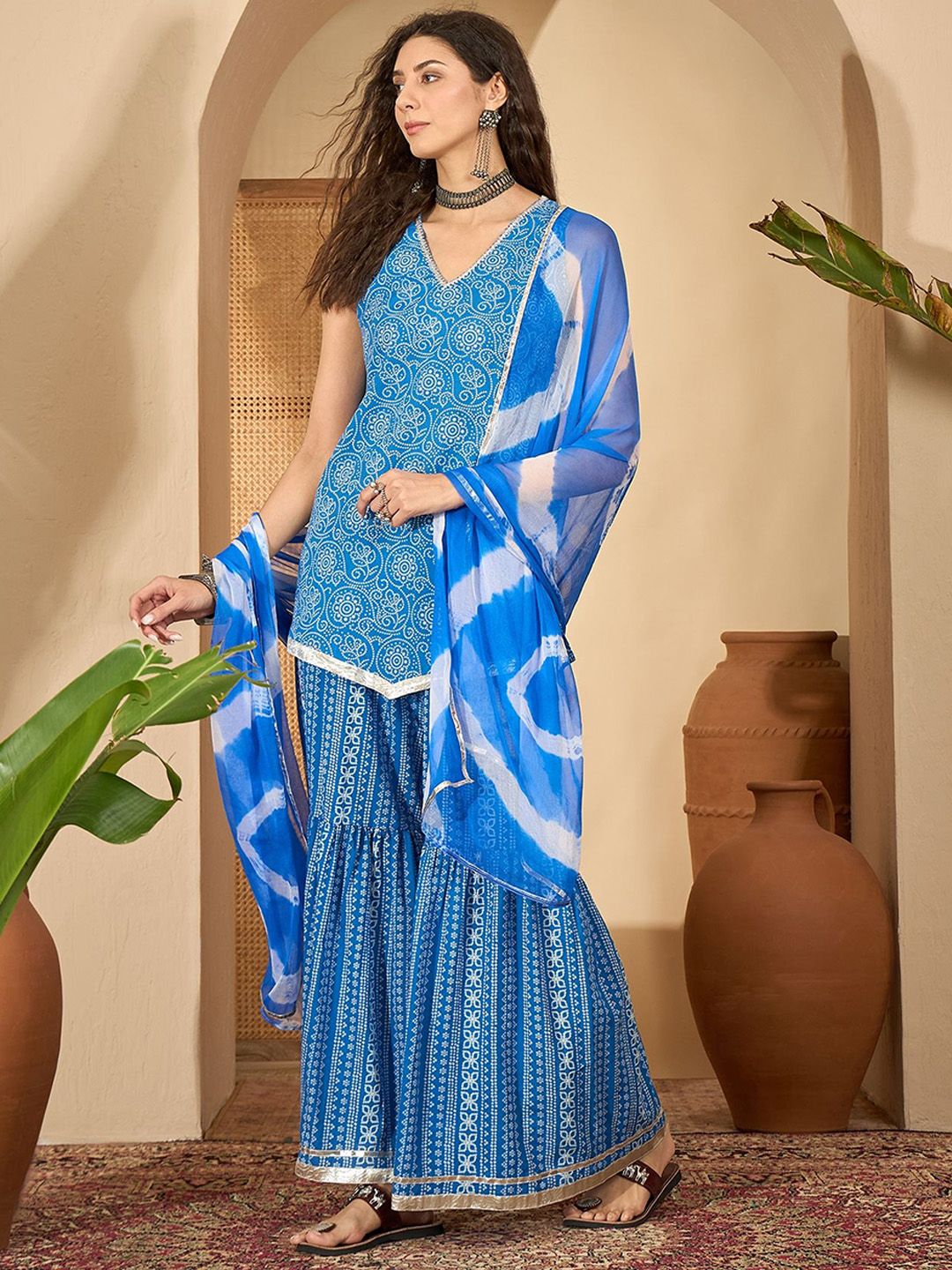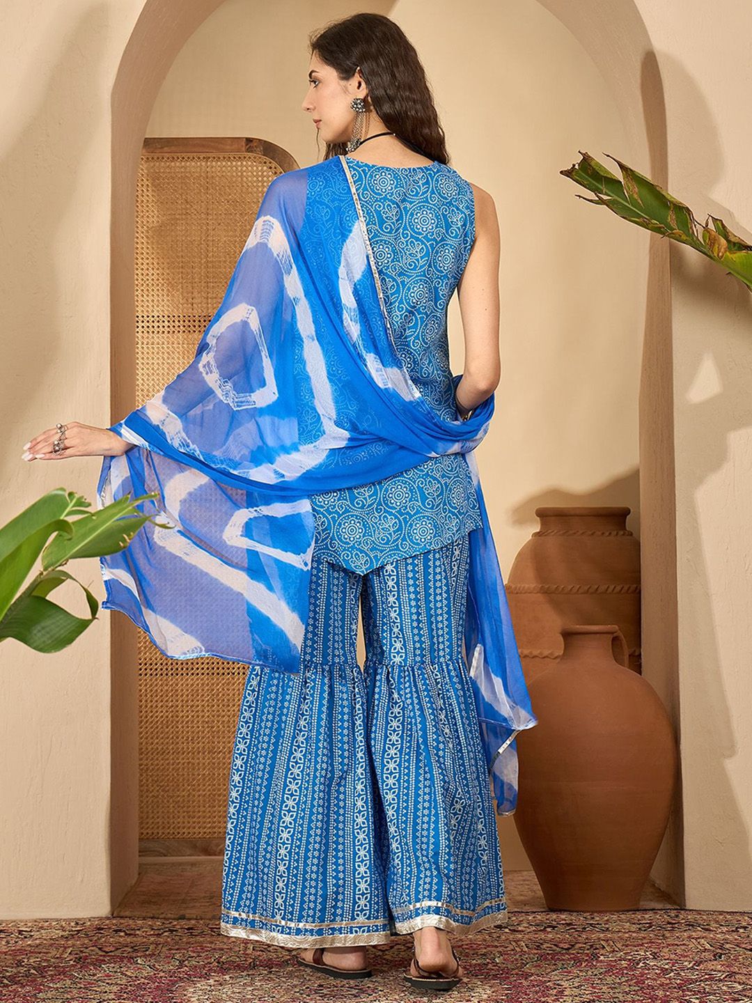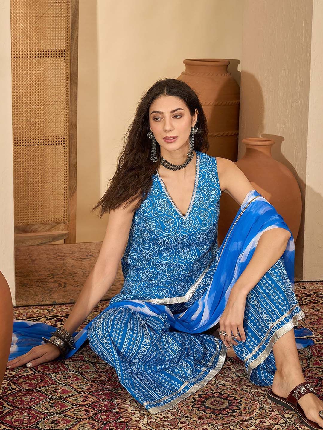 Sangria Women Bandhani Printed Regular Gotta Patti Kurta With Sharara & Dupatta