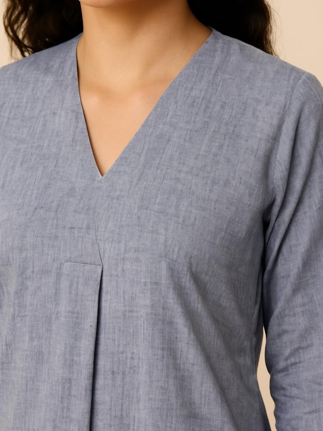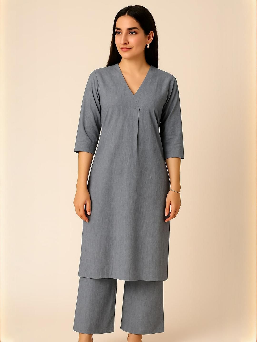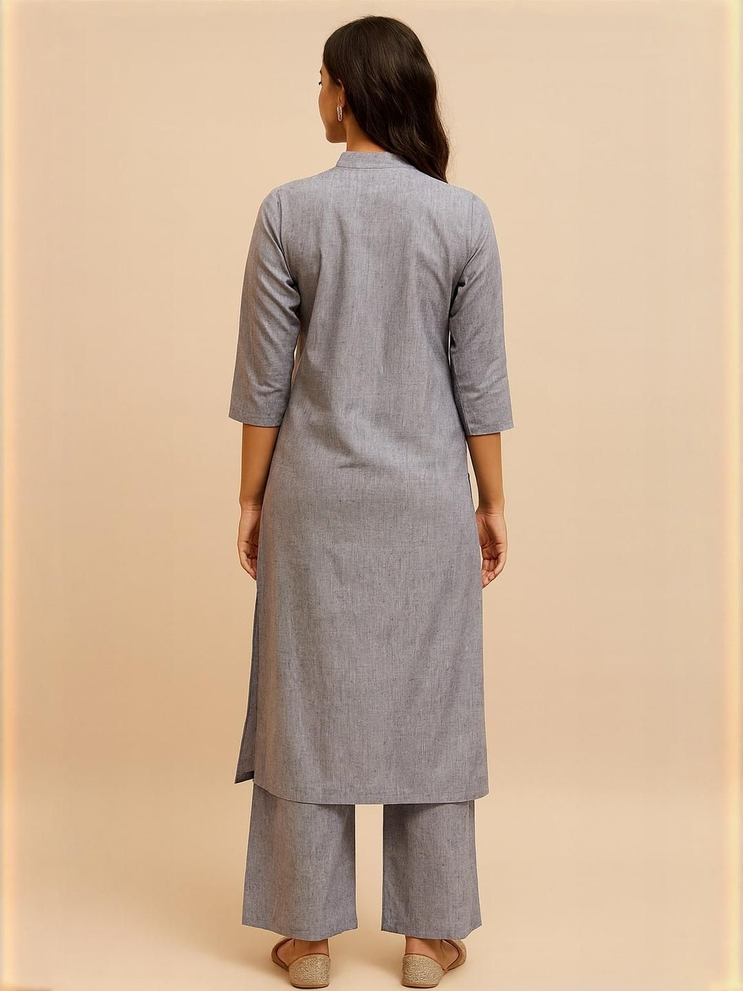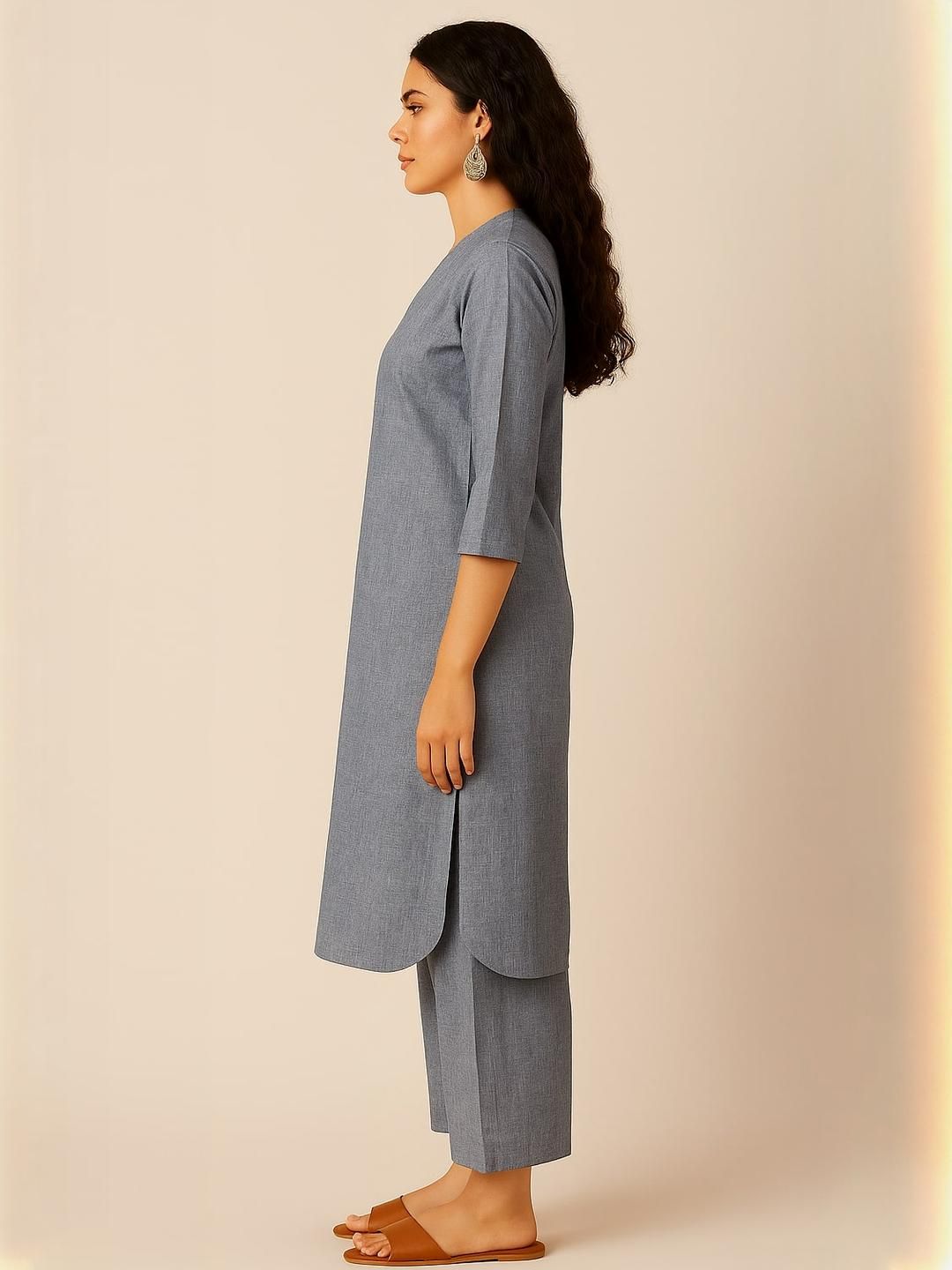 Sangria Women Blue Cotton Blend Solid Kurta Sets