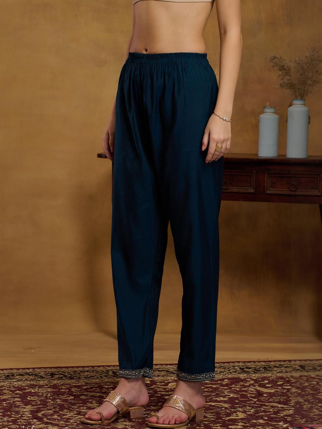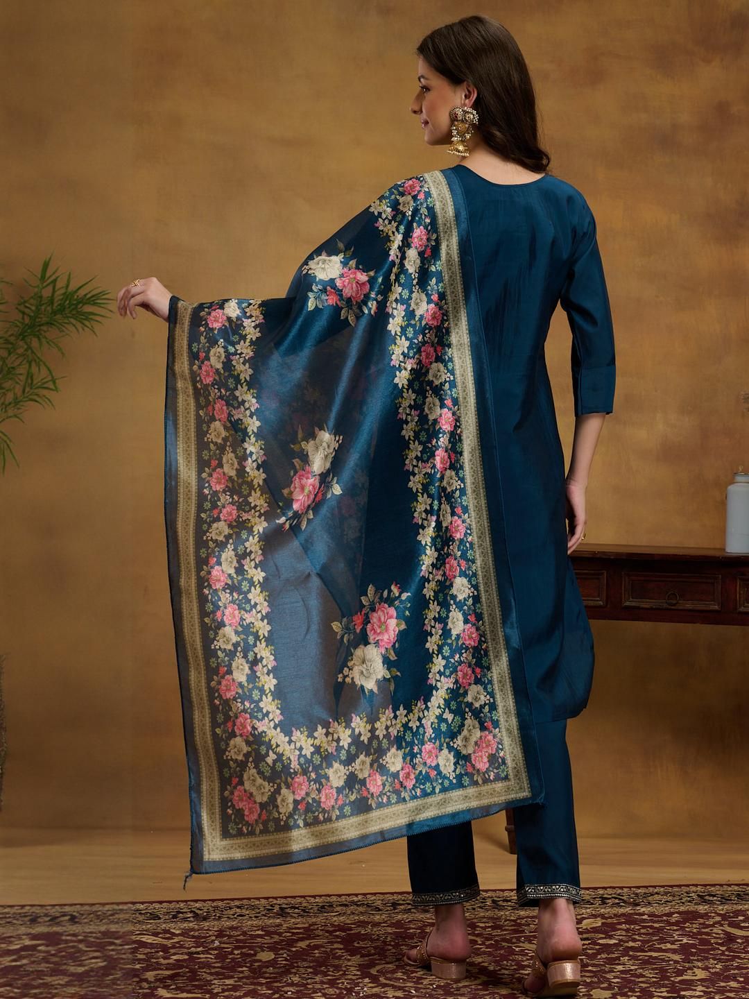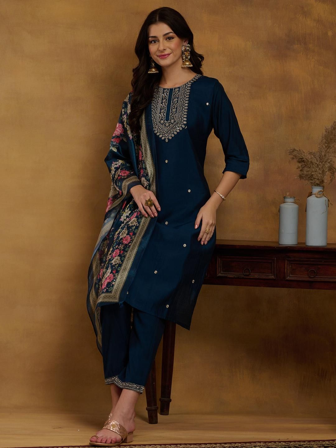 Sangria Women Blue Silk Blend Festive Kurta Sets