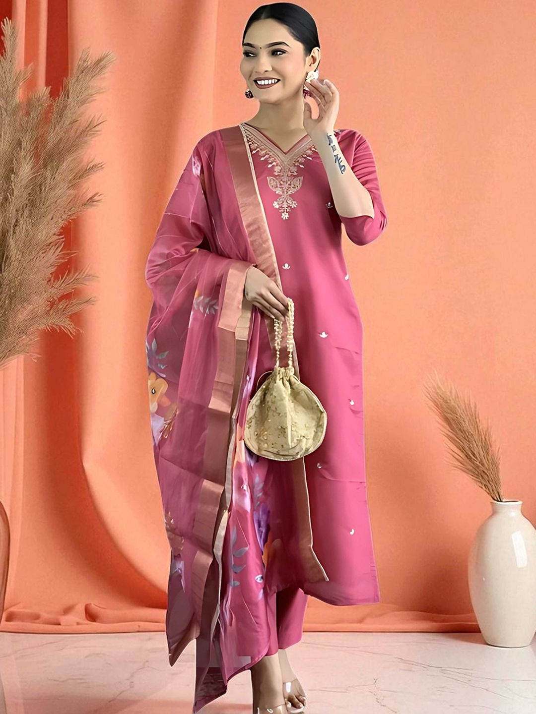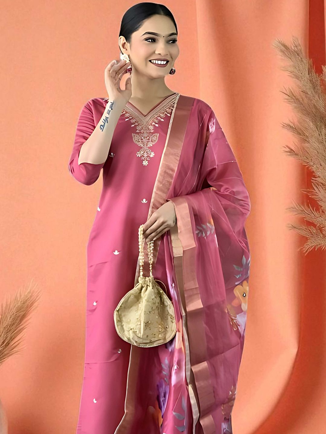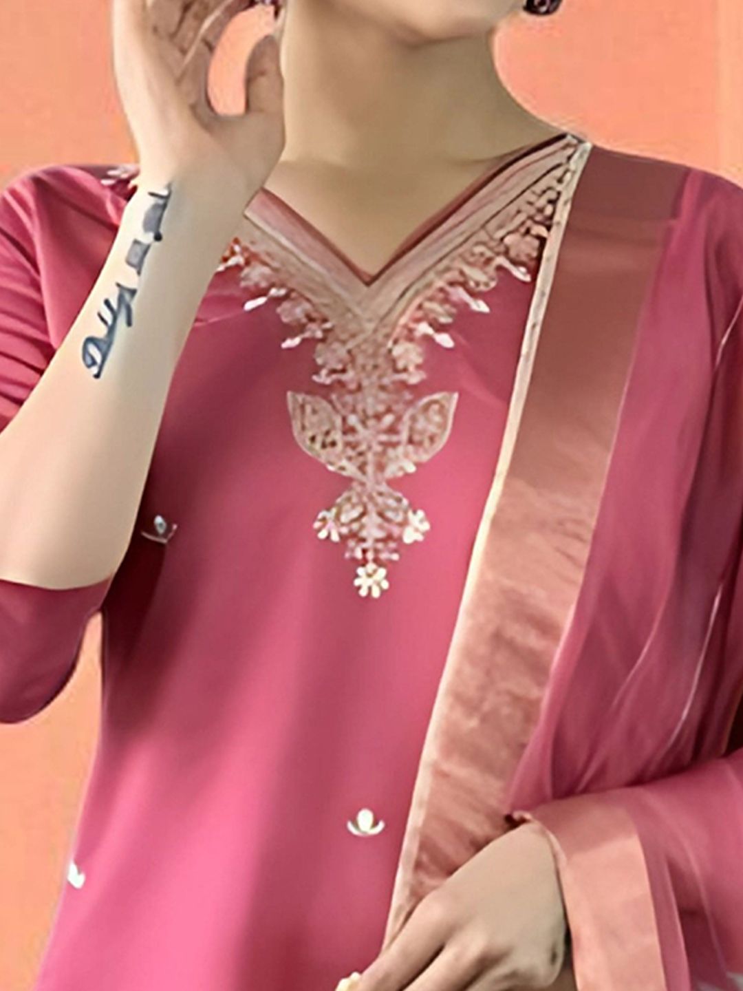 Sangria Women Embroidered Pure Cotton Straight Kurta With Pyjama & Dupatta