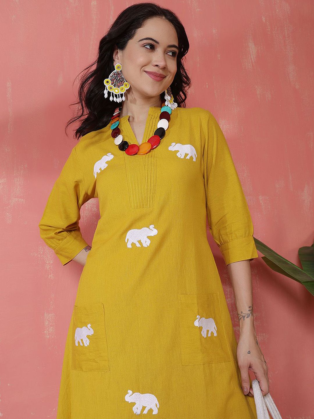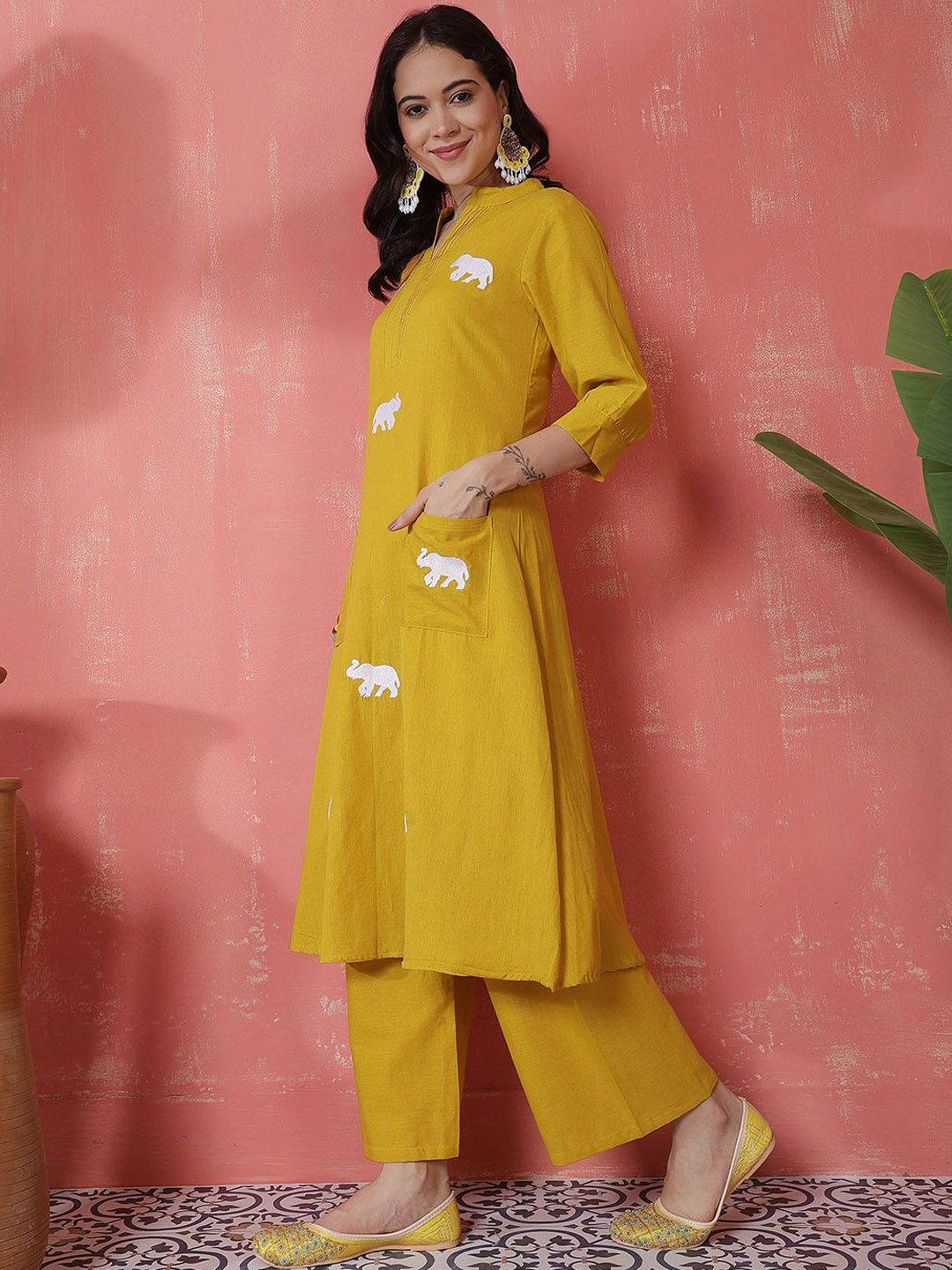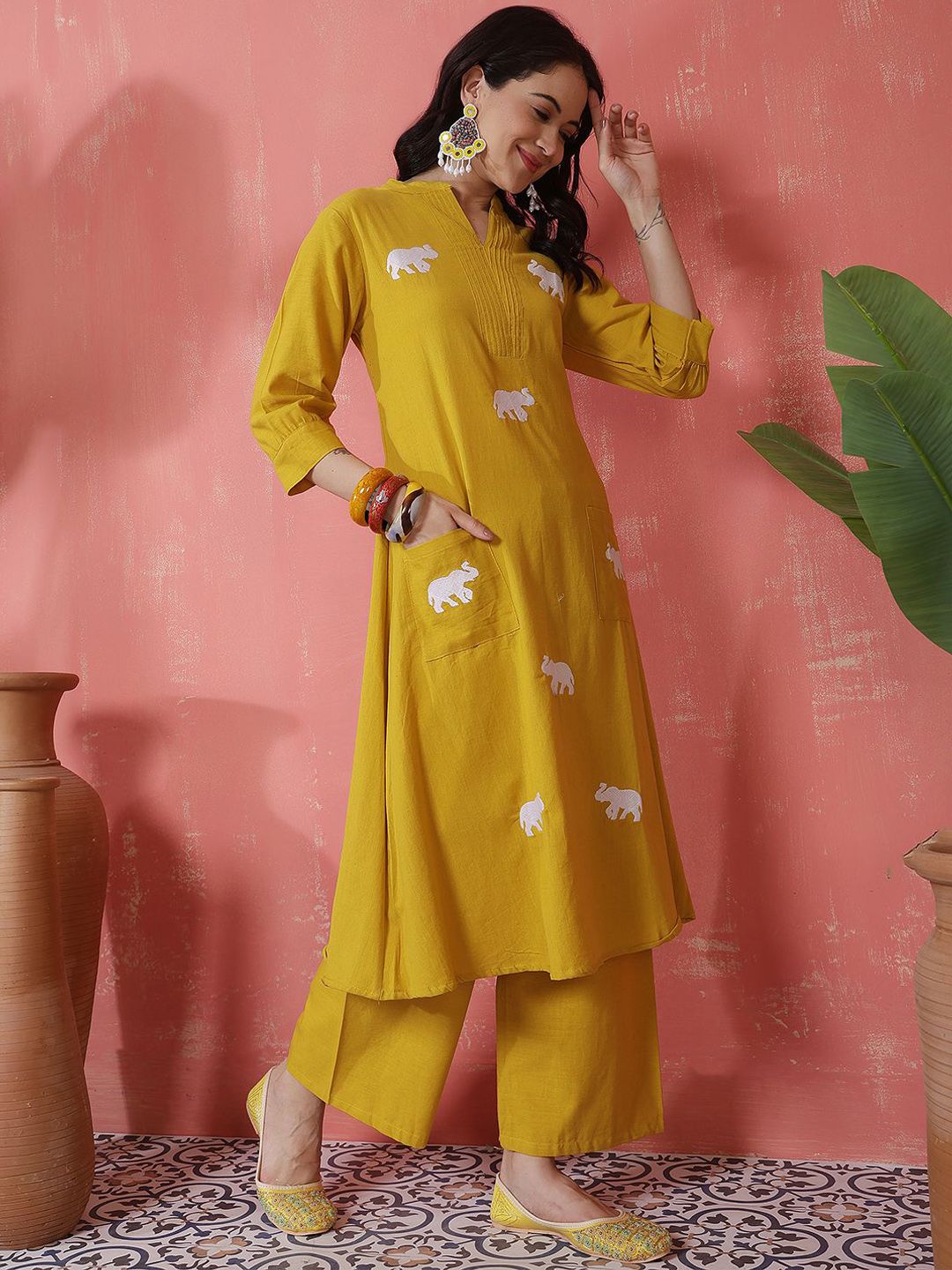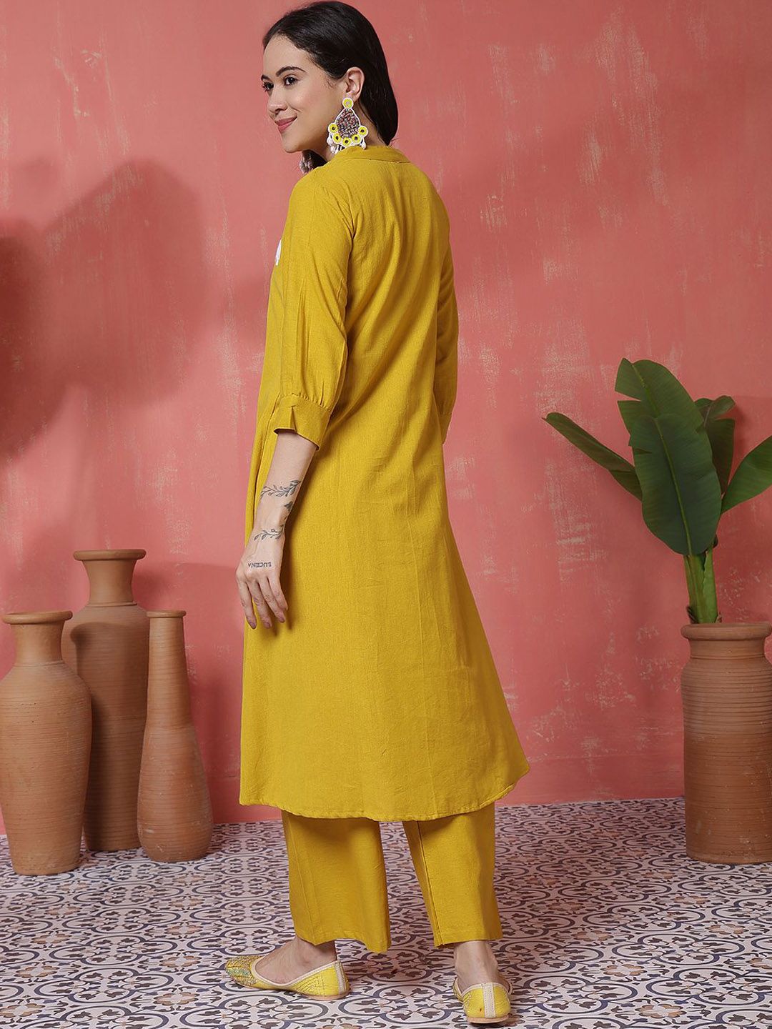 Sangria Women Embroidered V-Neck Pure Cotton A-Line Kurta With Palazzo
