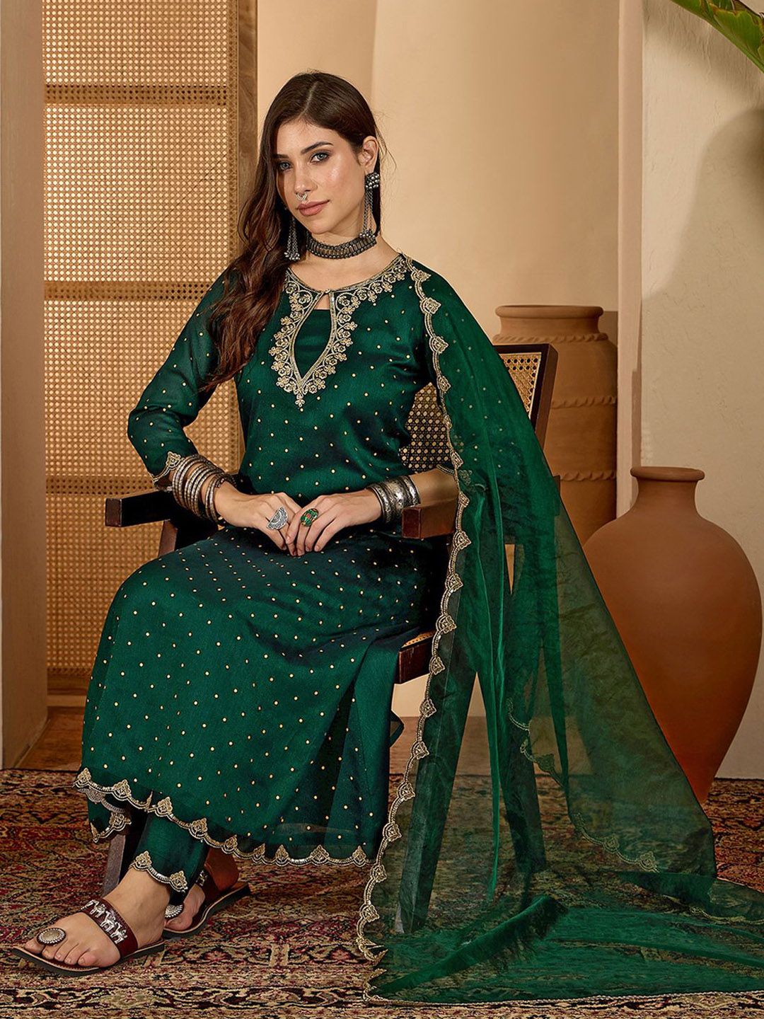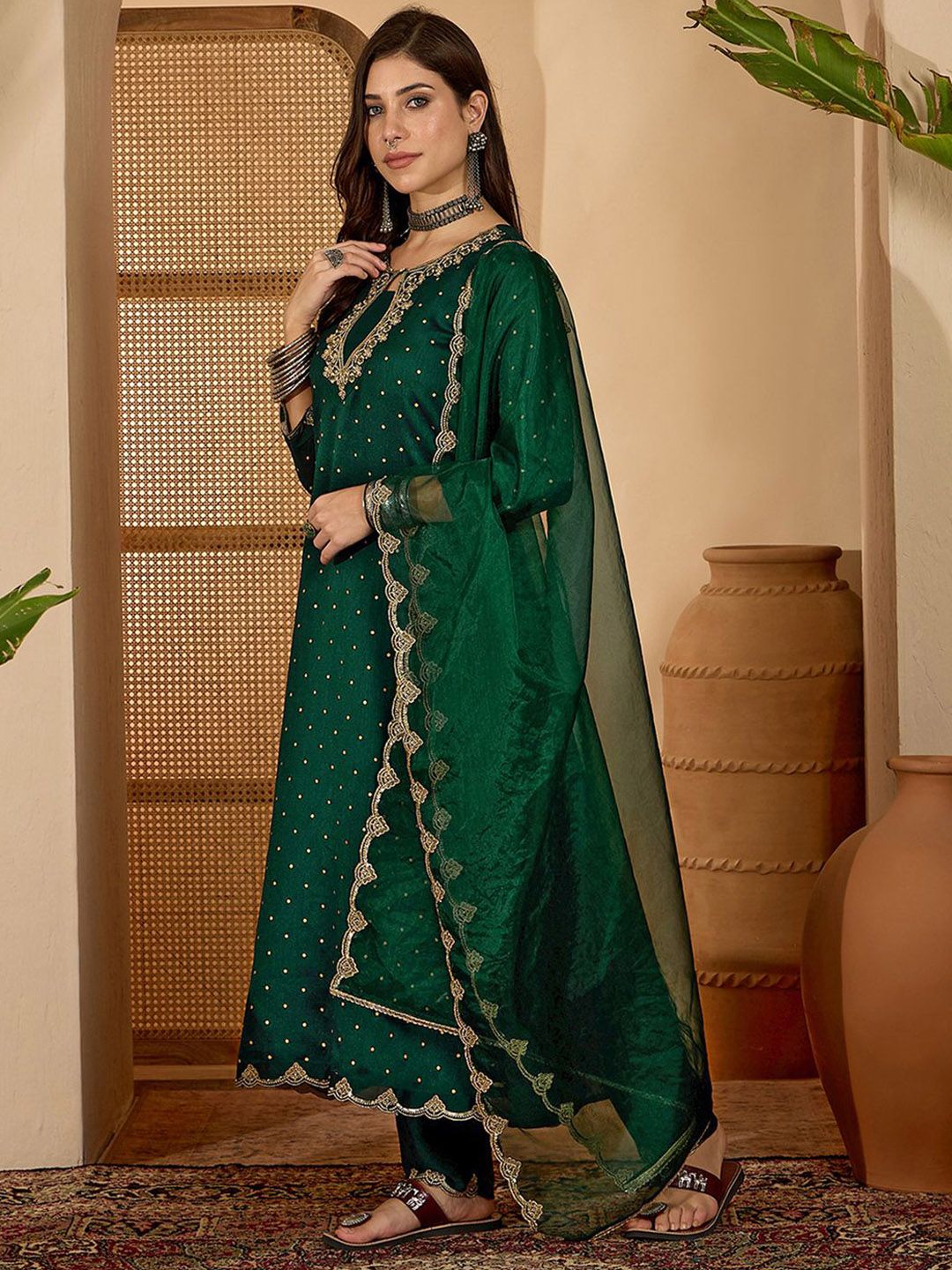Sangria Women Ethnic Motifs Embroidered Anarkali Kurta with Trouser & Dupatta