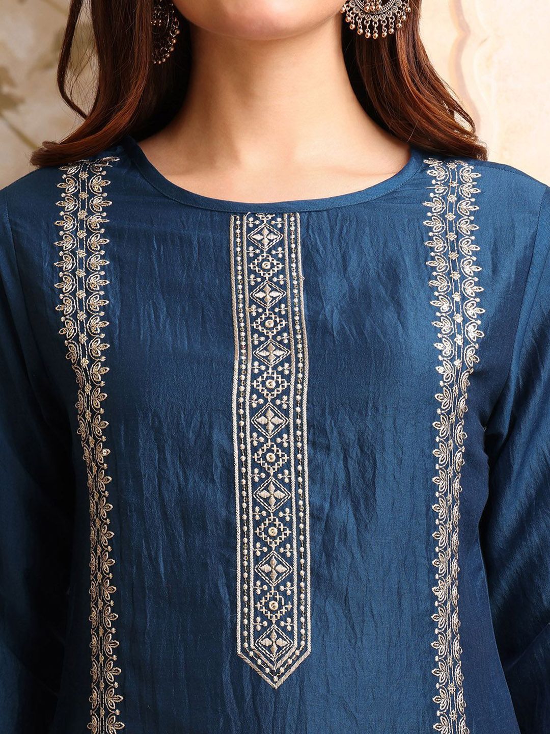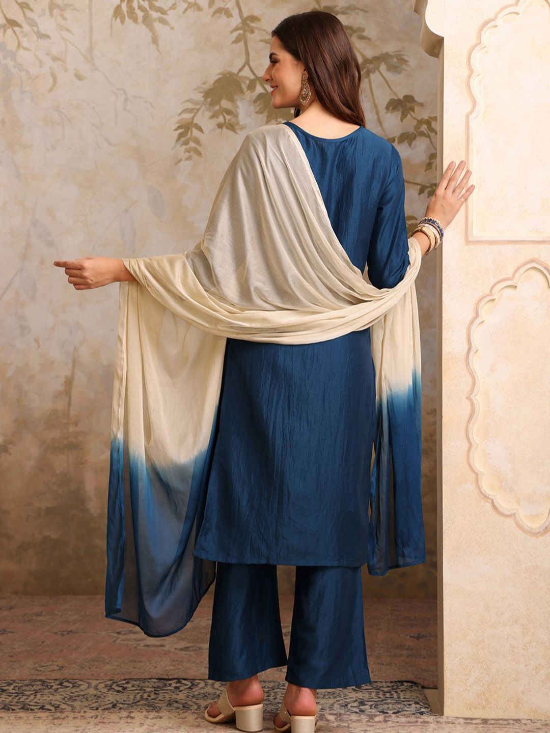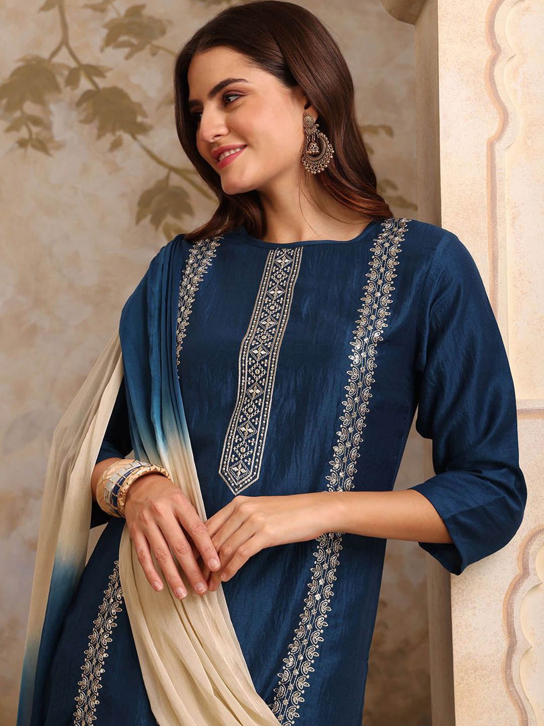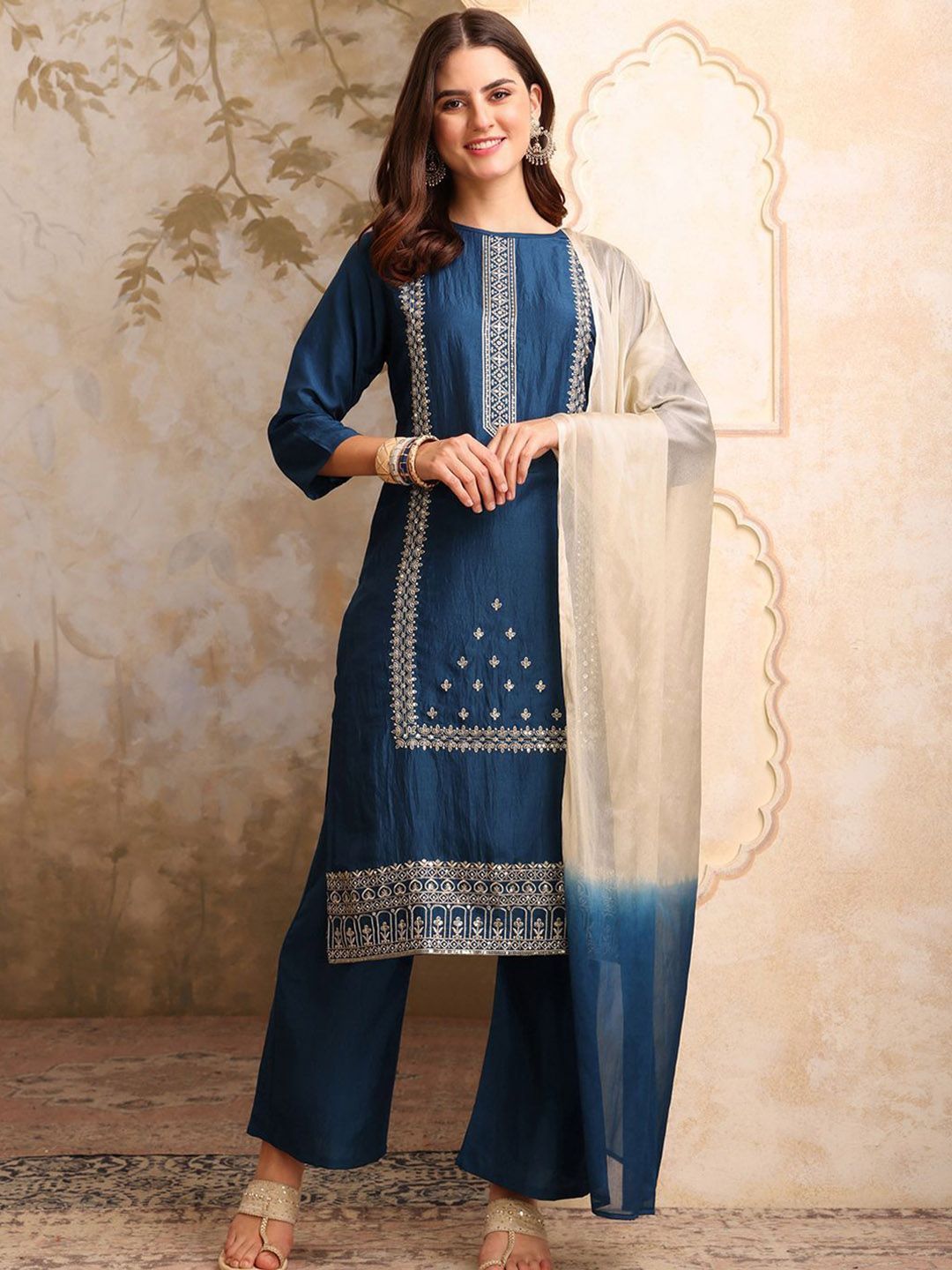Sangria Women Ethnic Motifs Embroidered Kurta with Palazzos & With Dupatta