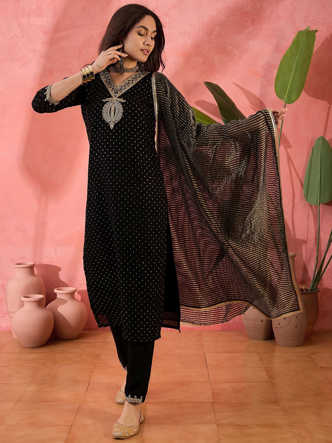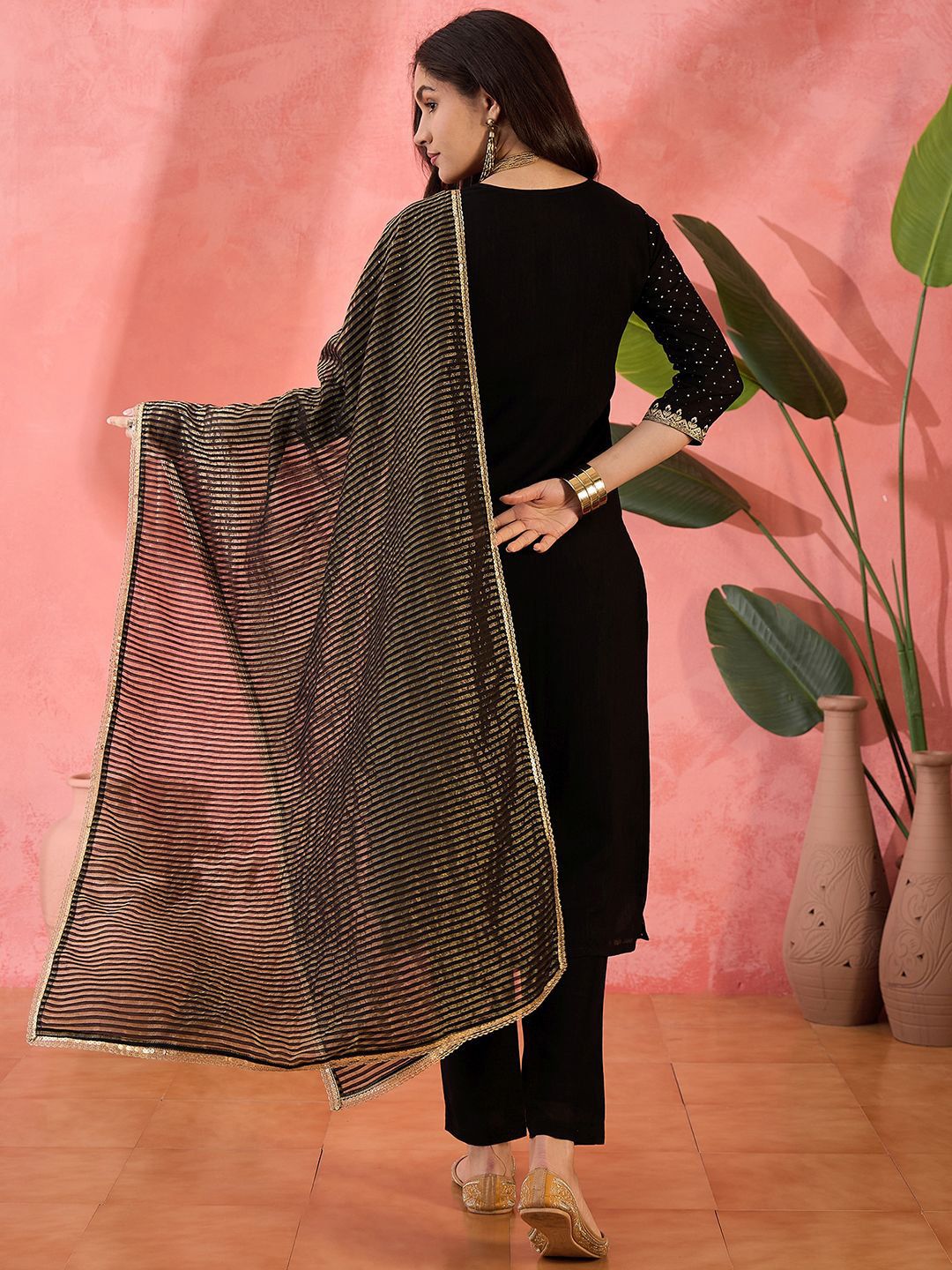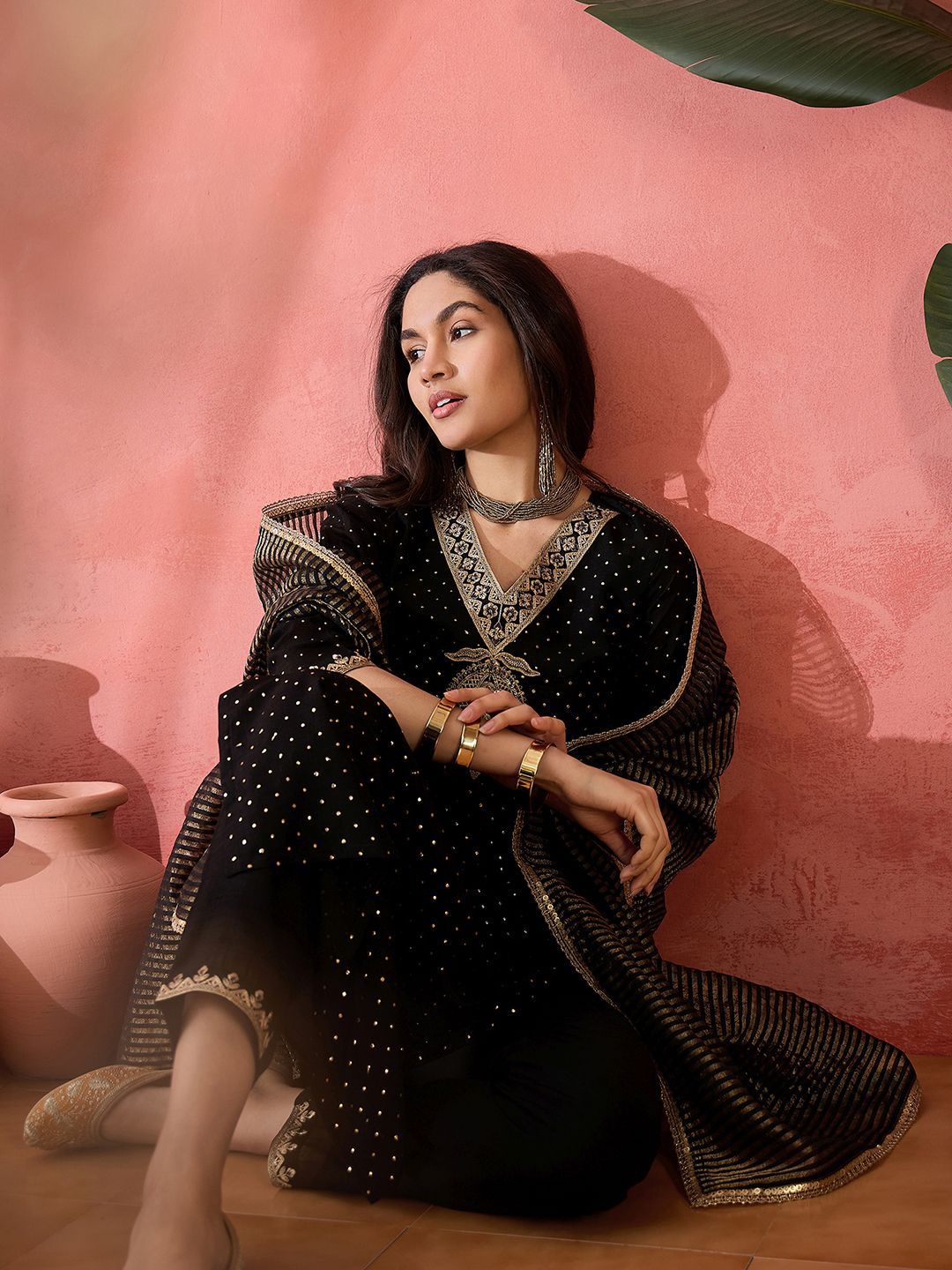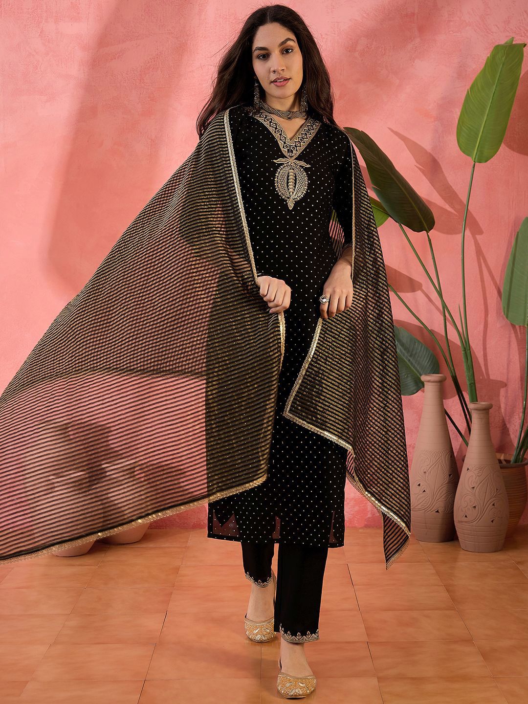 Sangria Women Ethnic Motifs Embroidered Kurta with Trouser & Dupatta