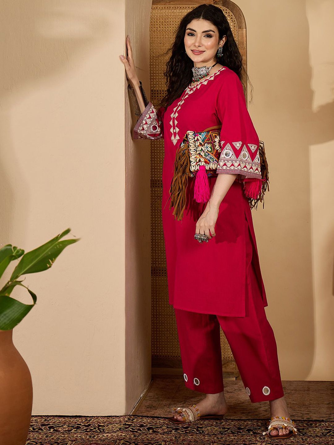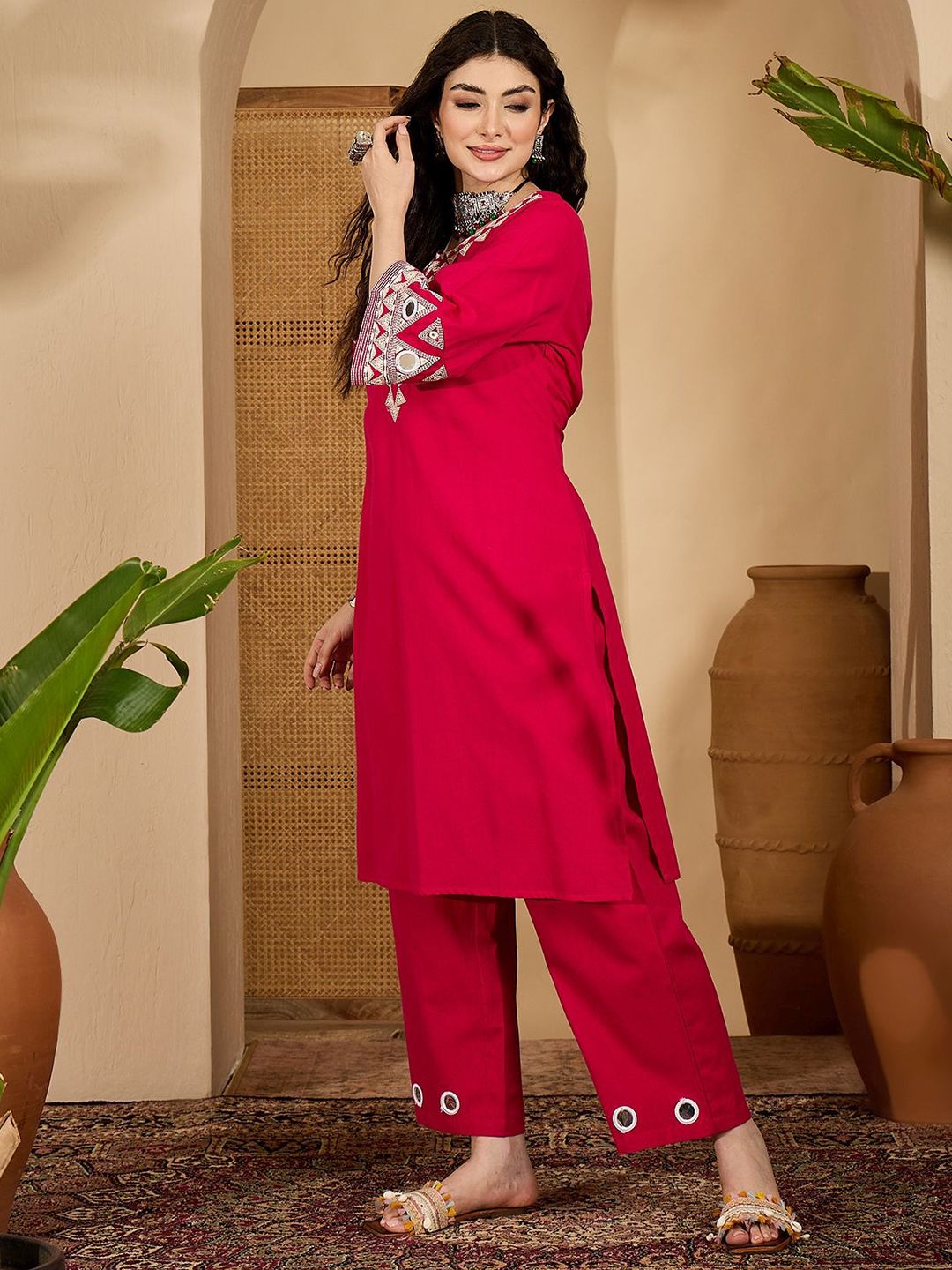 Sangria Women Ethnic Motifs Embroidered Kurta with Trouser