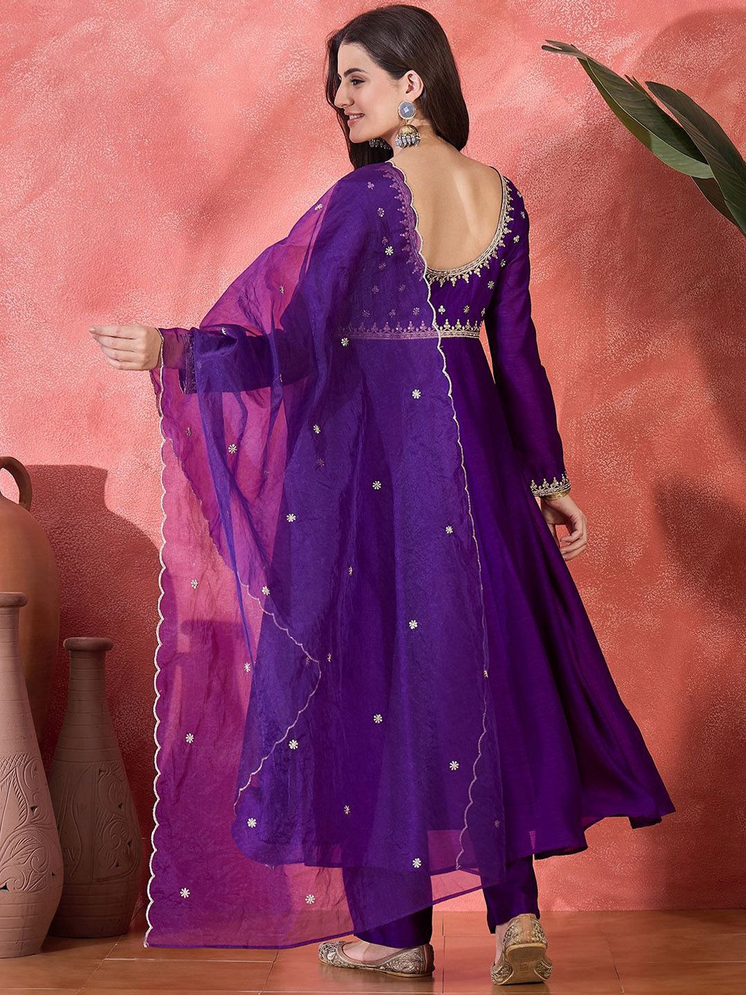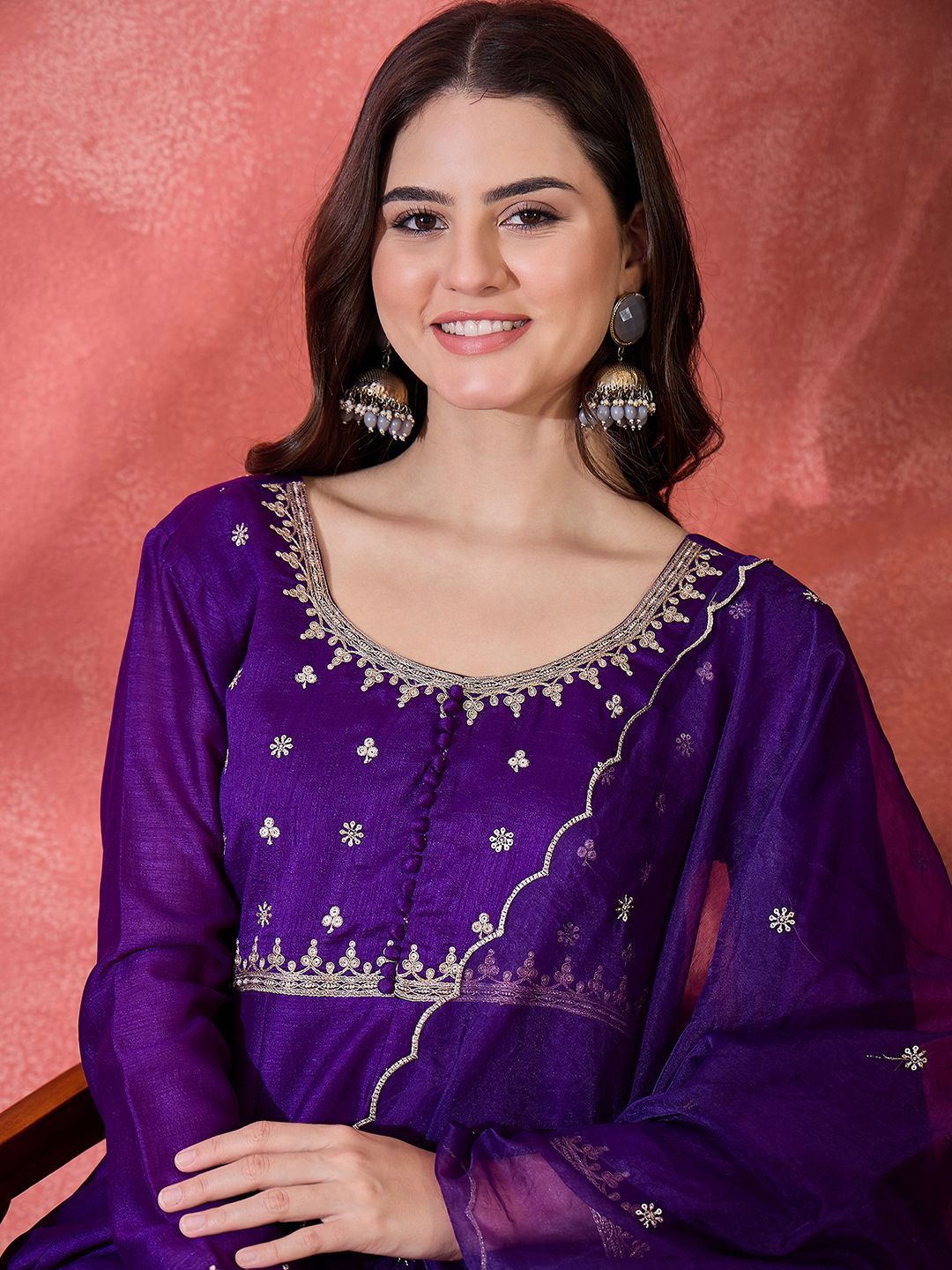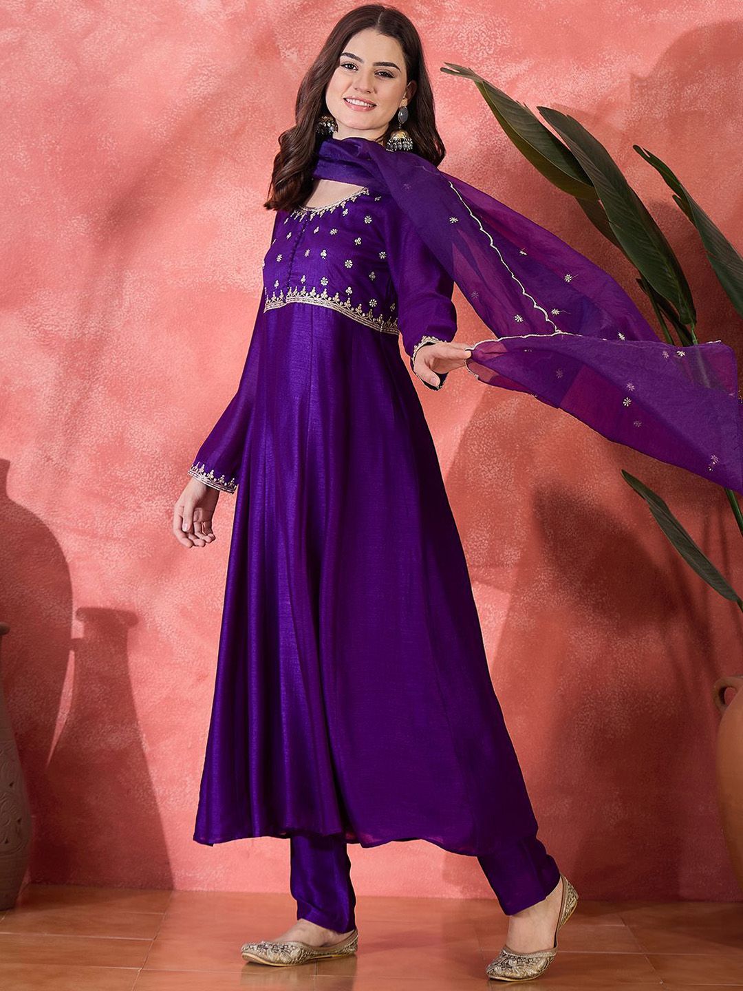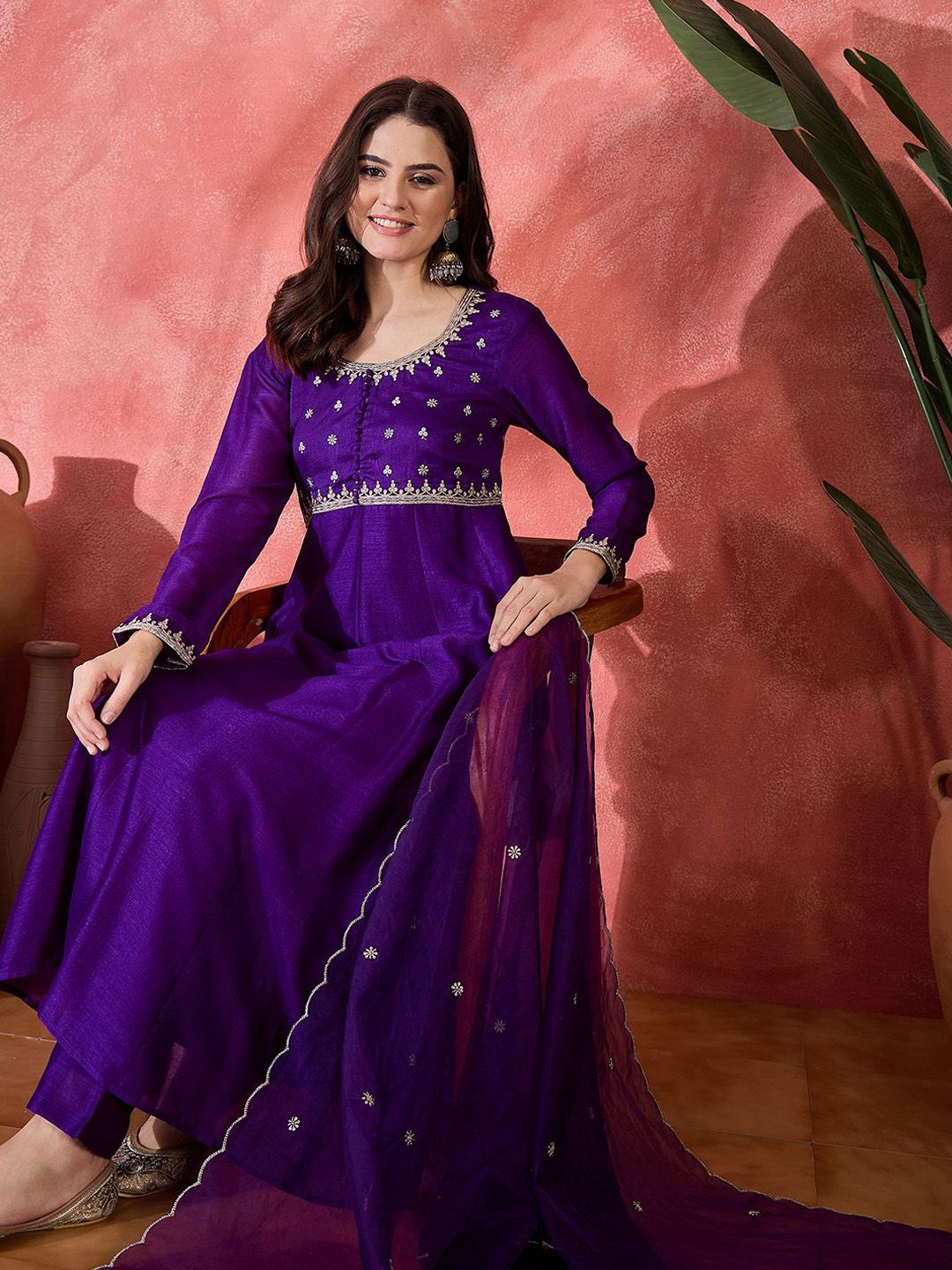 Sangria Women Ethnic Motifs Embroidered Kurta with Trousers & Dupatta