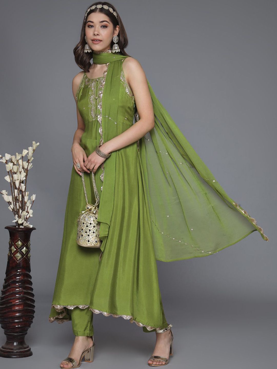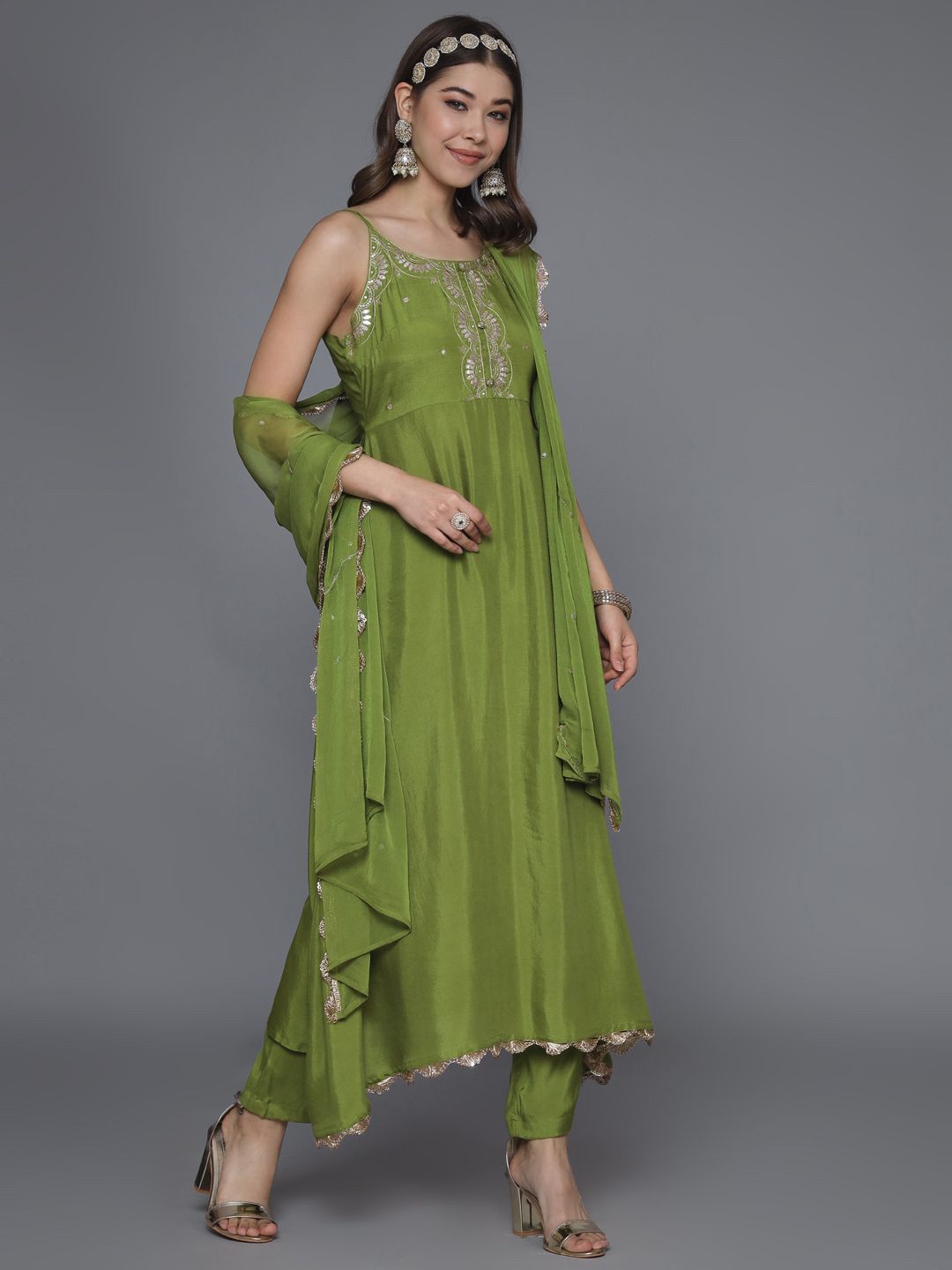 Sangria Women Ethnic Motifs Embroidered Kurta with Trousers & Dupatta