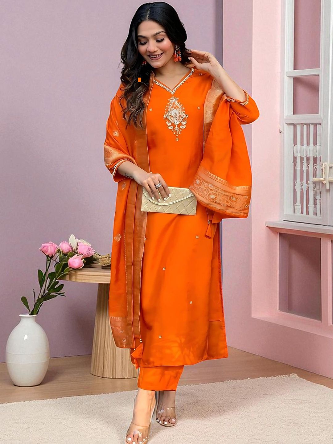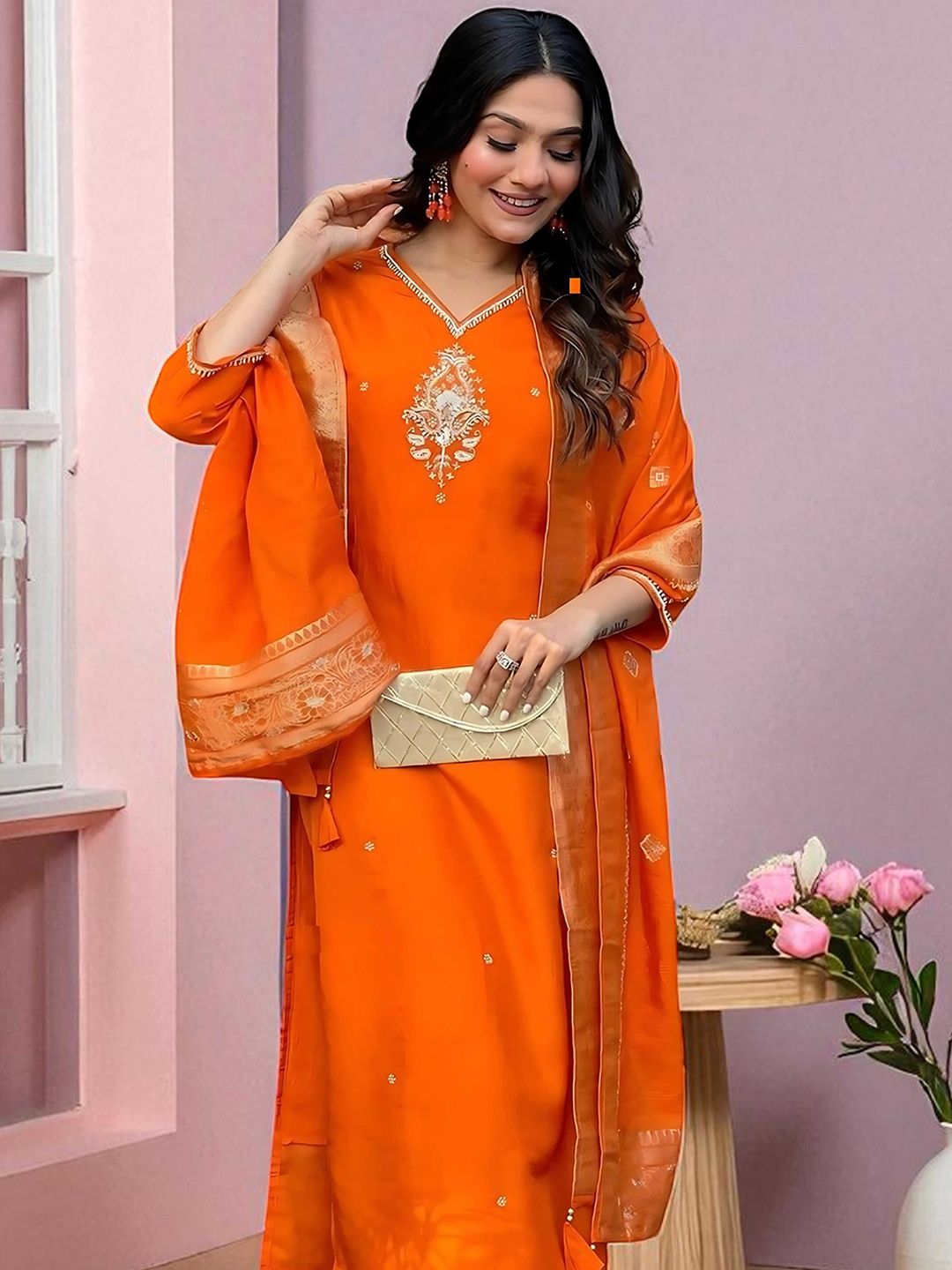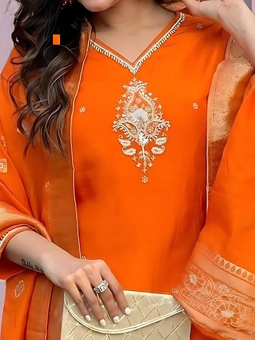 Sangria Women Ethnic Motifs Embroidered Pure Cotton Kurta with Pyjama & Dupatta