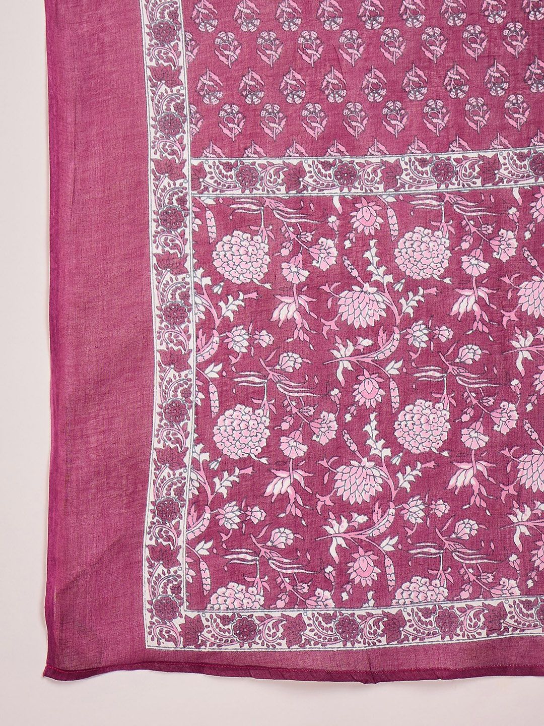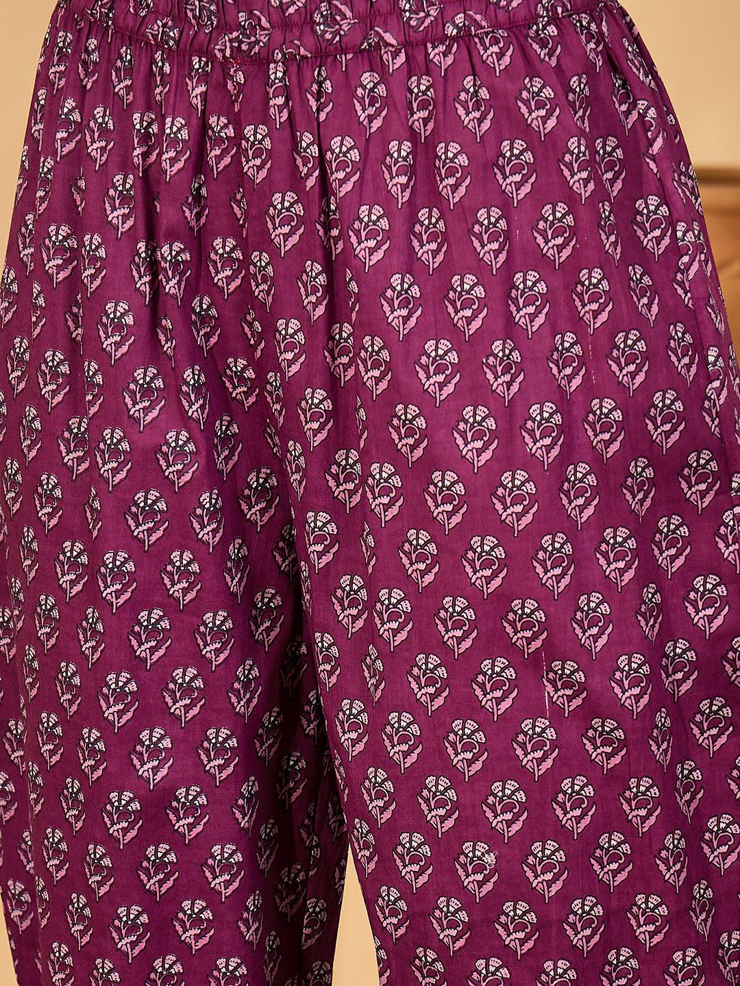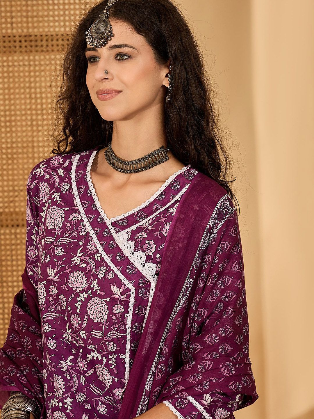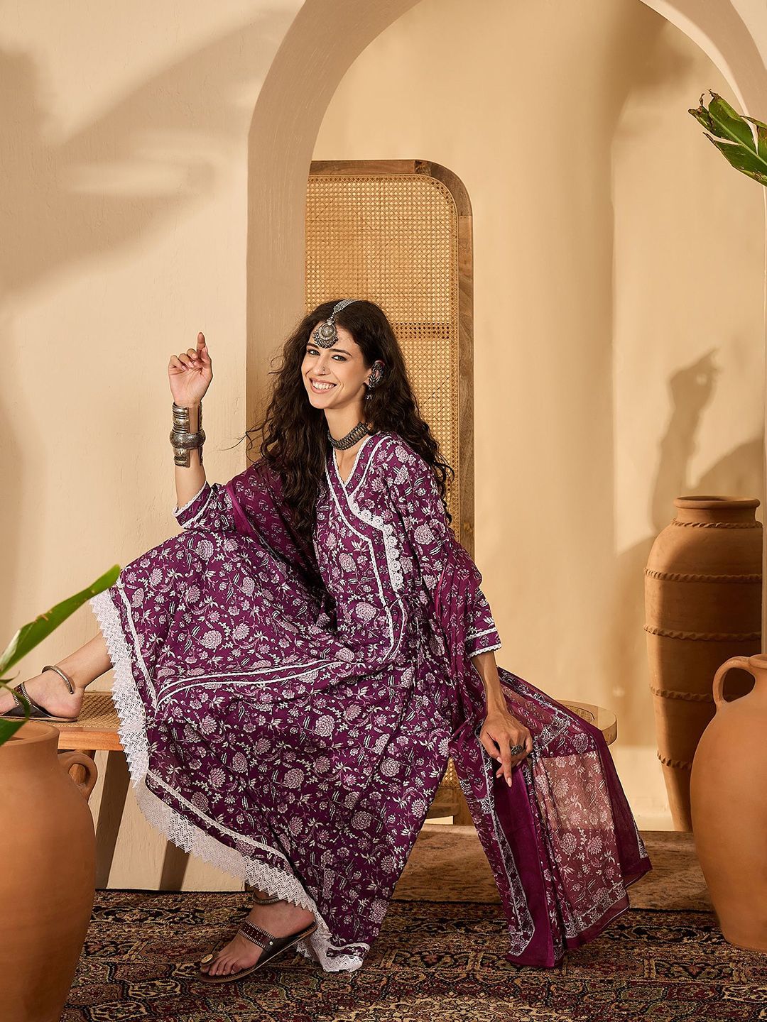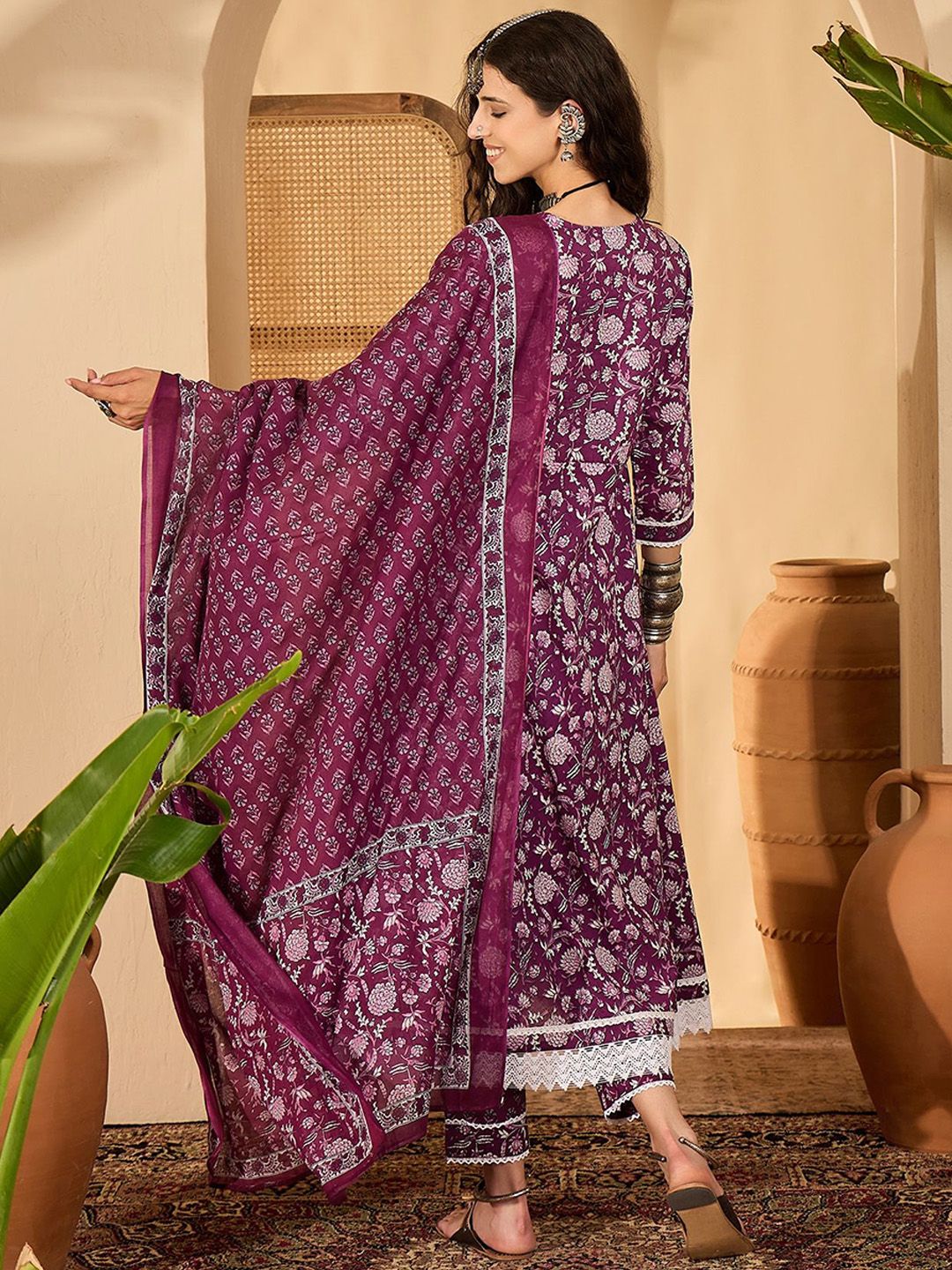 Sangria Women Ethnic Motifs Printed Cotton Anarkali Kurta with Trousers & Dupatta