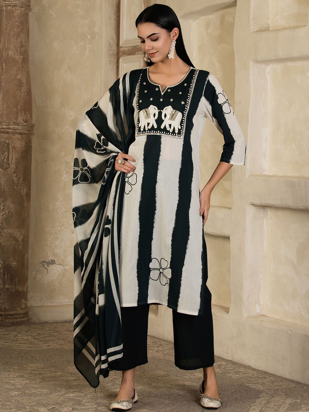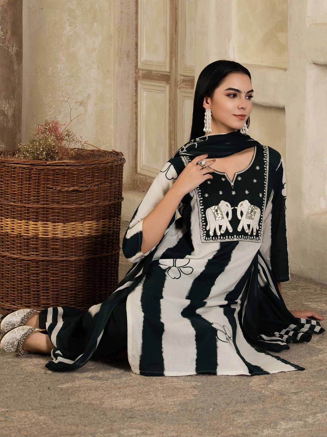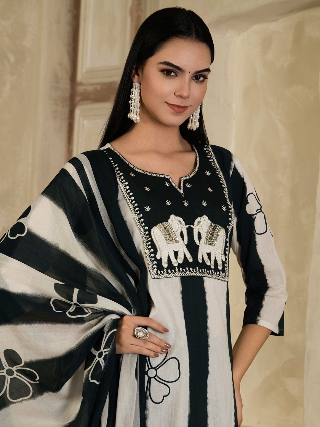 Sangria Women Ethnic Motifs Printed Cotton Kurta with Palazzo & Dupatta
