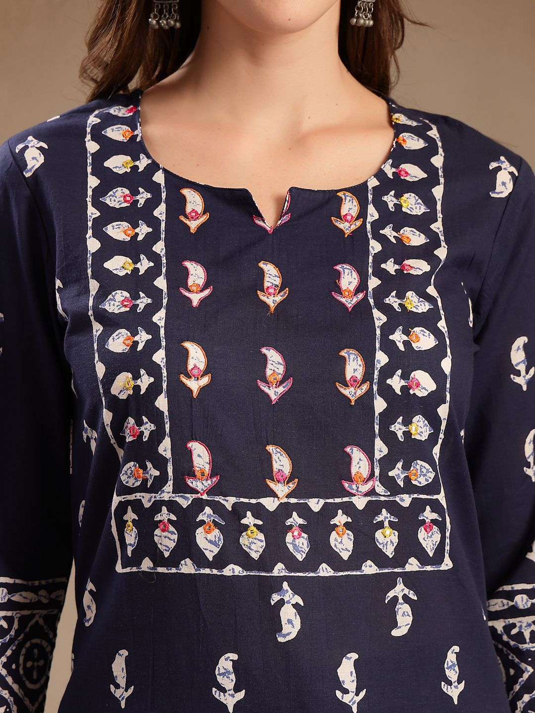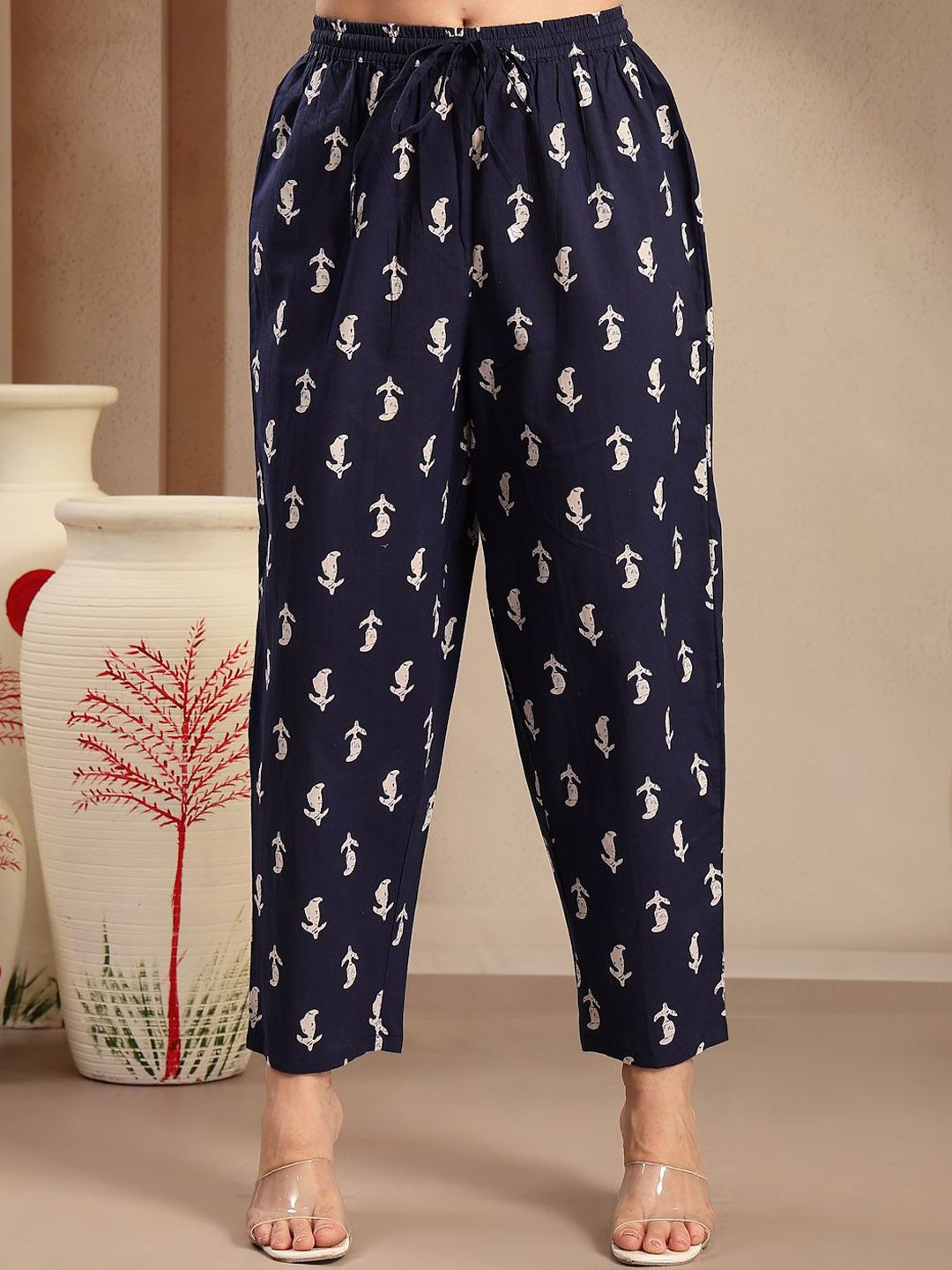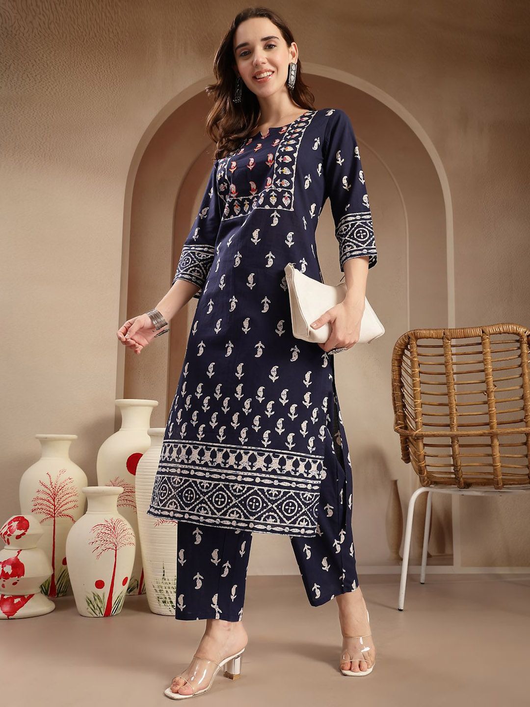 Sangria Women Ethnic Motifs Printed Cotton Kurta with Trousers