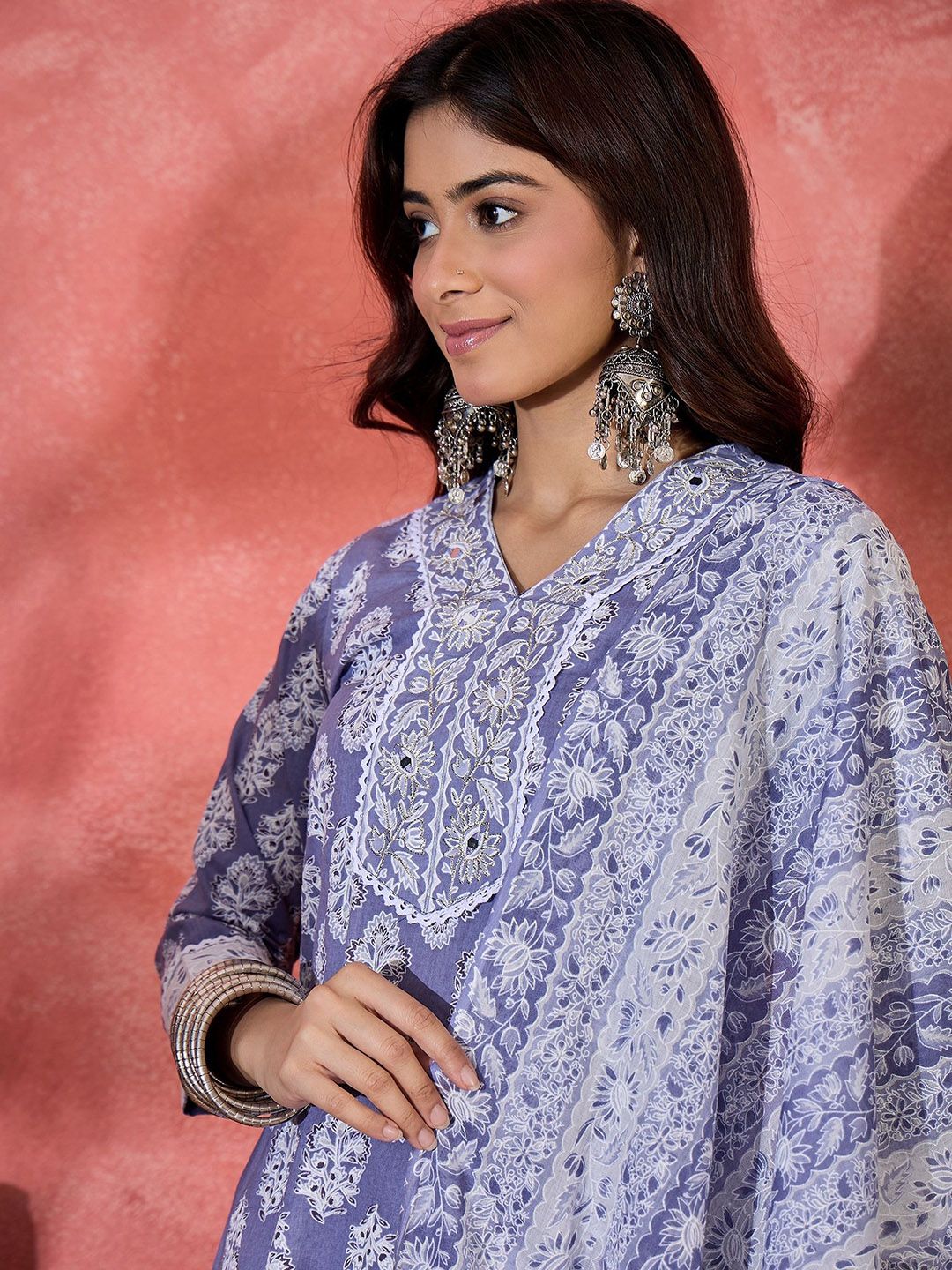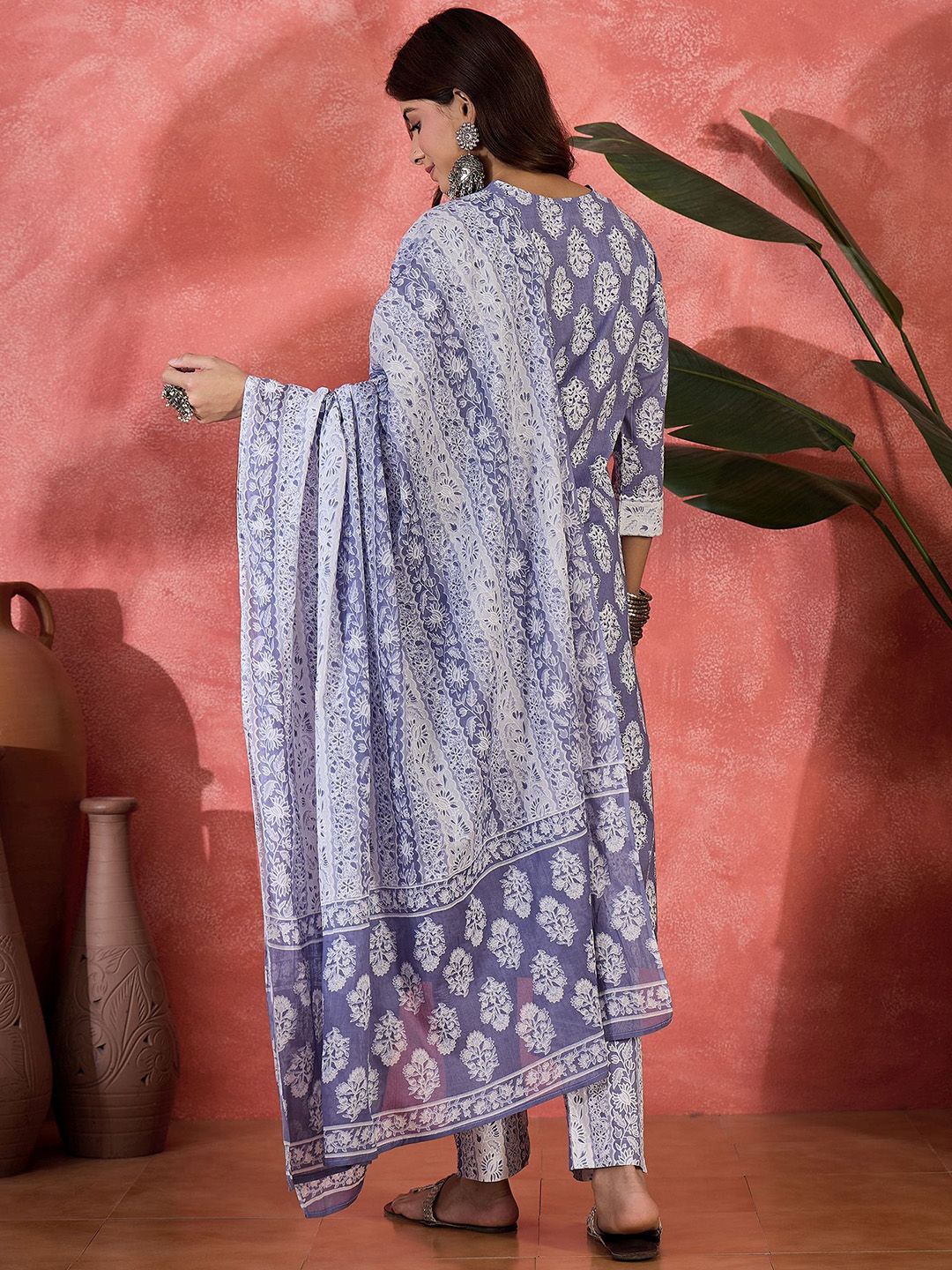 Sangria Women Ethnic Motifs Printed Pure Cotton Kurta with Trousers & With Dupatta
