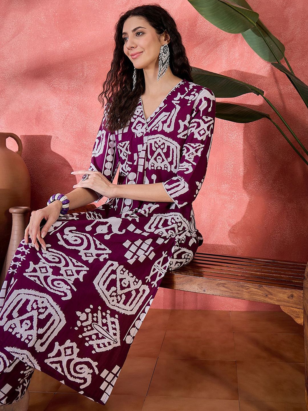 Sangria Women Ethnic Motifs Printed Regular Pure Cotton Kurta with Trousers
