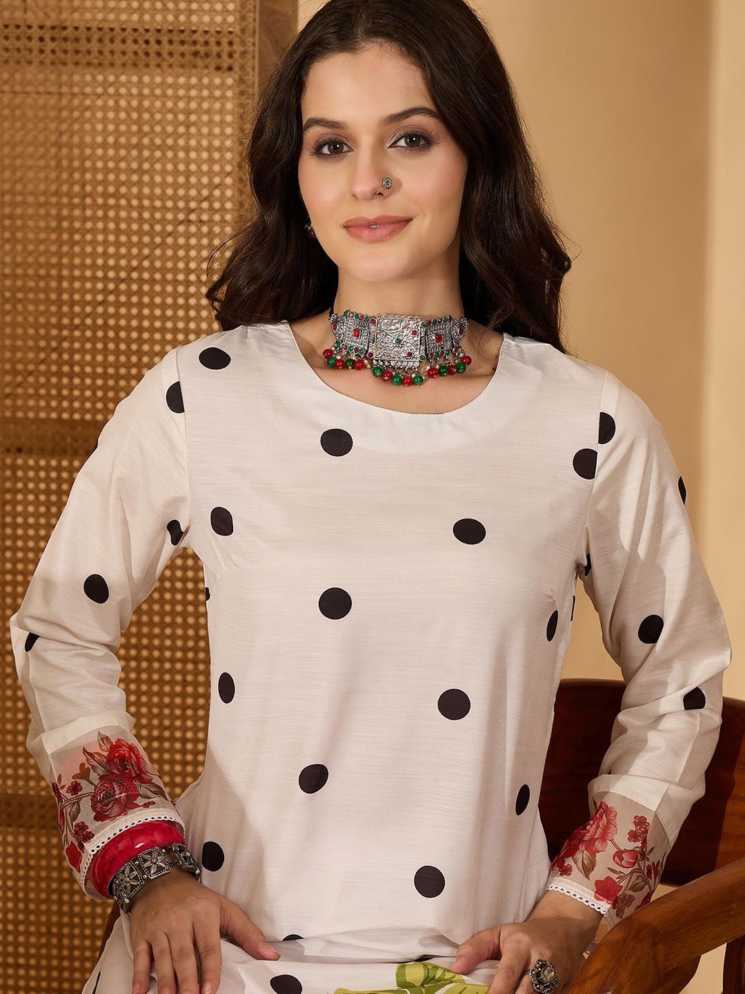 Sangria Women Floral & Polka Dots Printed Straight Kurta & Trousers