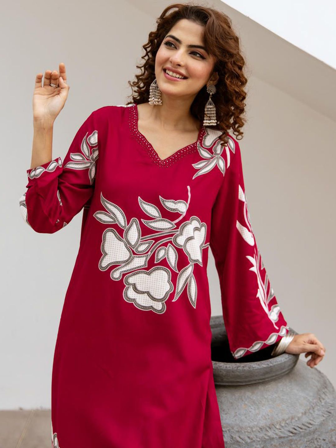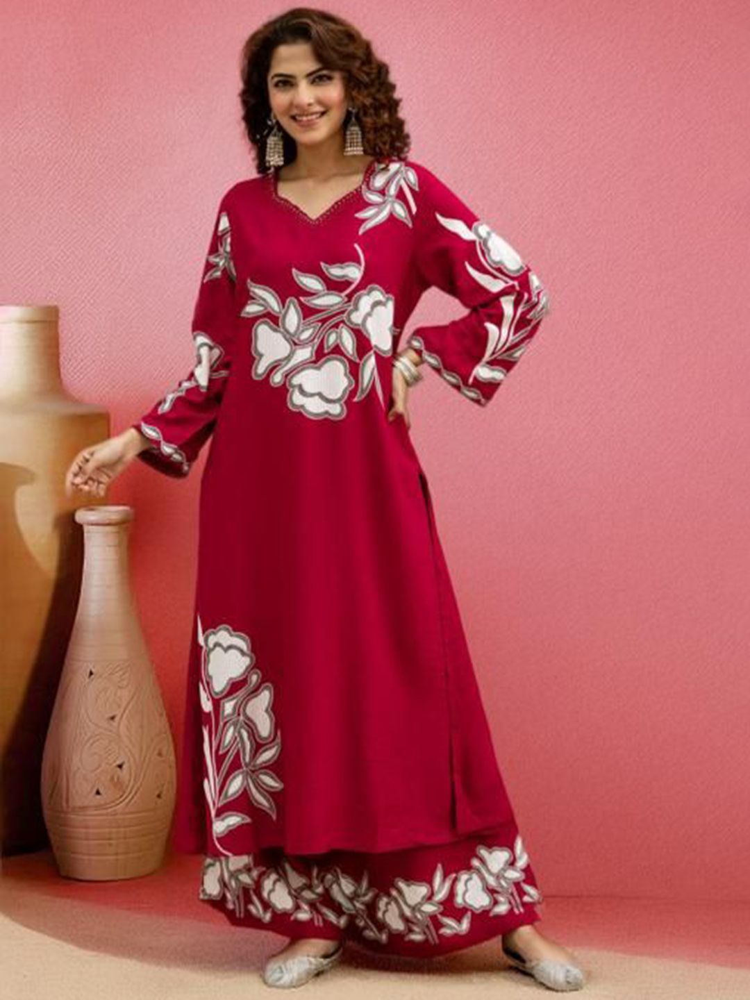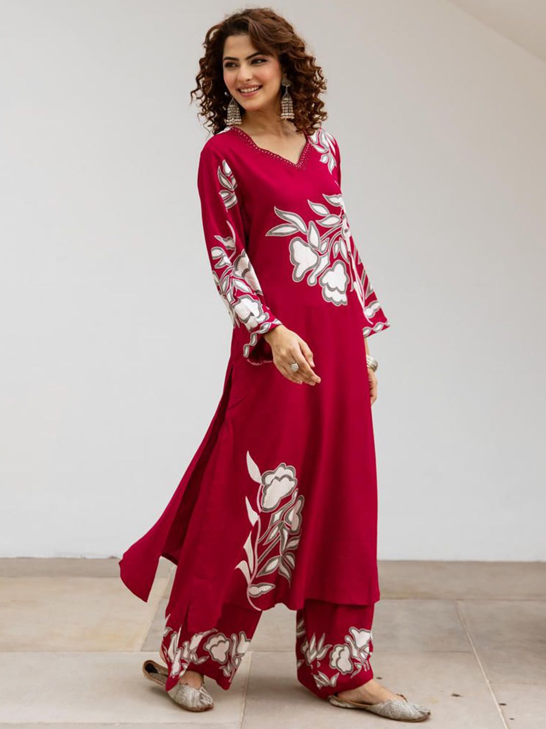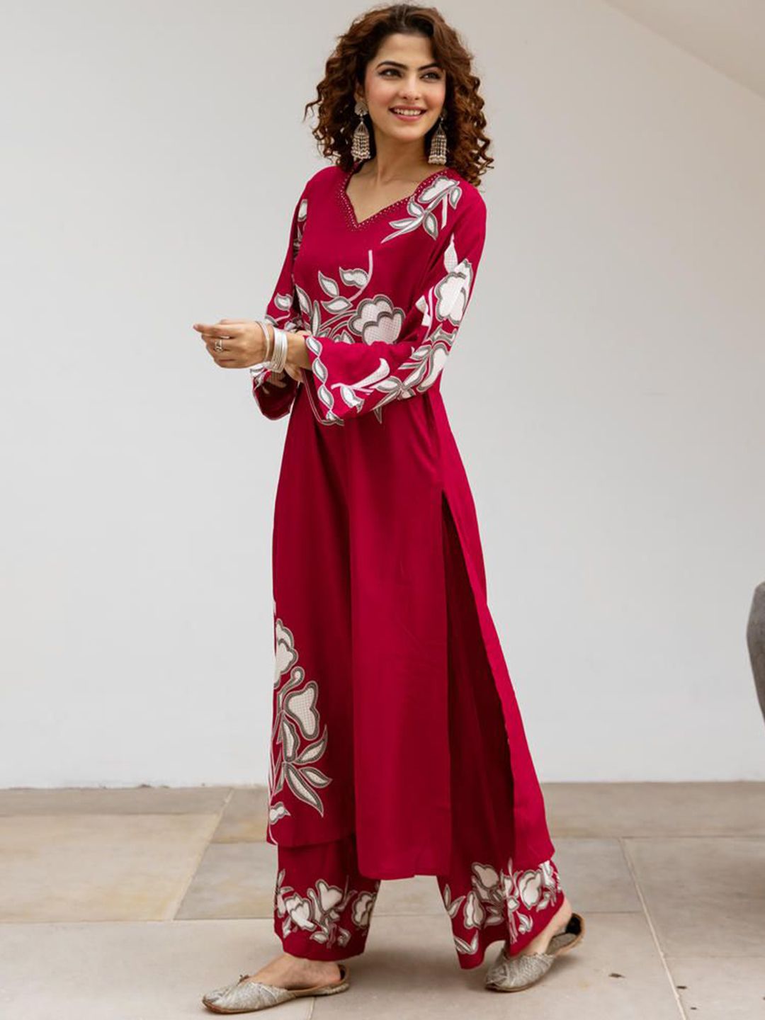 Sangria Women Floral Embroidered Anarkali Kurta with Palazzo