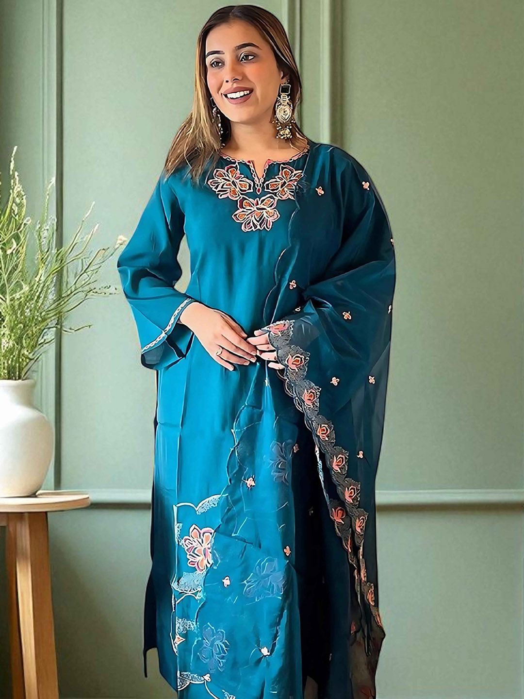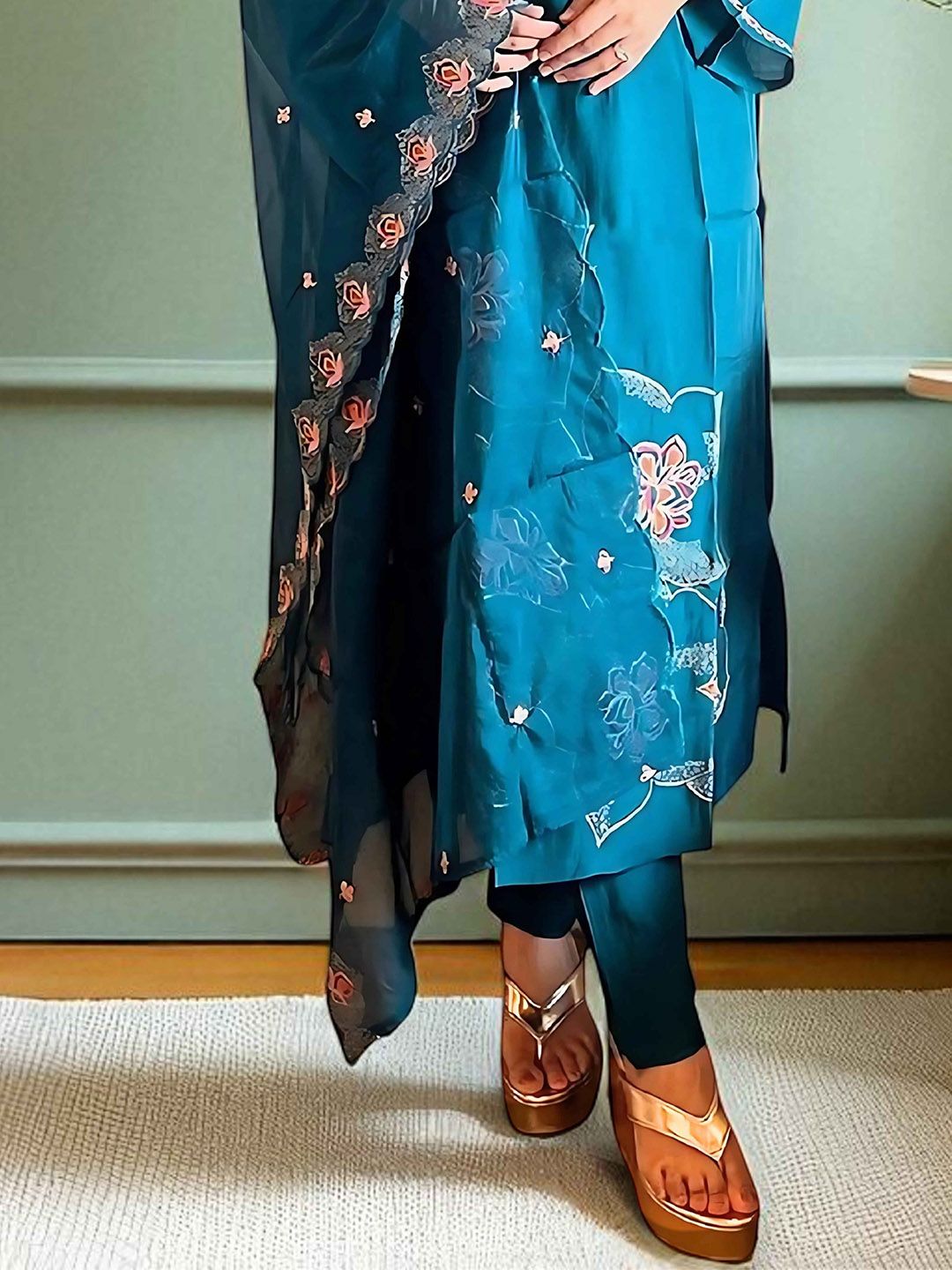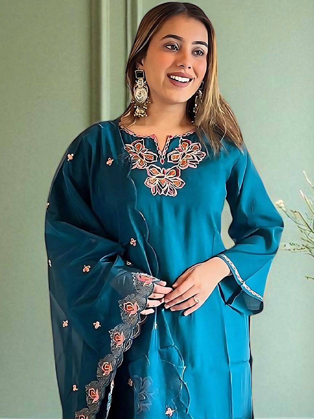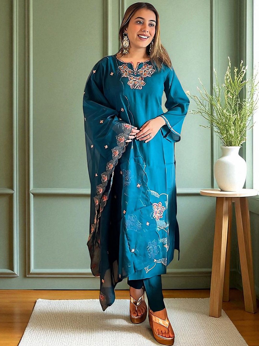 Sangria Women Floral Embroidered Kurta & Pyjamas With Dupatta
