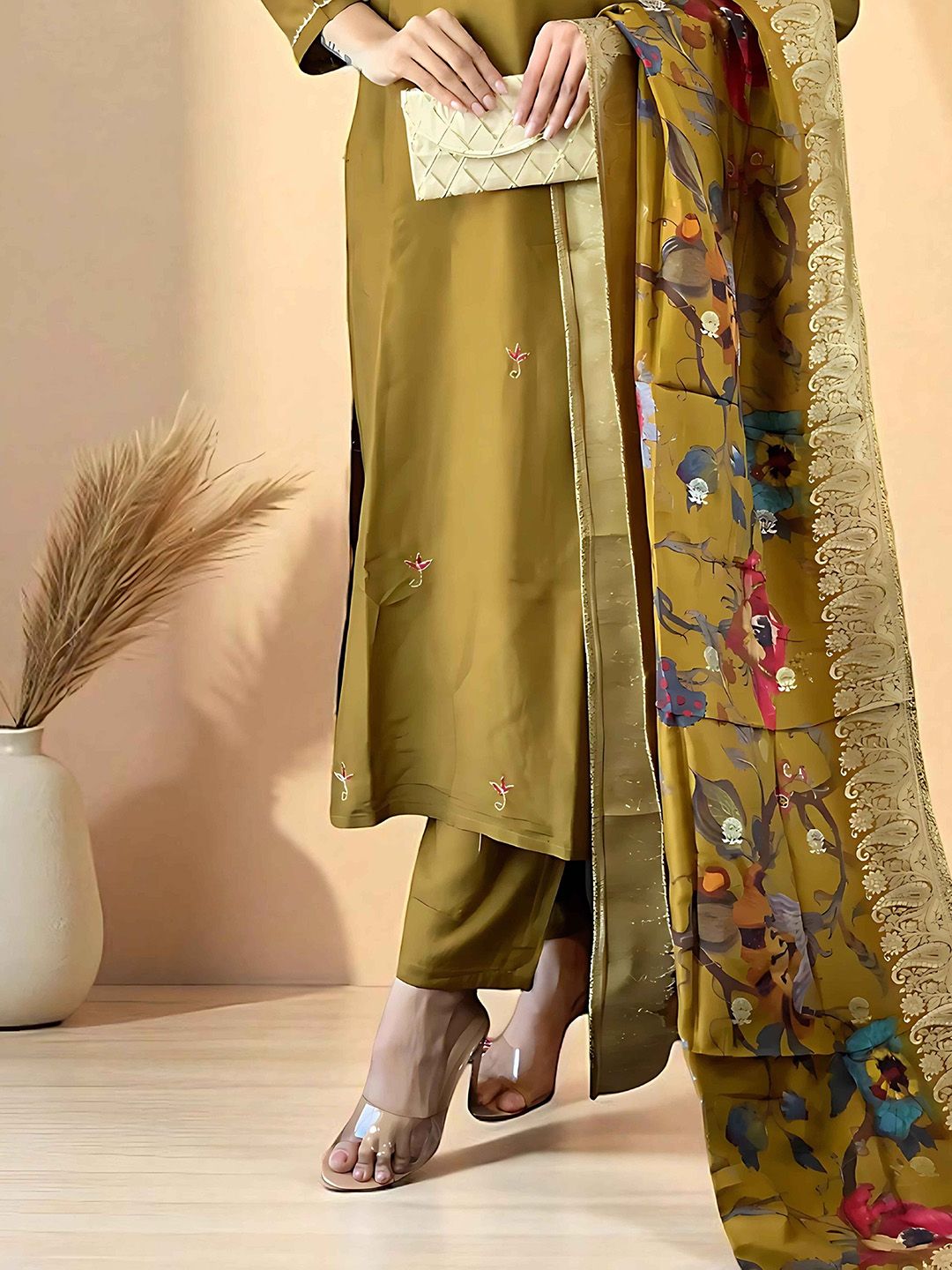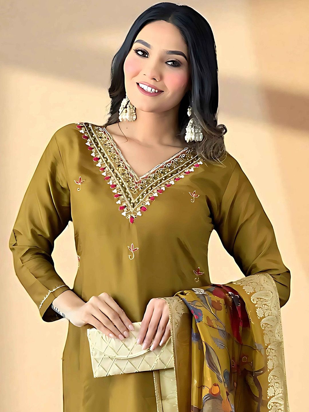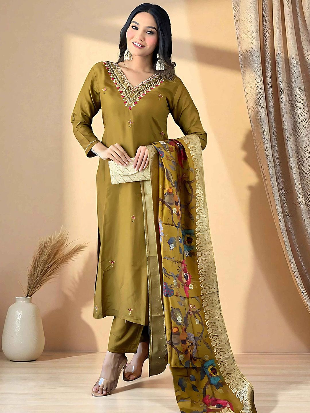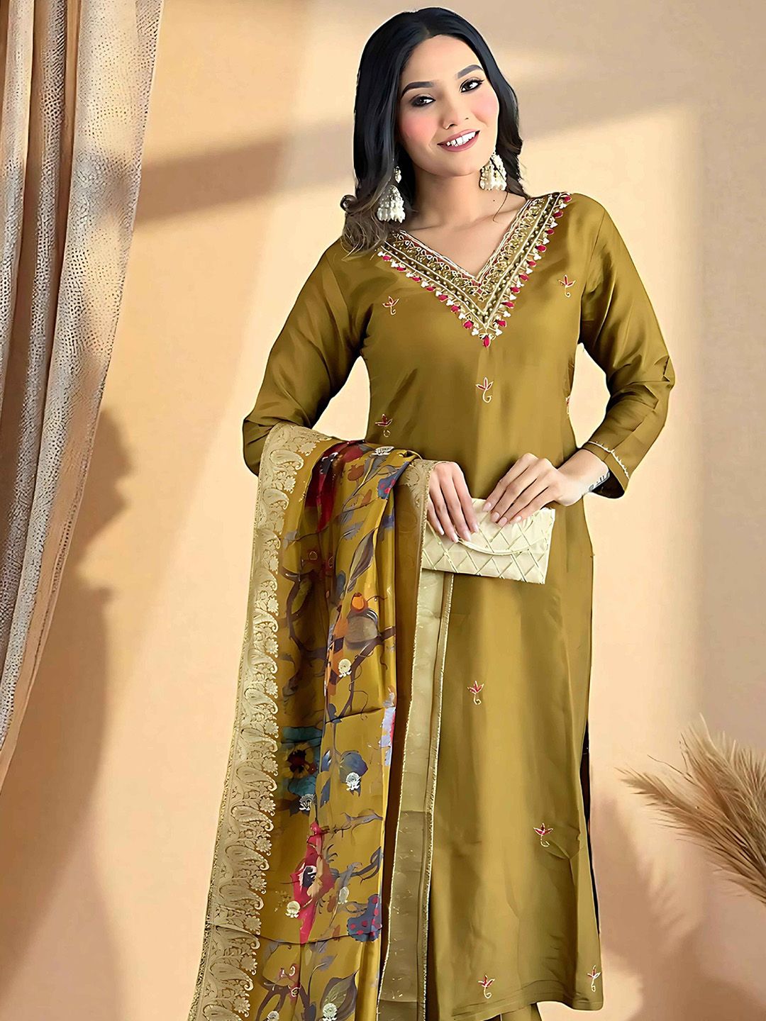 Sangria Women Floral Embroidered Kurta with Churidar & Dupatta