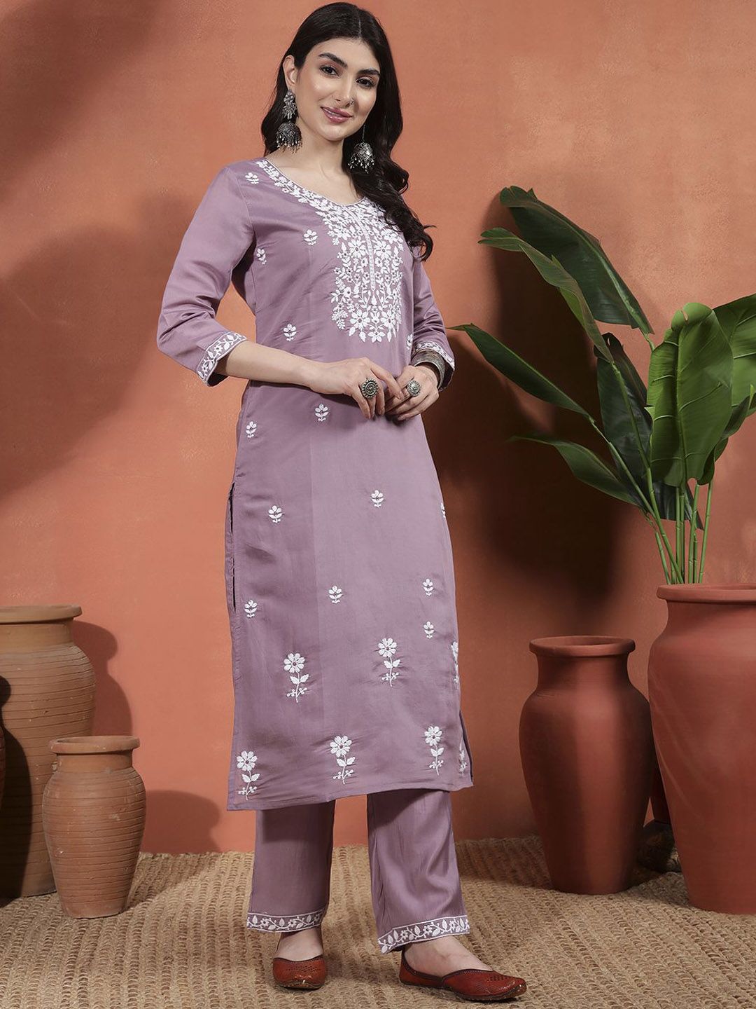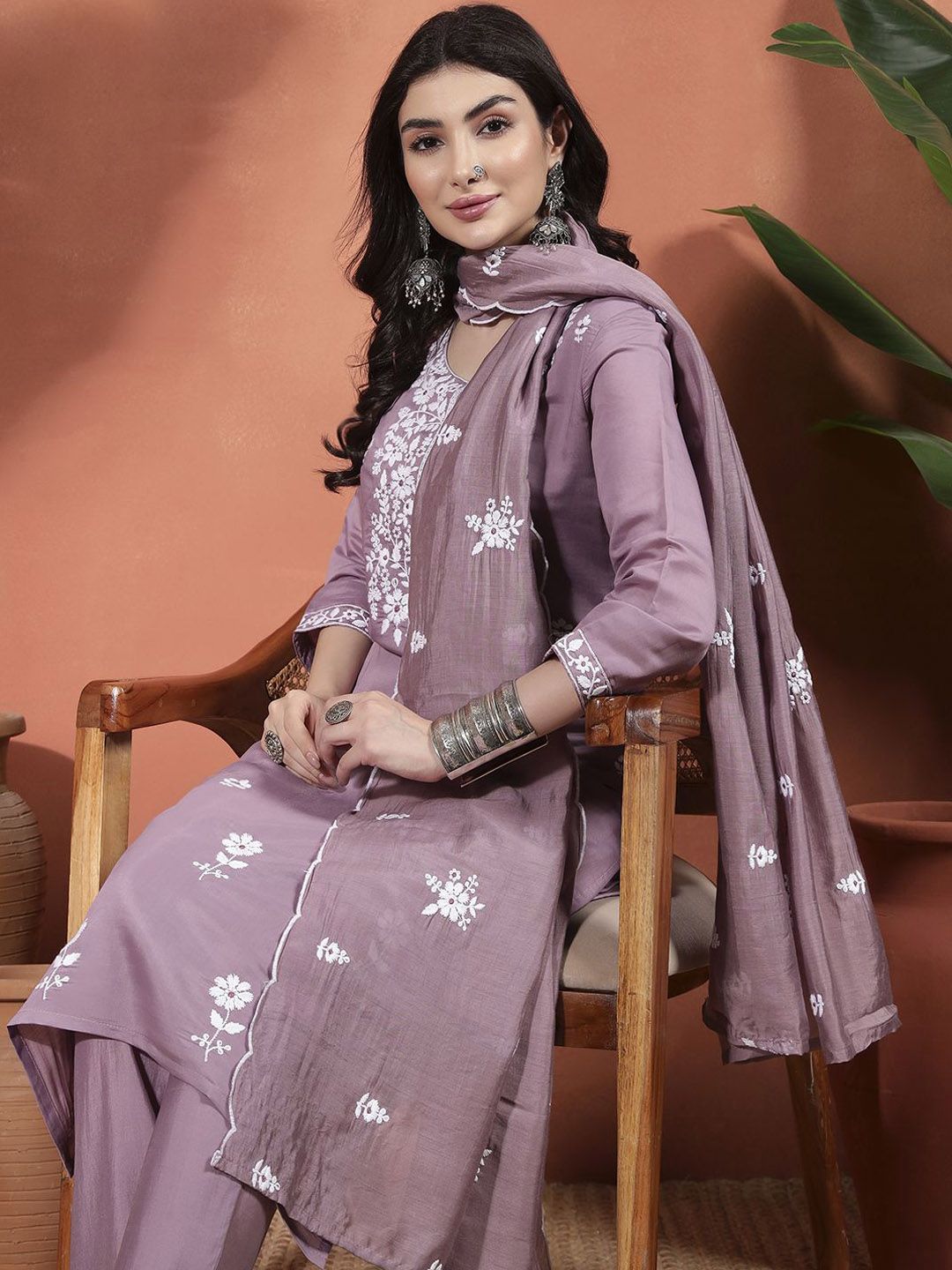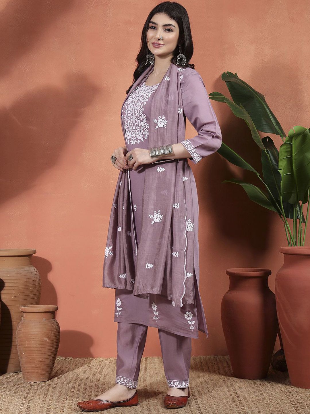 Sangria Women Floral Embroidered Kurta with Trousers & Dupatta