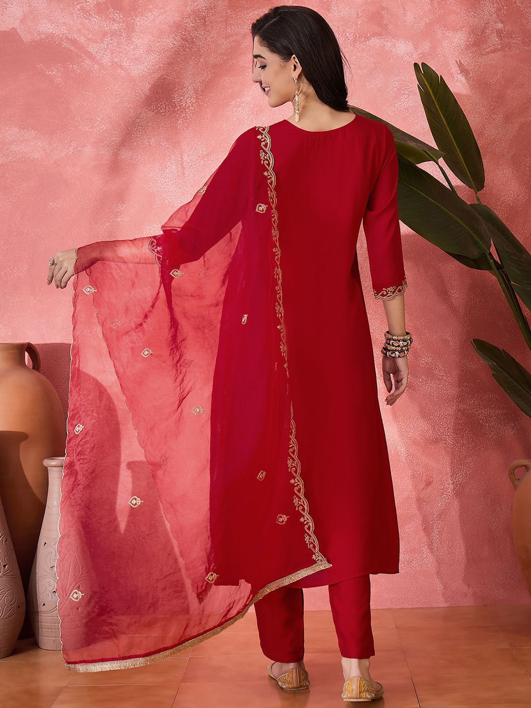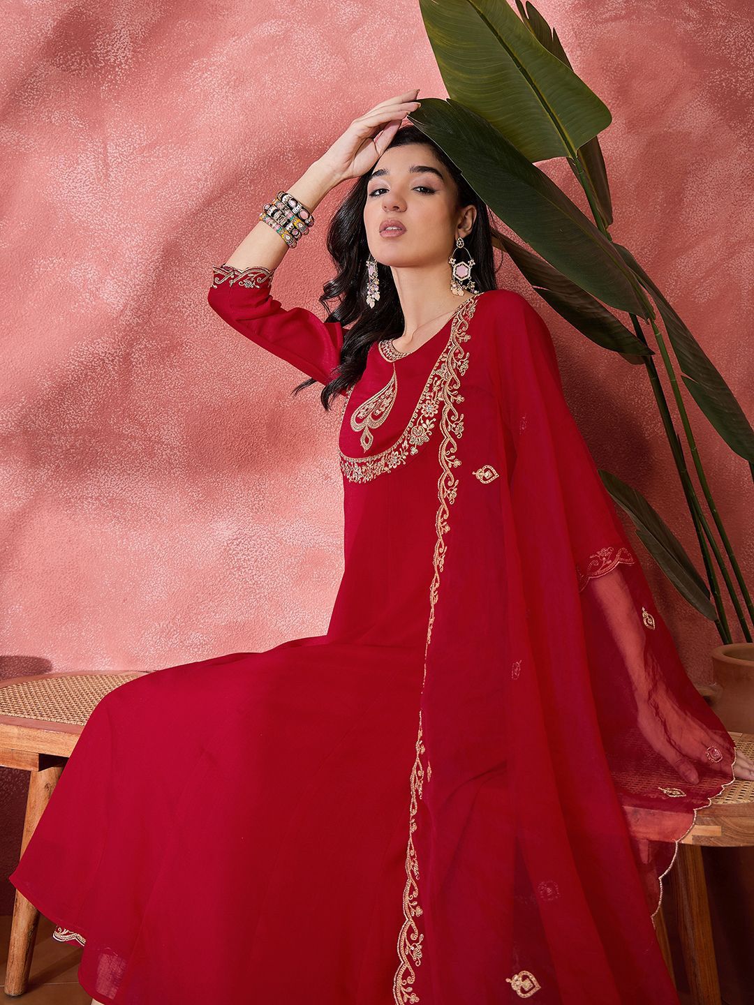 Sangria Women Floral Embroidered Kurta with Trousers & Dupatta