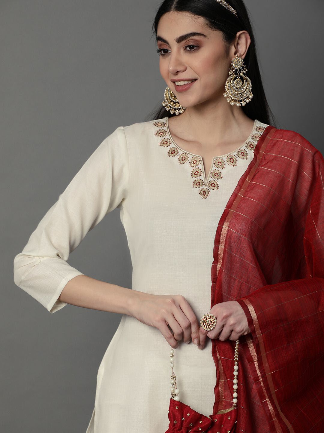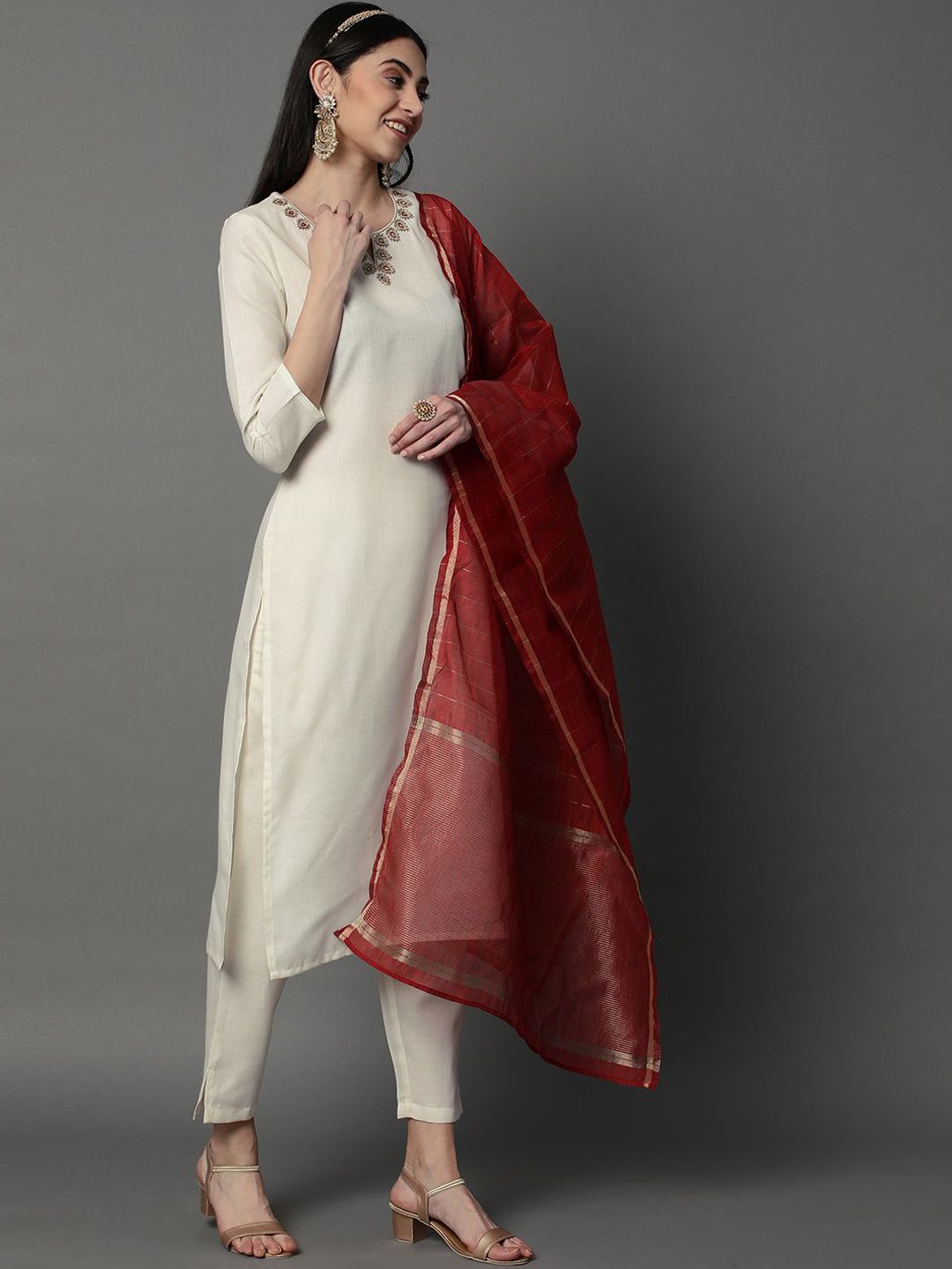 Sangria Women Floral Embroidered Kurta with Trousers & Dupatta