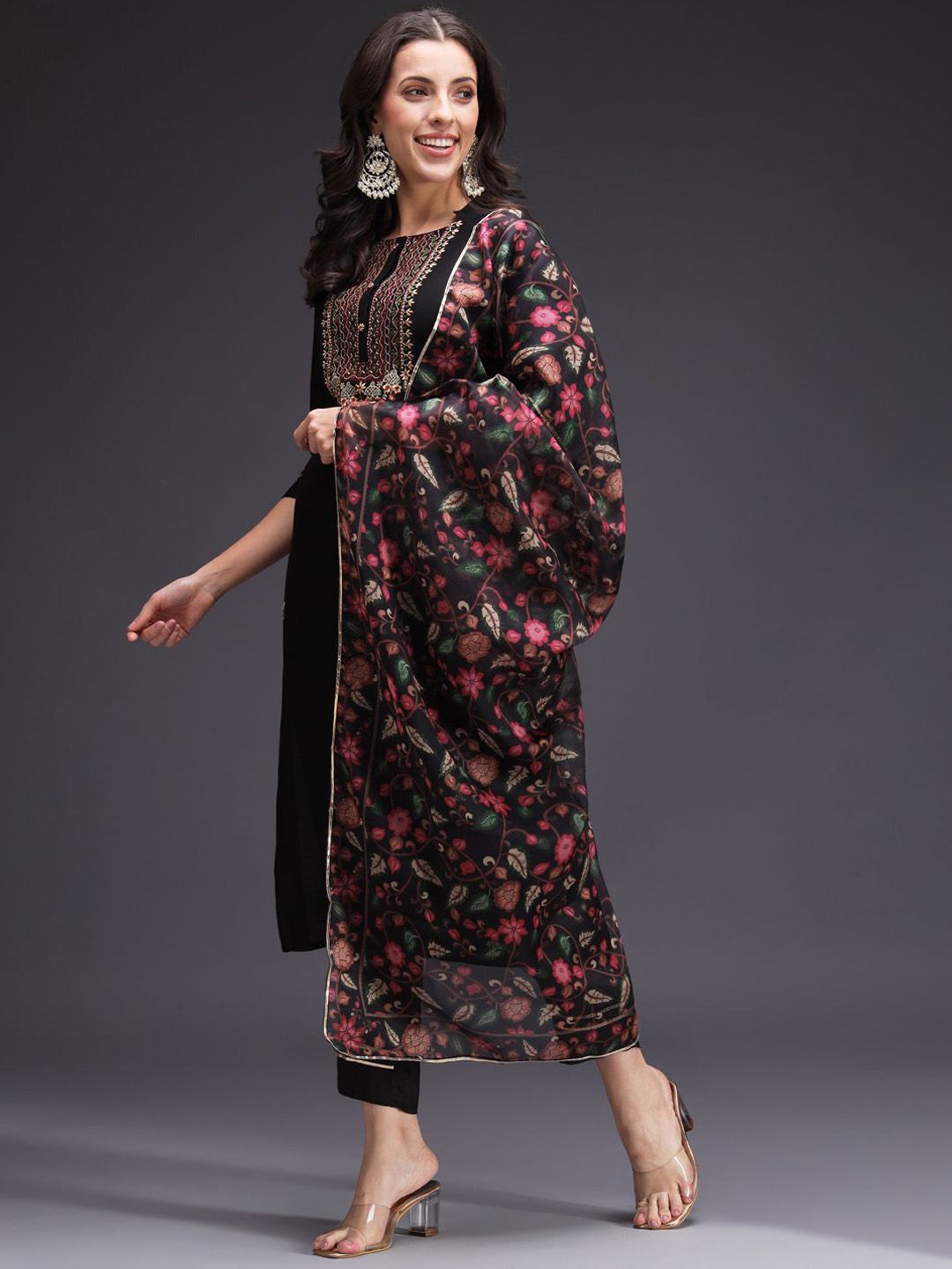 Sangria Women Floral Embroidered Kurta with Trousers & Dupatta