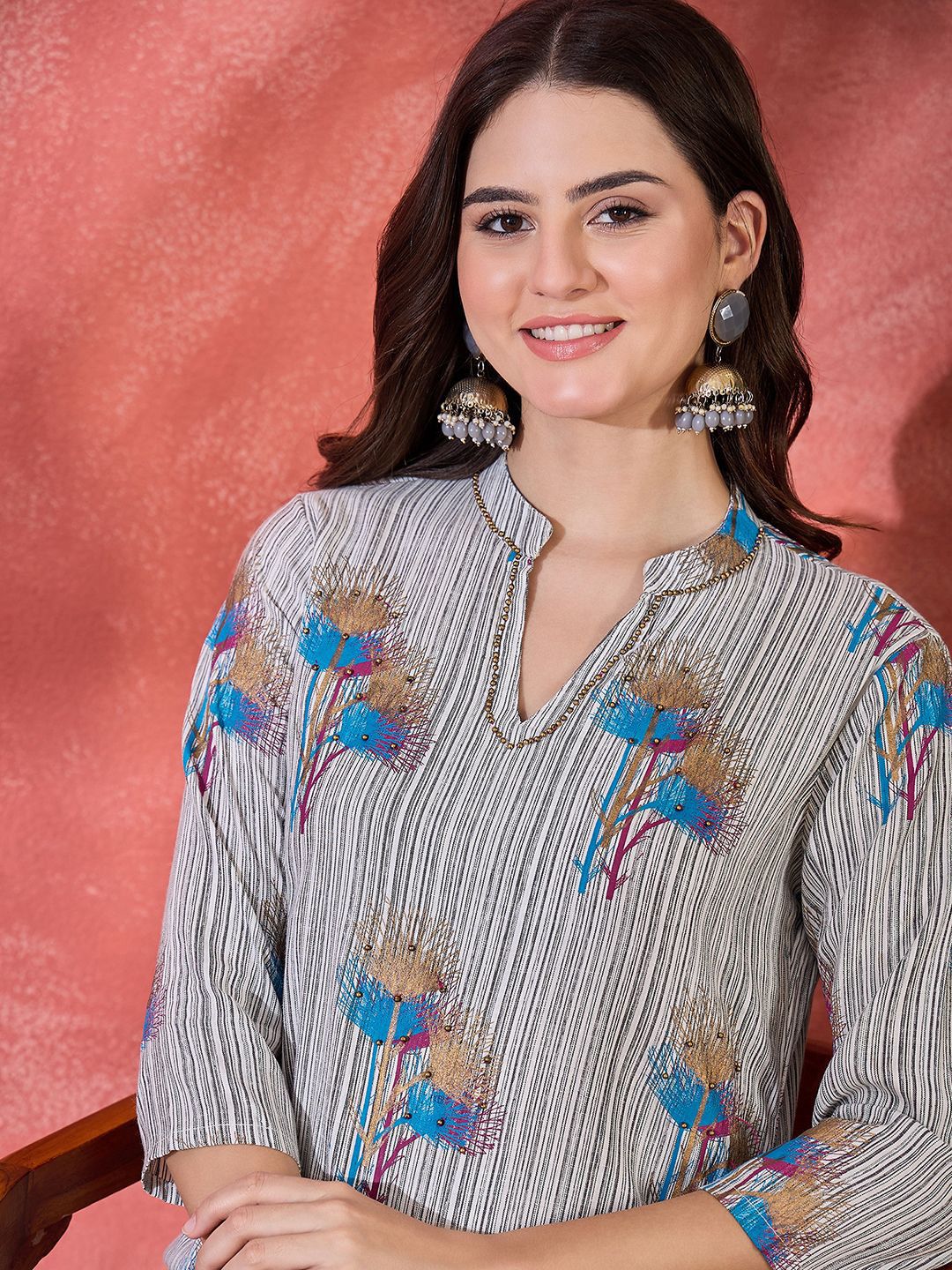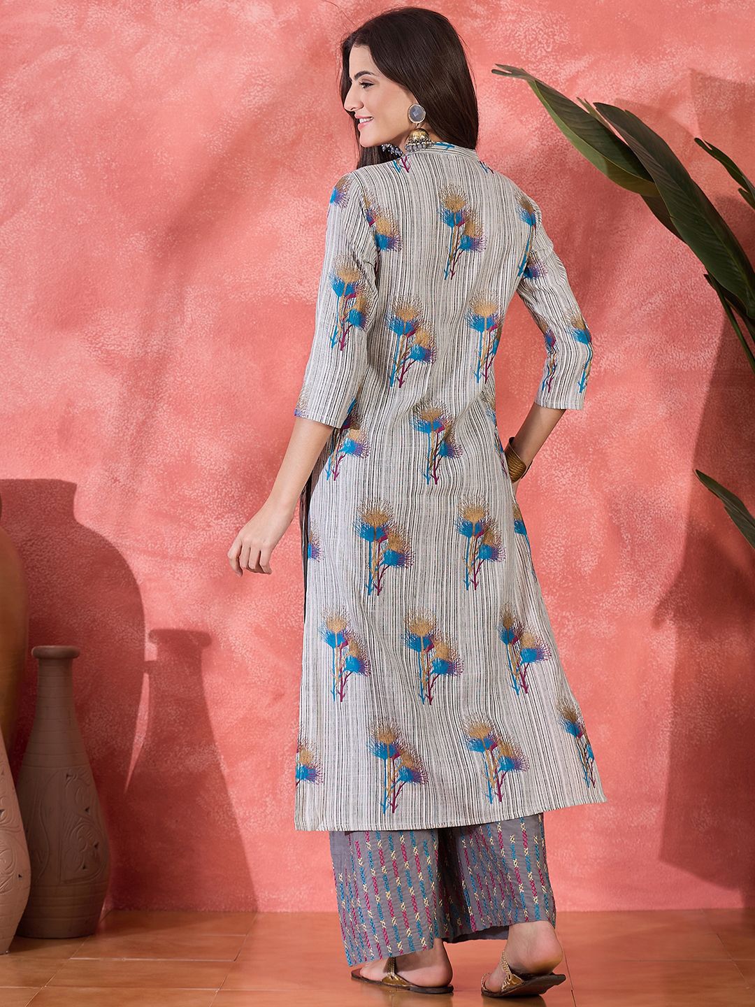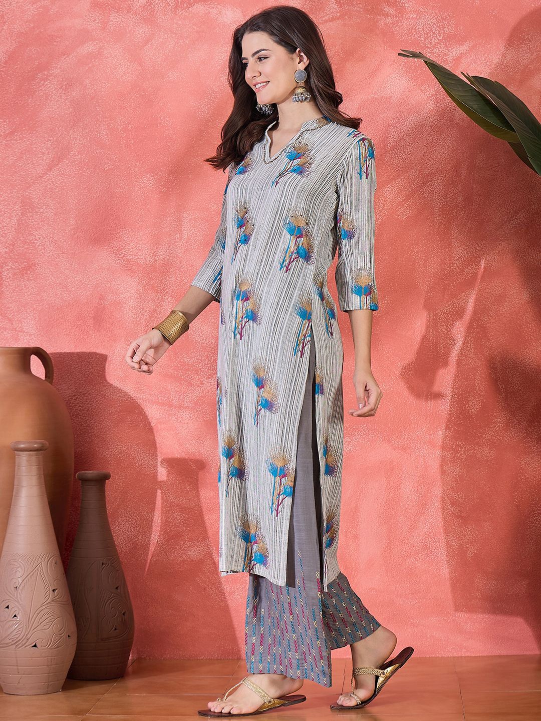 Sangria Women Floral Embroidered Regular Kurta with Trousers