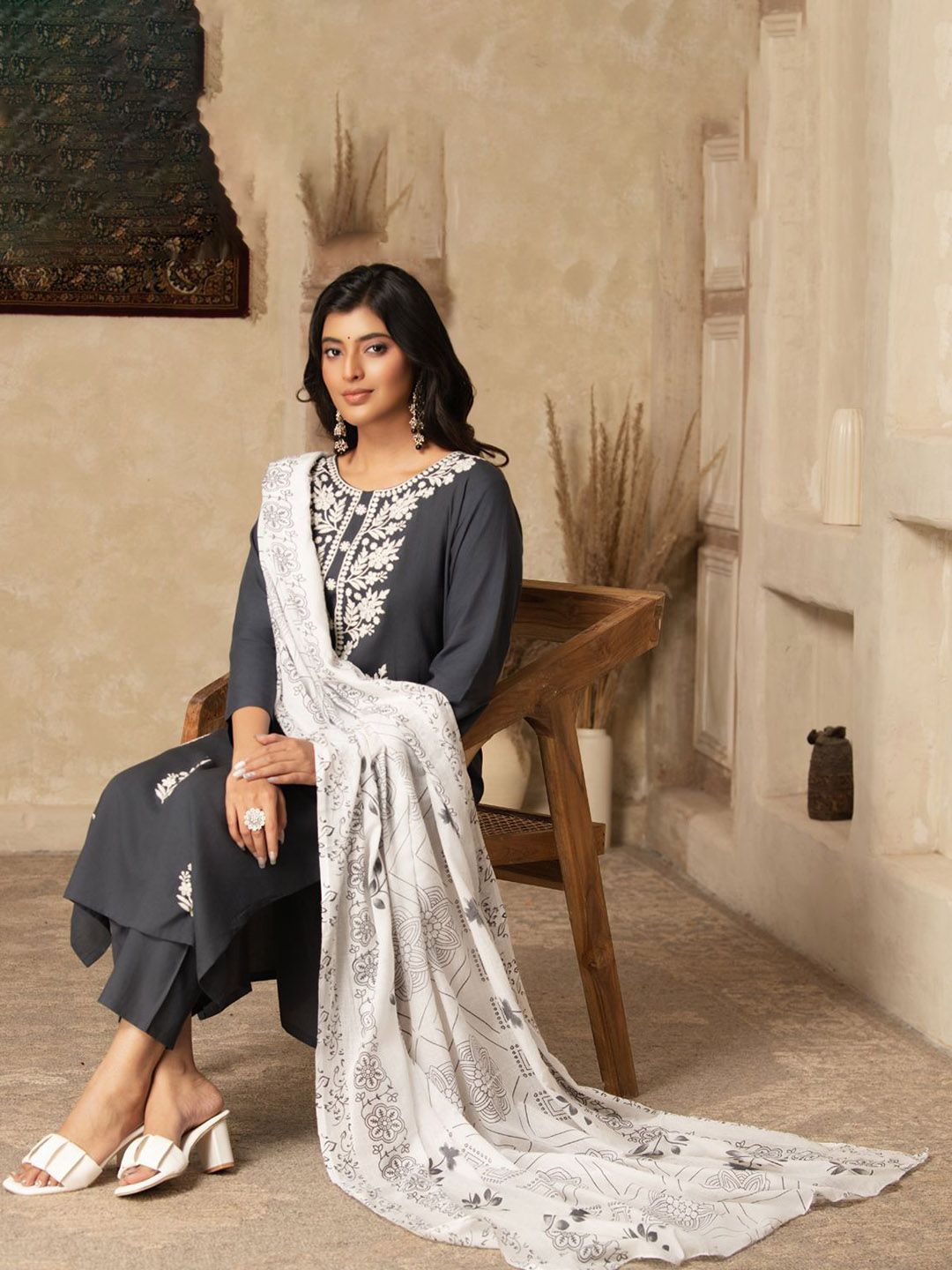 Buy this stylish Sangria Women Floral Embroidered Round Neck Chikankari Straight Kurta & Trousers Dupatta at Marincart Nepal. This product offers great quality and value. Perfect for those looking for the latest trends in fashion. Get yours now at unbeatable prices.