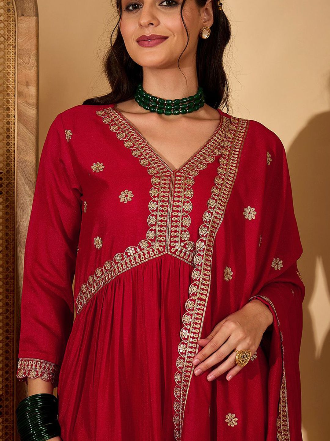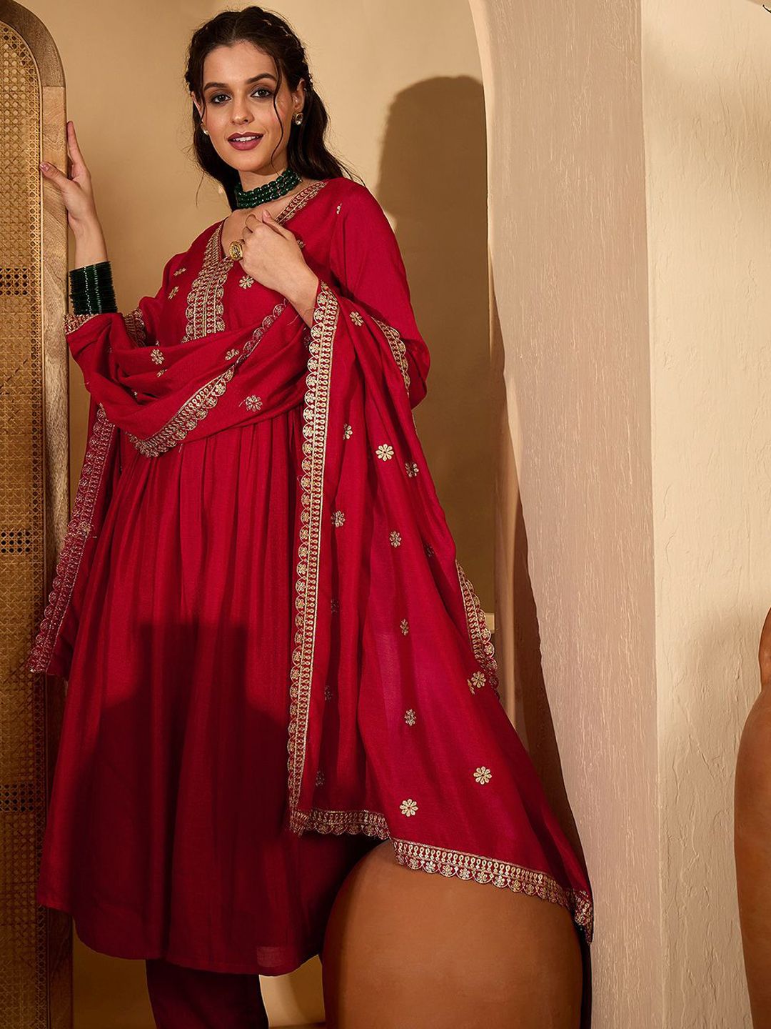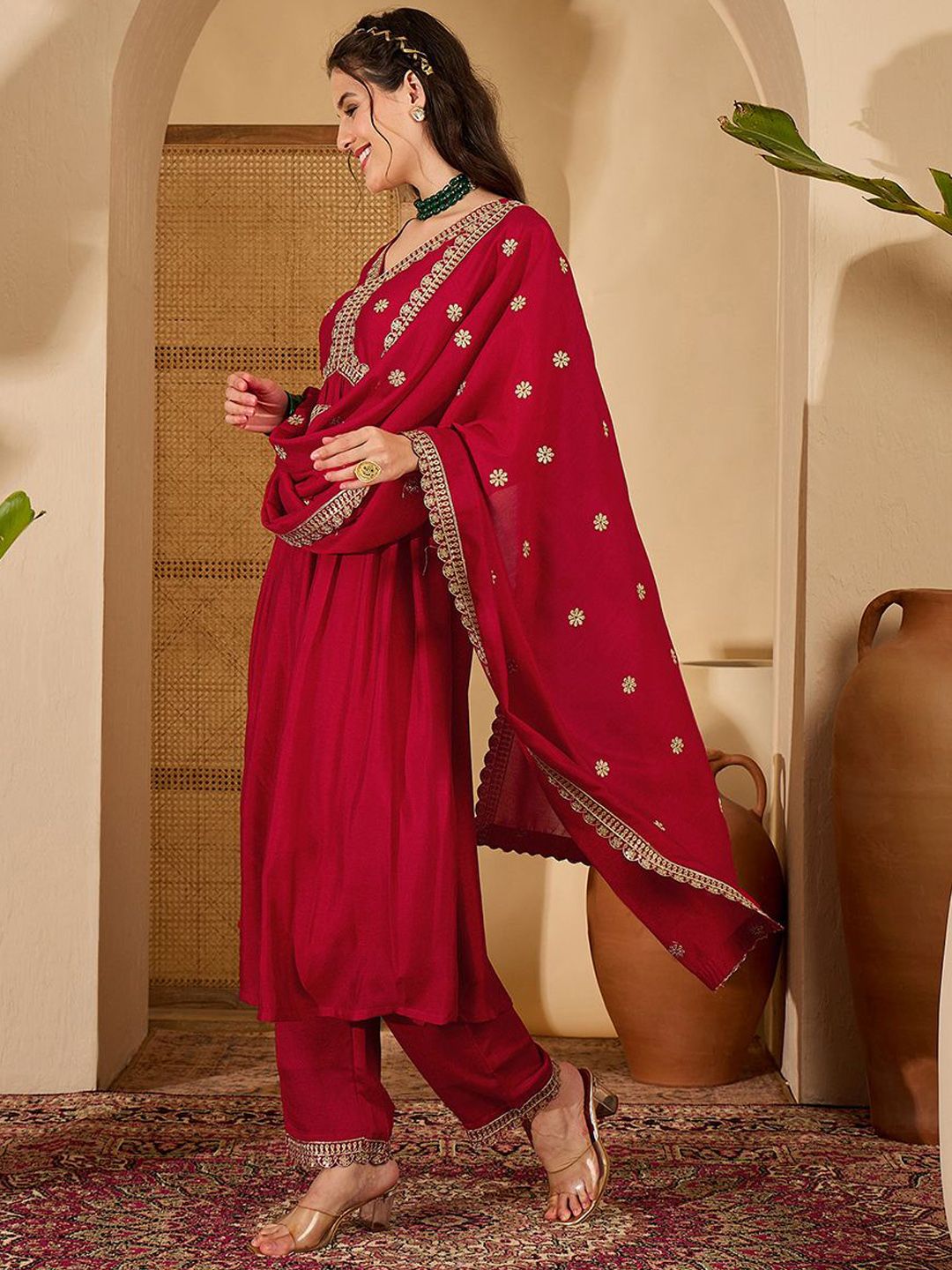 Sangria Women Floral Printed A-Line Kurta with Pyjamas & Dupatta