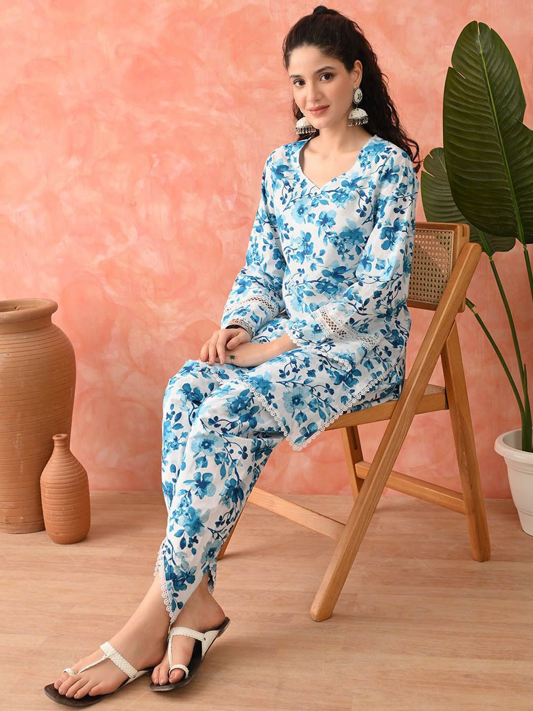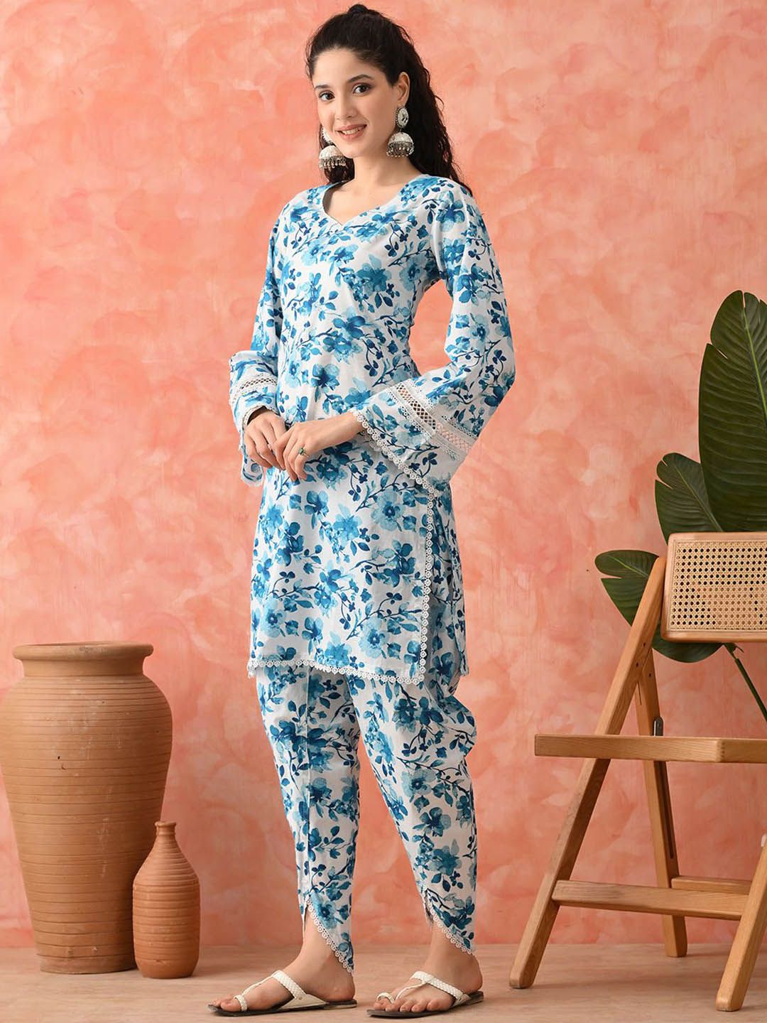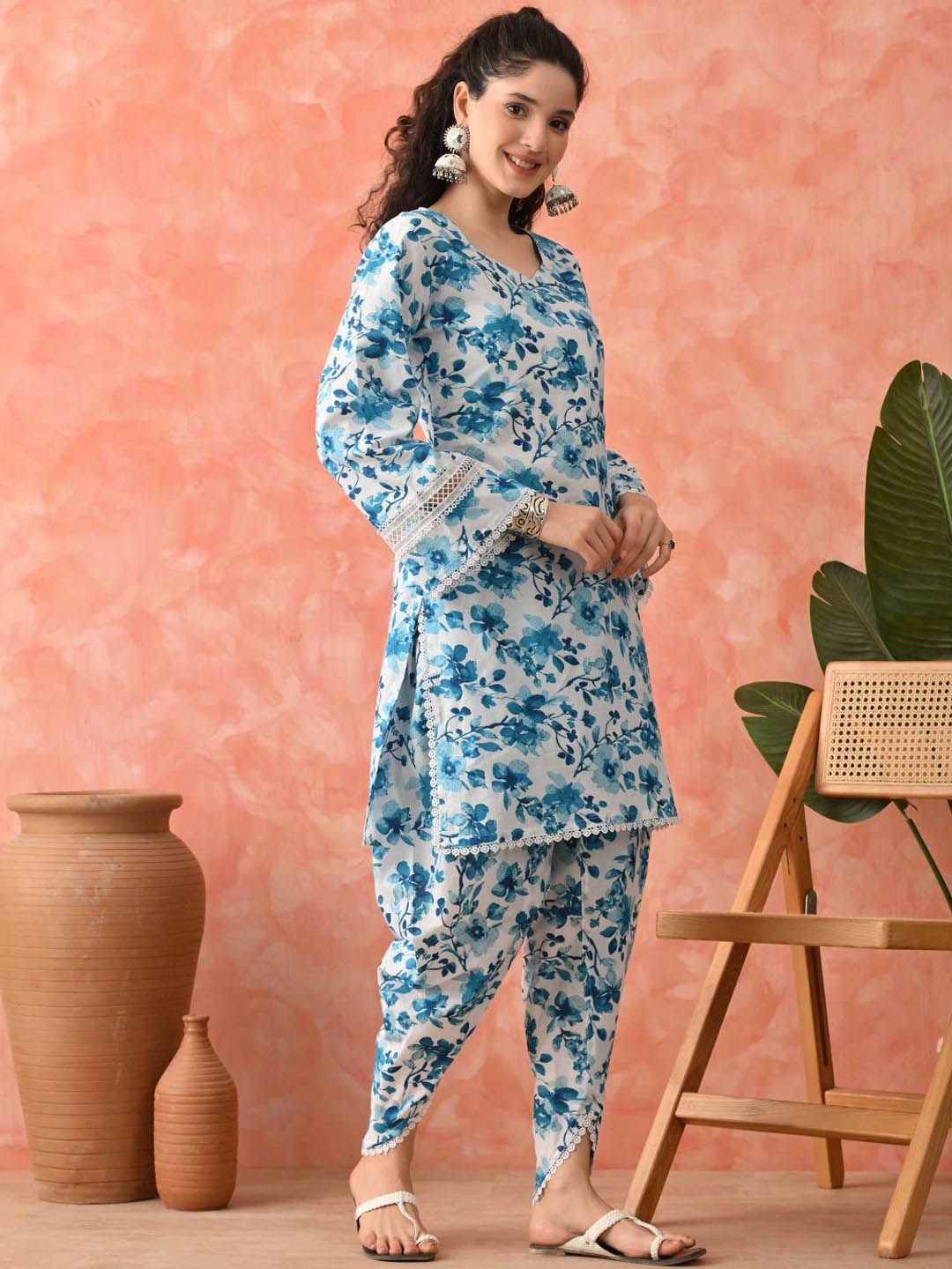 Sangria Women Floral Printed Cotton Kurta with Dhoti Pant
