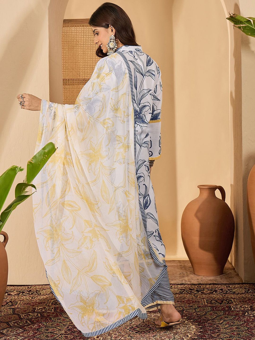 Sangria Women Floral Printed Cotton Kurta with Trousers & Dupatta