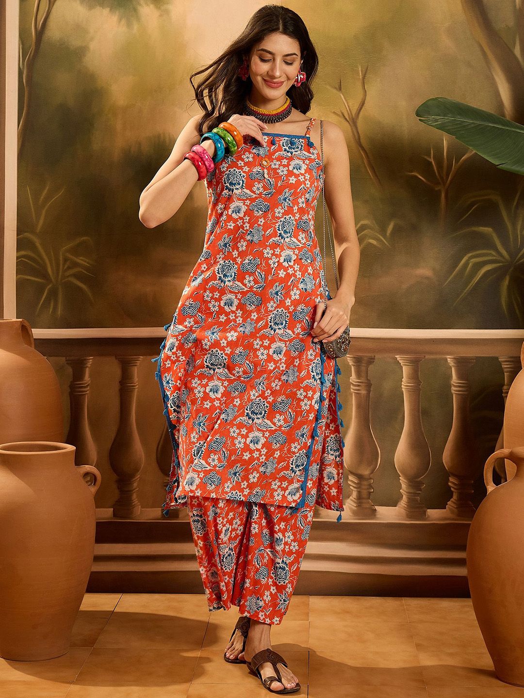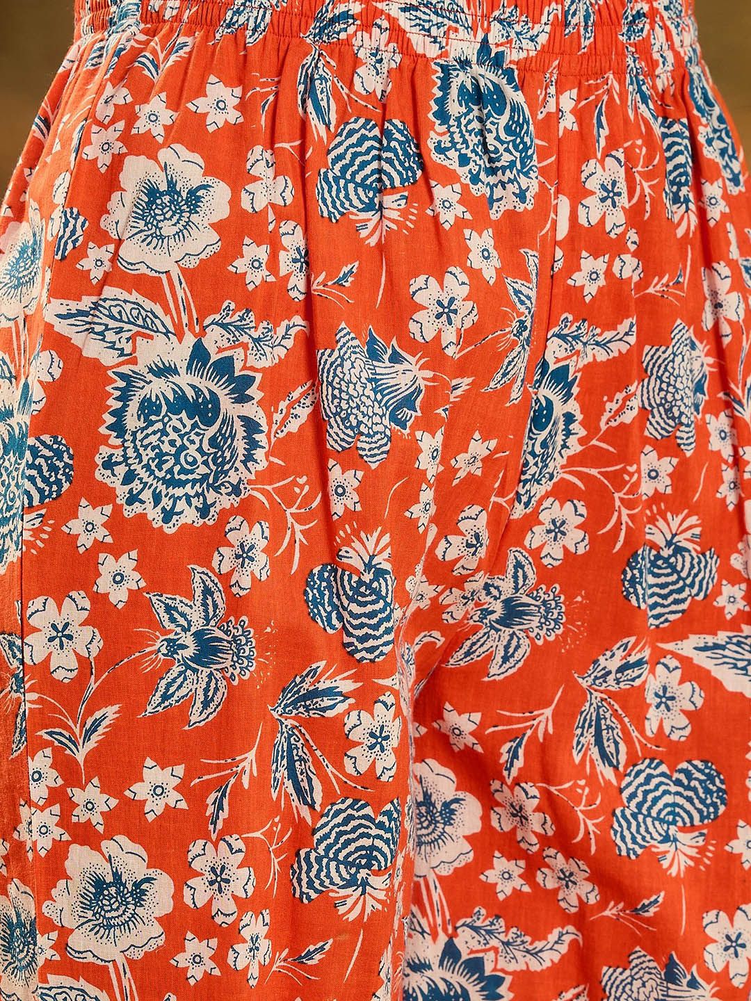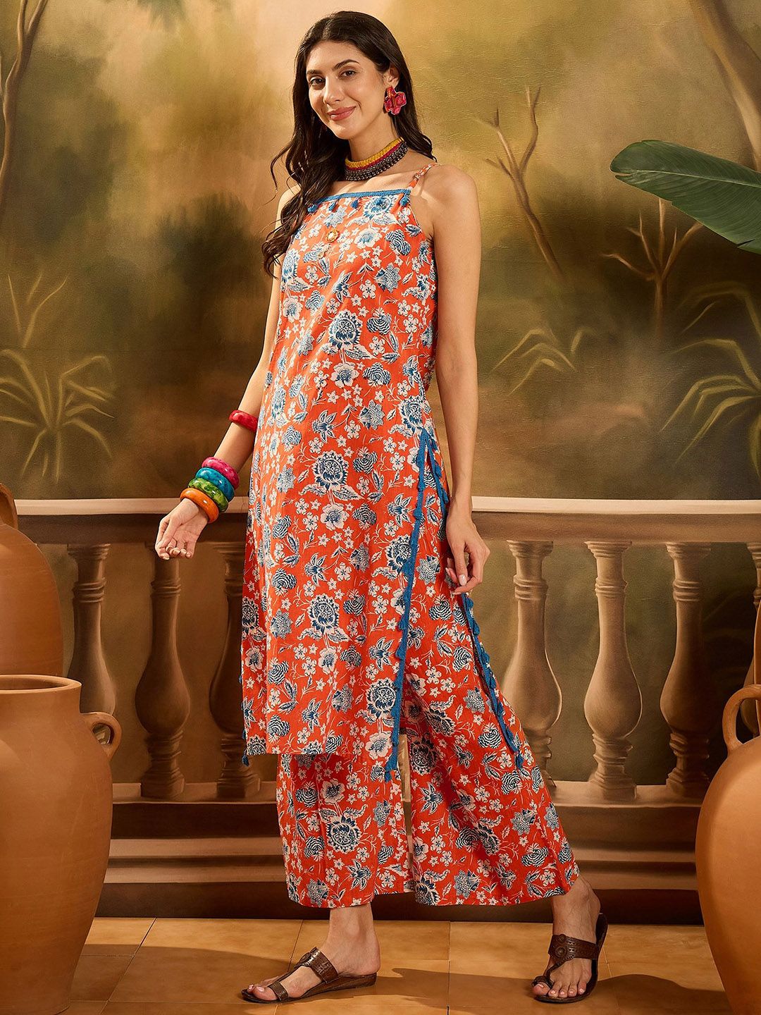 Sangria Women Floral Printed Cotton Straight Kurta with Palazzo Set