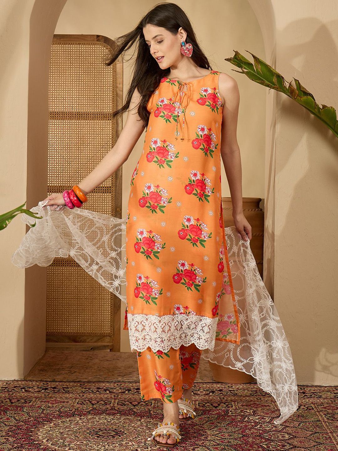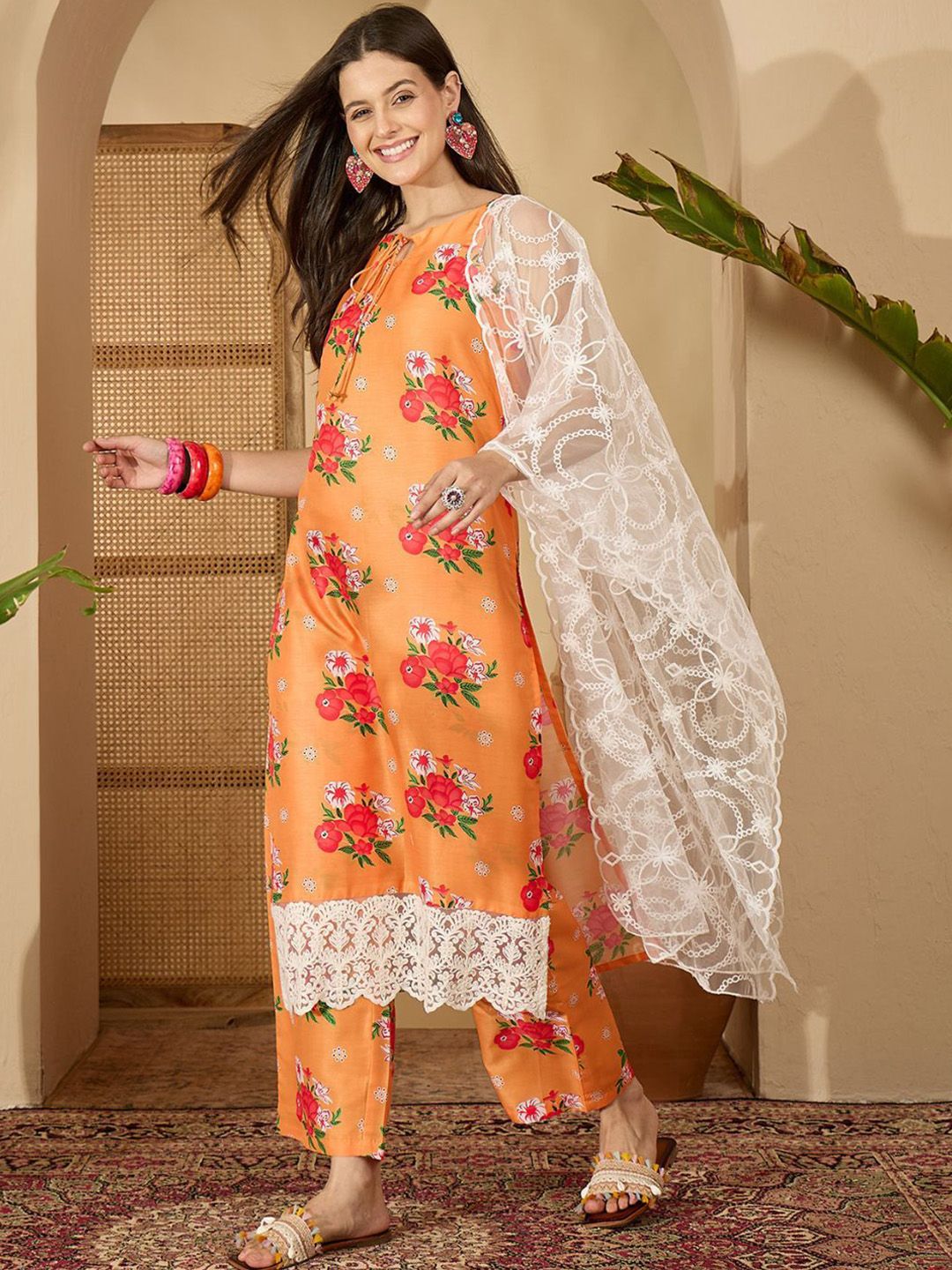 Sangria Women Floral Printed Kurta with Palazzo & Dupatta