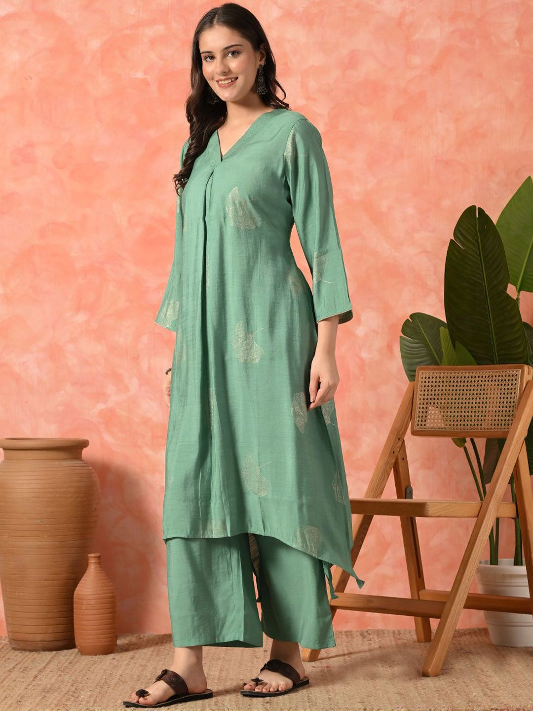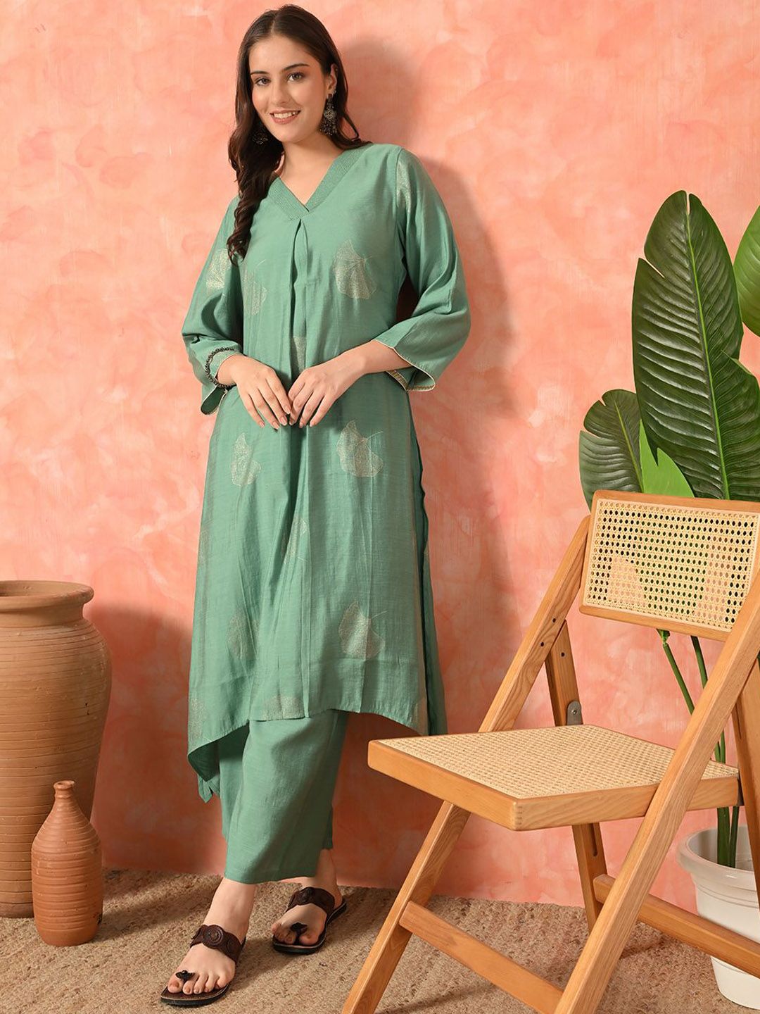 Sangria Women Floral Printed Kurta with Trousers